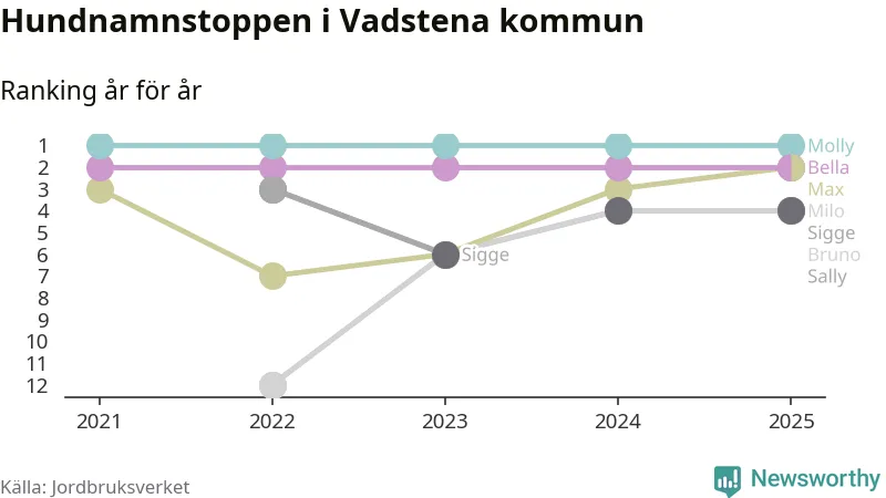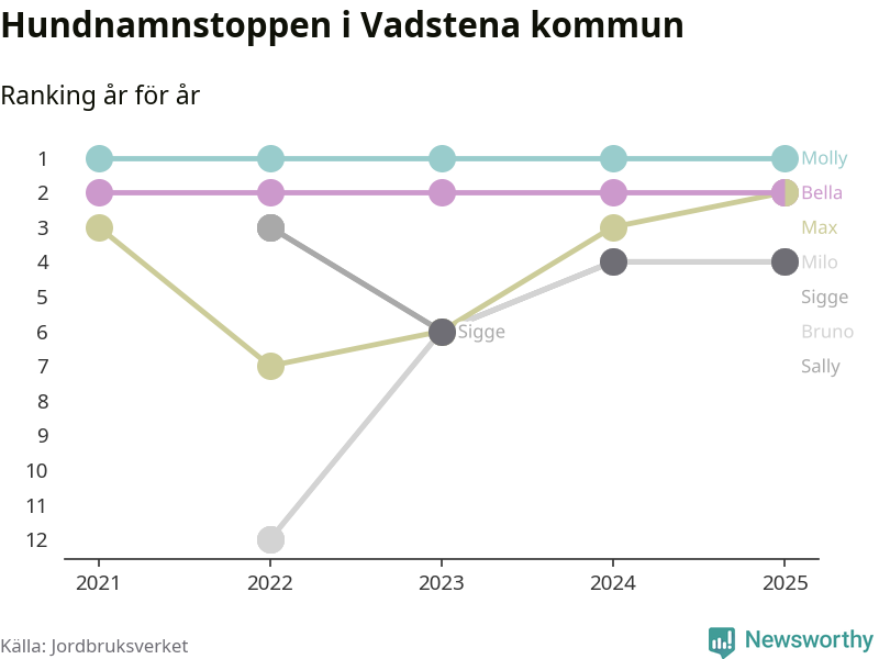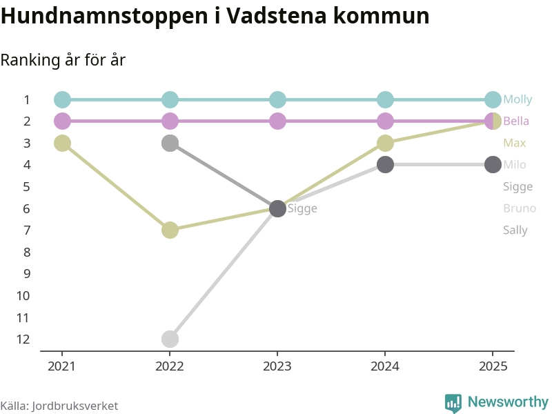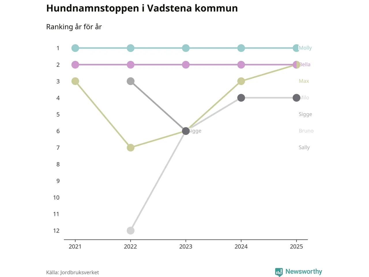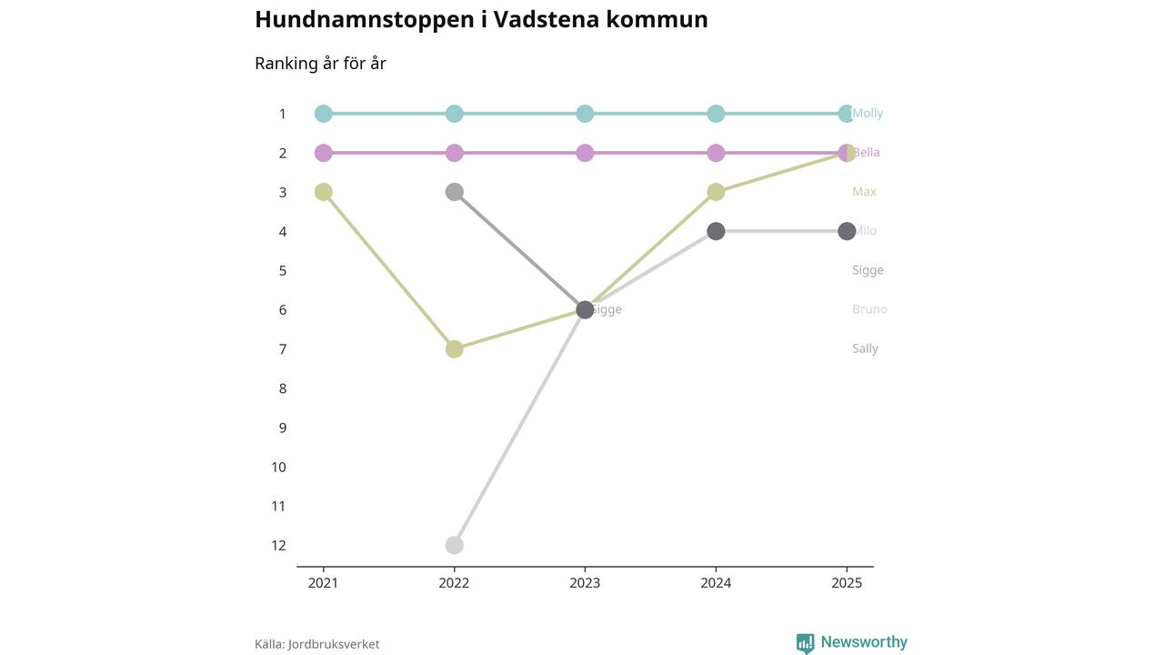 Molly toppar hundnamnsligan i Vadstena kommun,