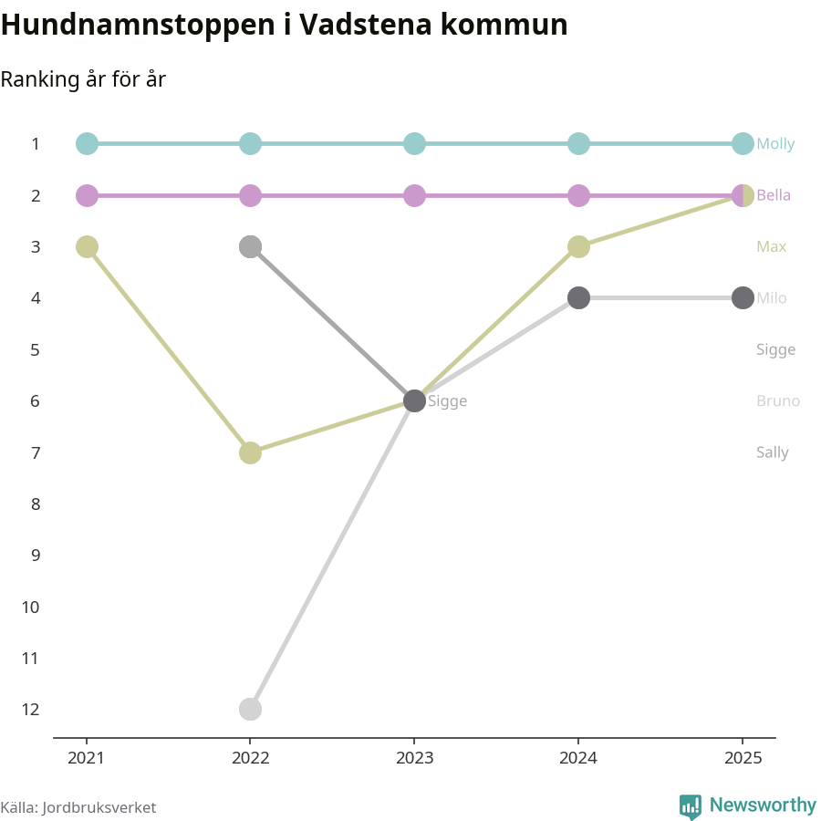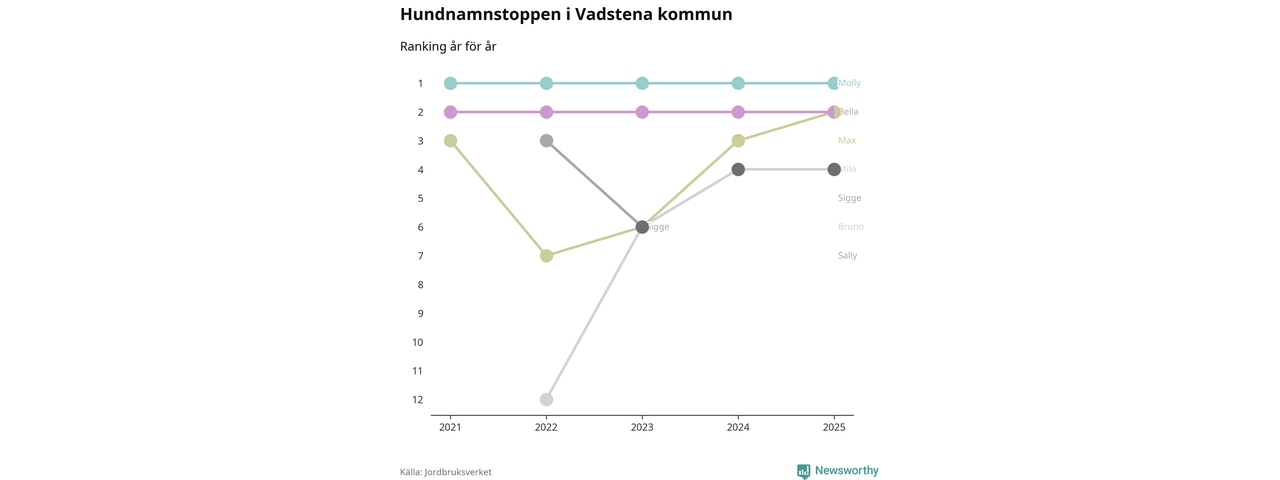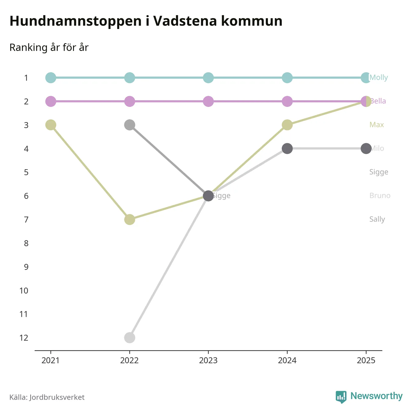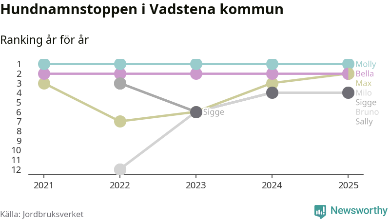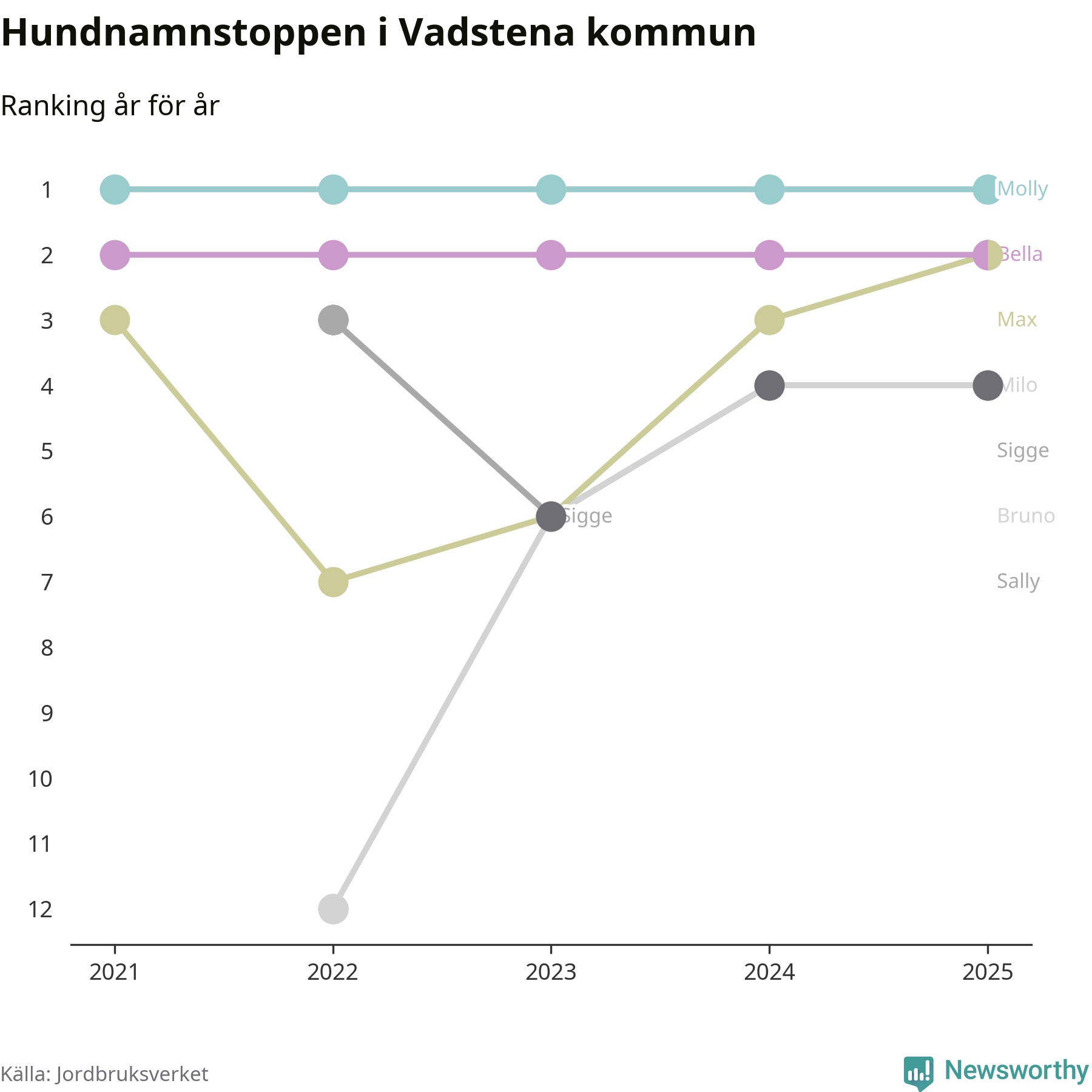 Molly toppar hundnamnsligan i Vadstena kommun,