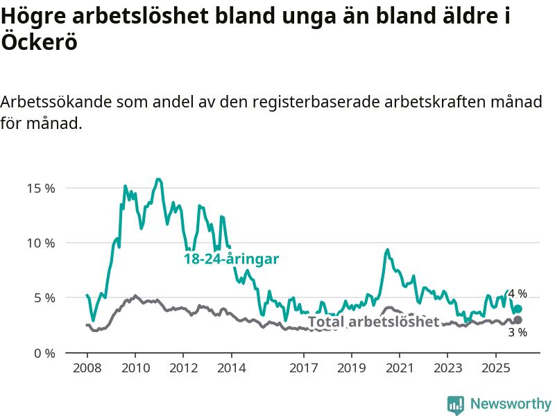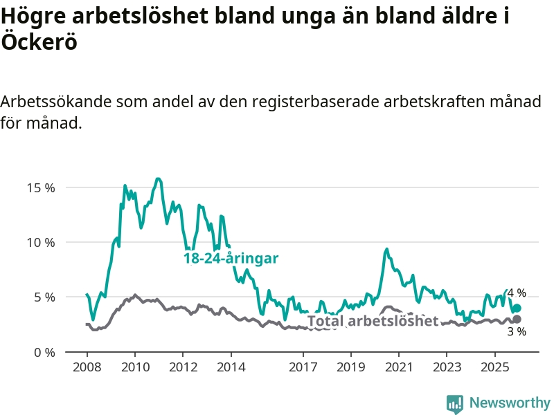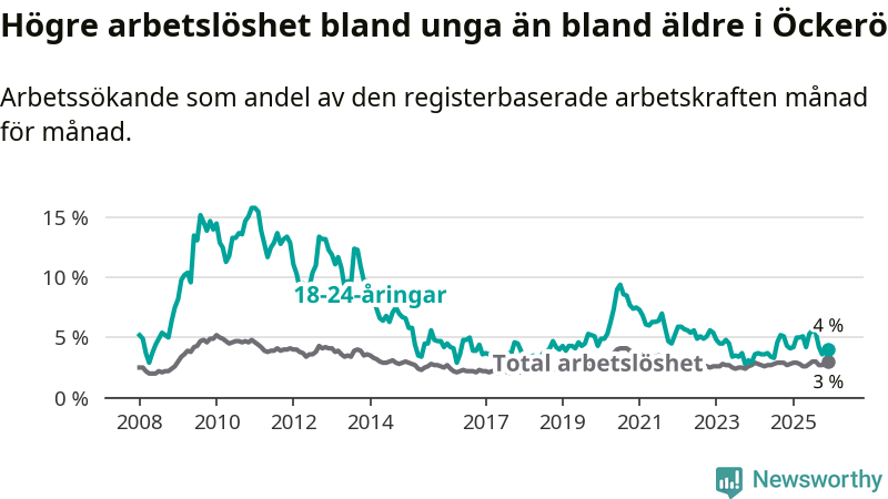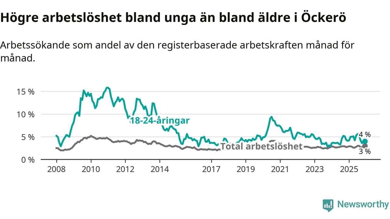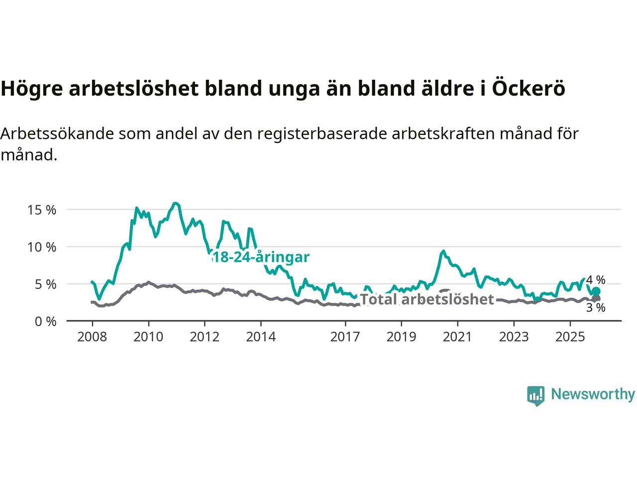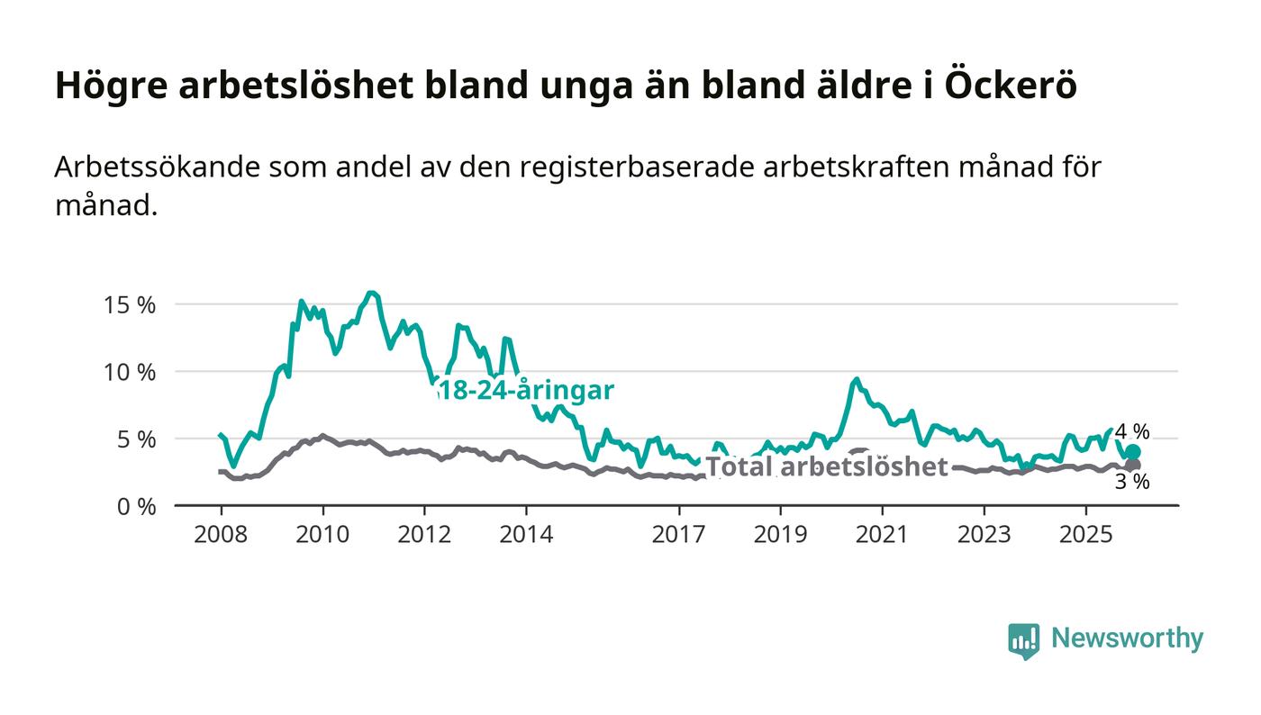 Graf: Arbetslöshet bland unga i Öckerö kommun och Västra Götalands län