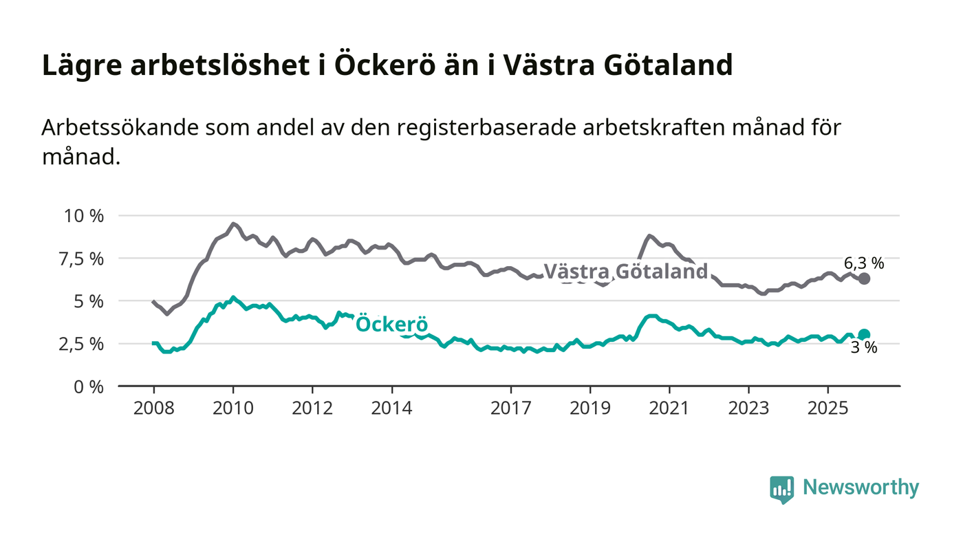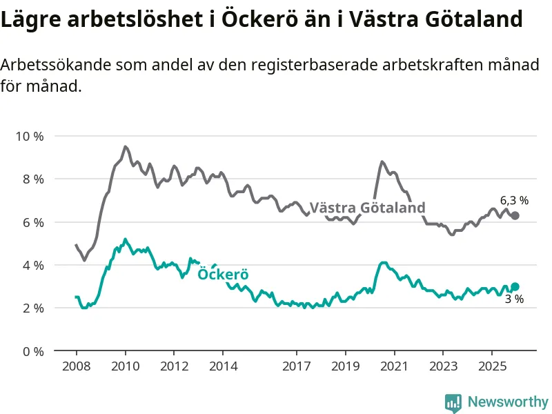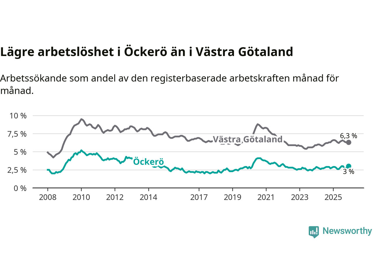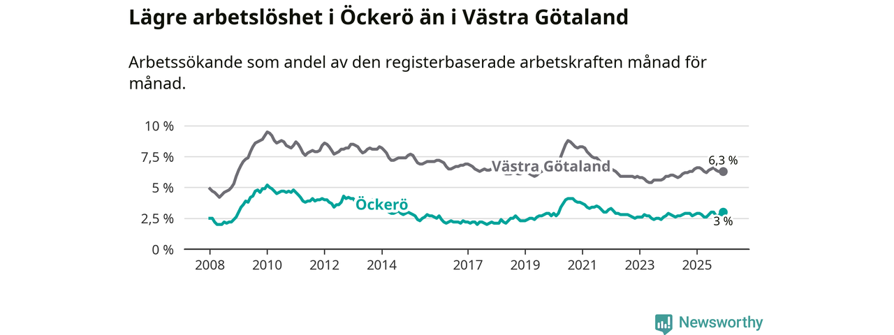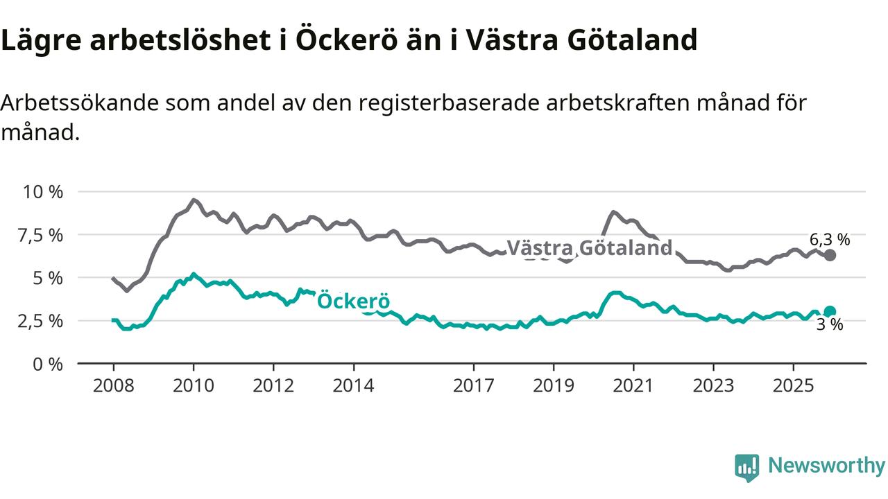 Graf: Arbetslöshet i Öckerö kommun och Västra Götalands län