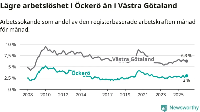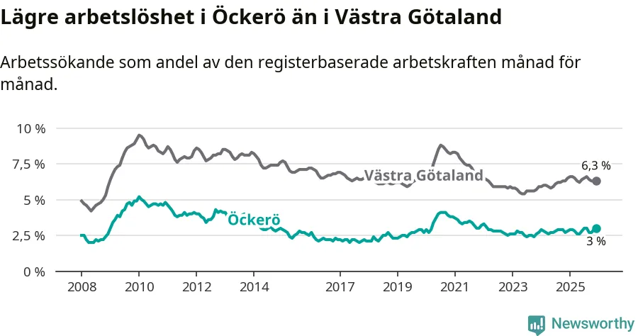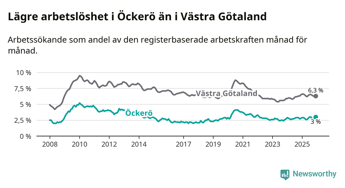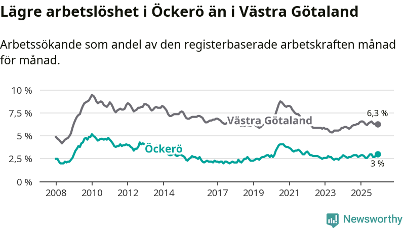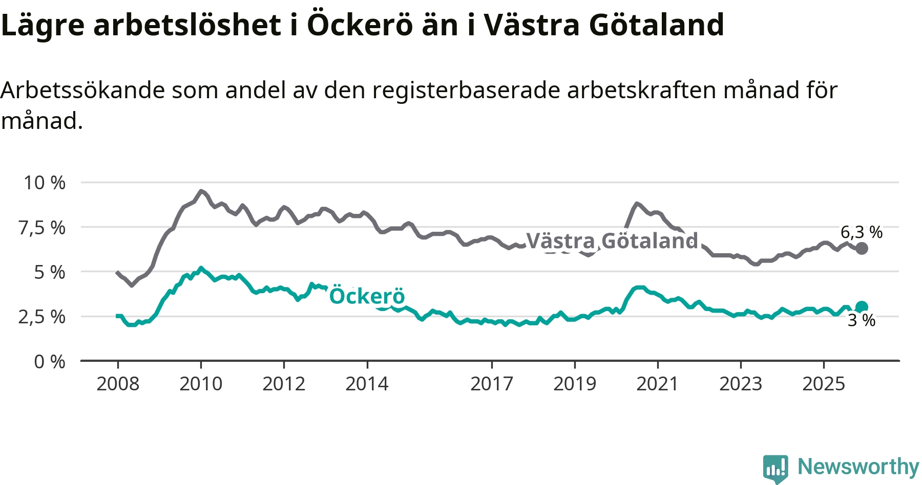 Graf: Arbetslöshet i Öckerö kommun och Västra Götalands län