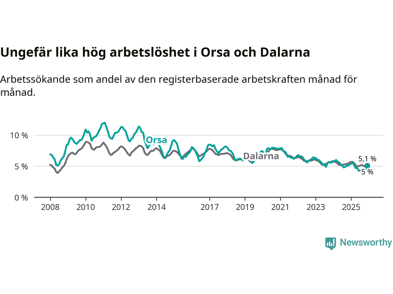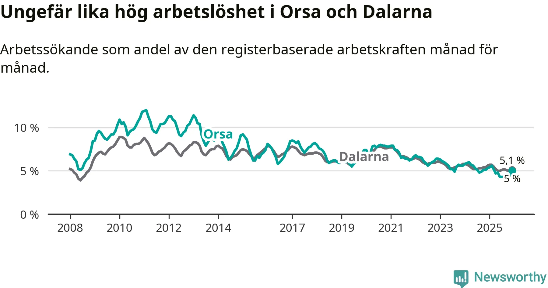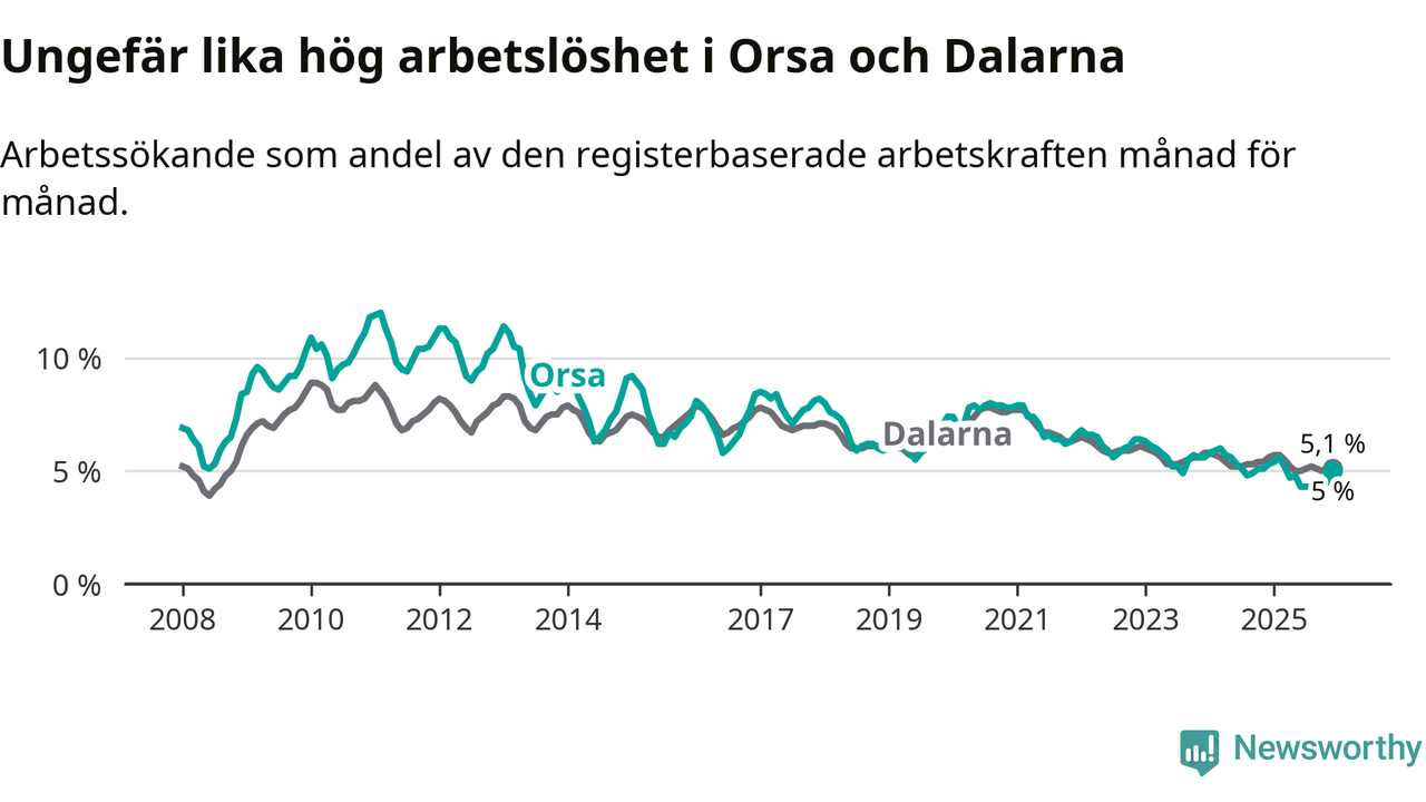 Graf: Arbetslöshet i Orsa kommun och Dalarnas län