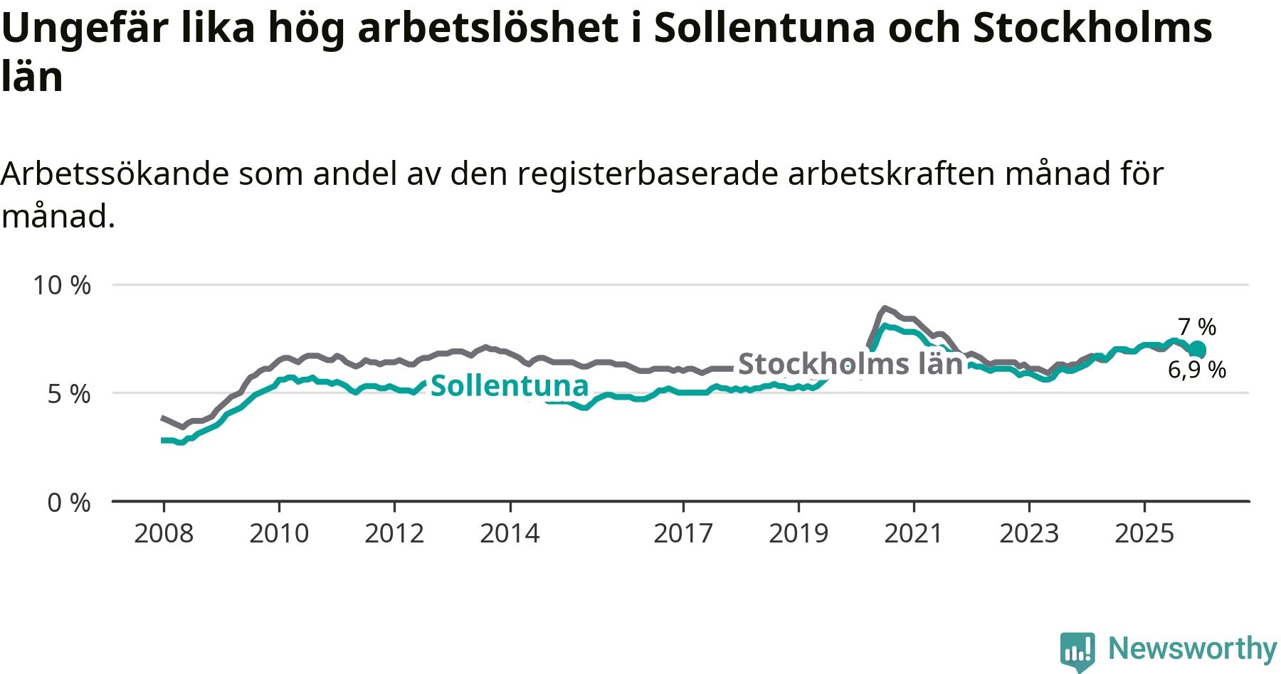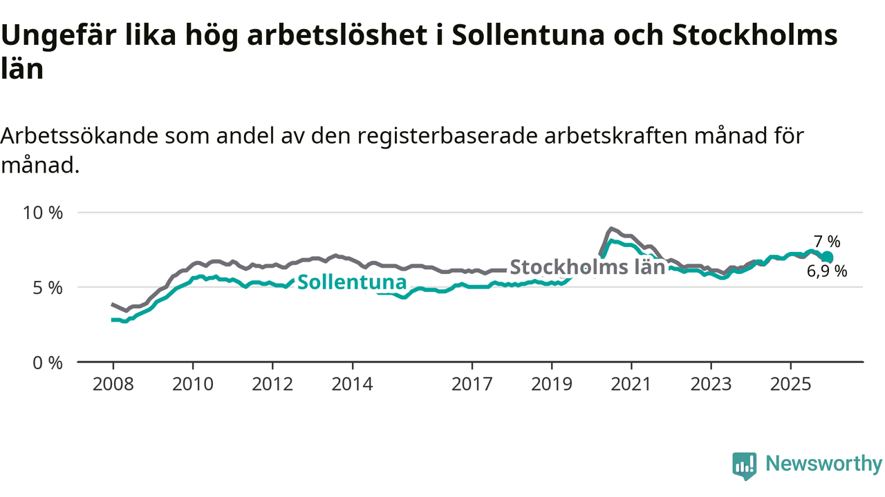| Sollentuna | 6,8 % | +0,1 % ▲ |