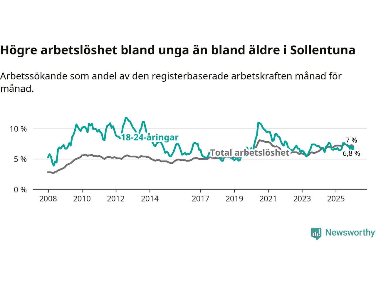 | Bland ungdomar | 6,8 % | +0,1 % ▲ | 6,8 % | −0,3 % ▼ | 7,5 % | −0,8 % ▼ |