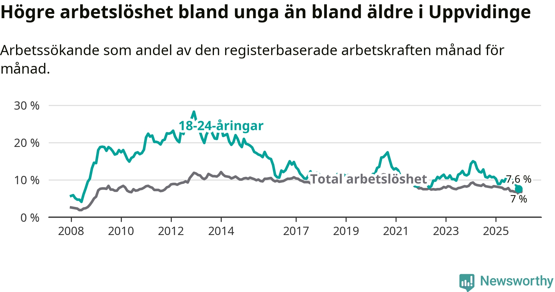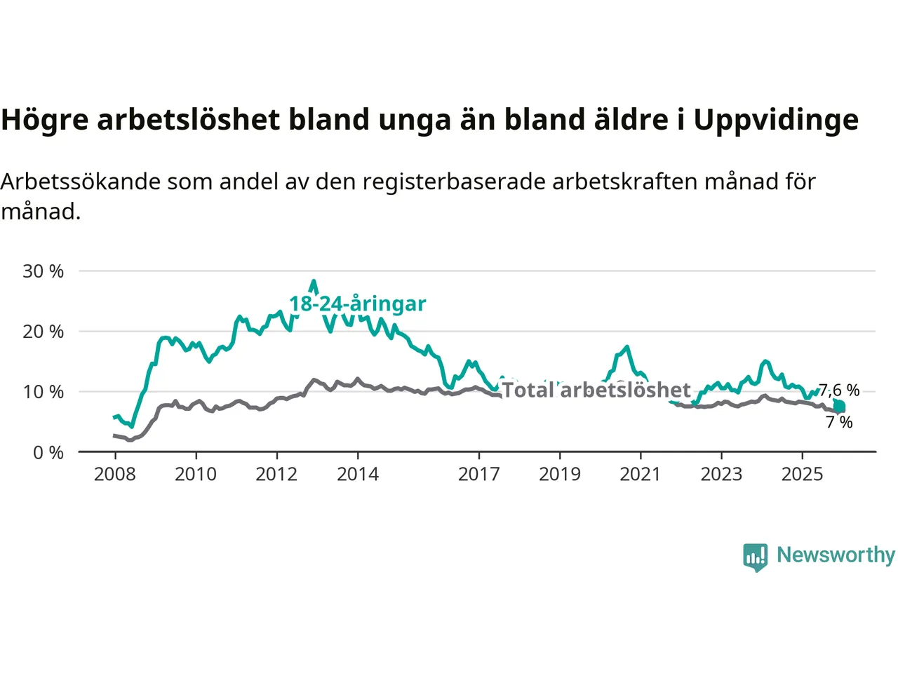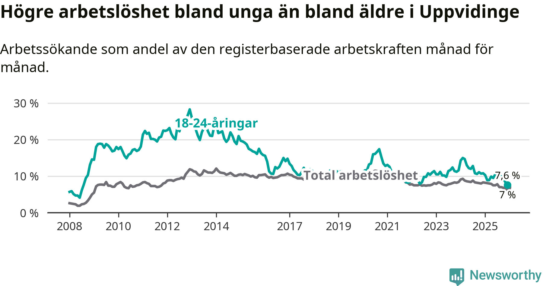 | Bland ungdomar | 7,6 % | −3,2 % ▼ | 8,1 % | −0,8 % ▼ | 7,5 % | −0,8 % ▼ |