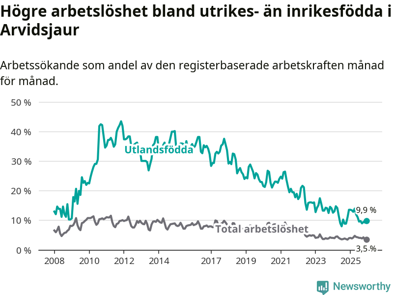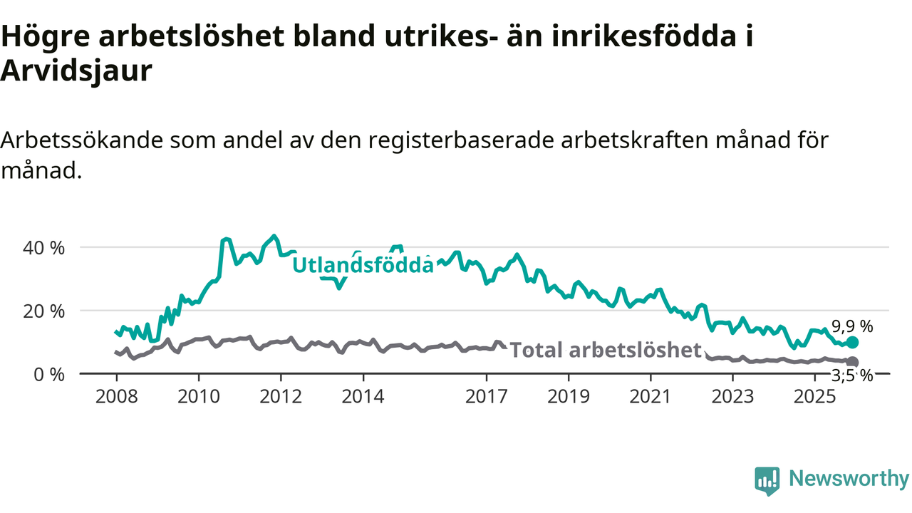 Läs mer om arbetslösheten bland utlandsfödda längre ner i den här texten.