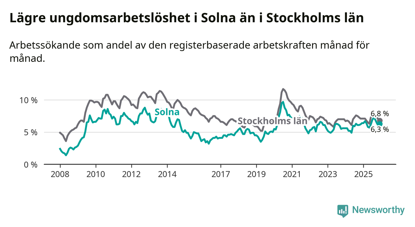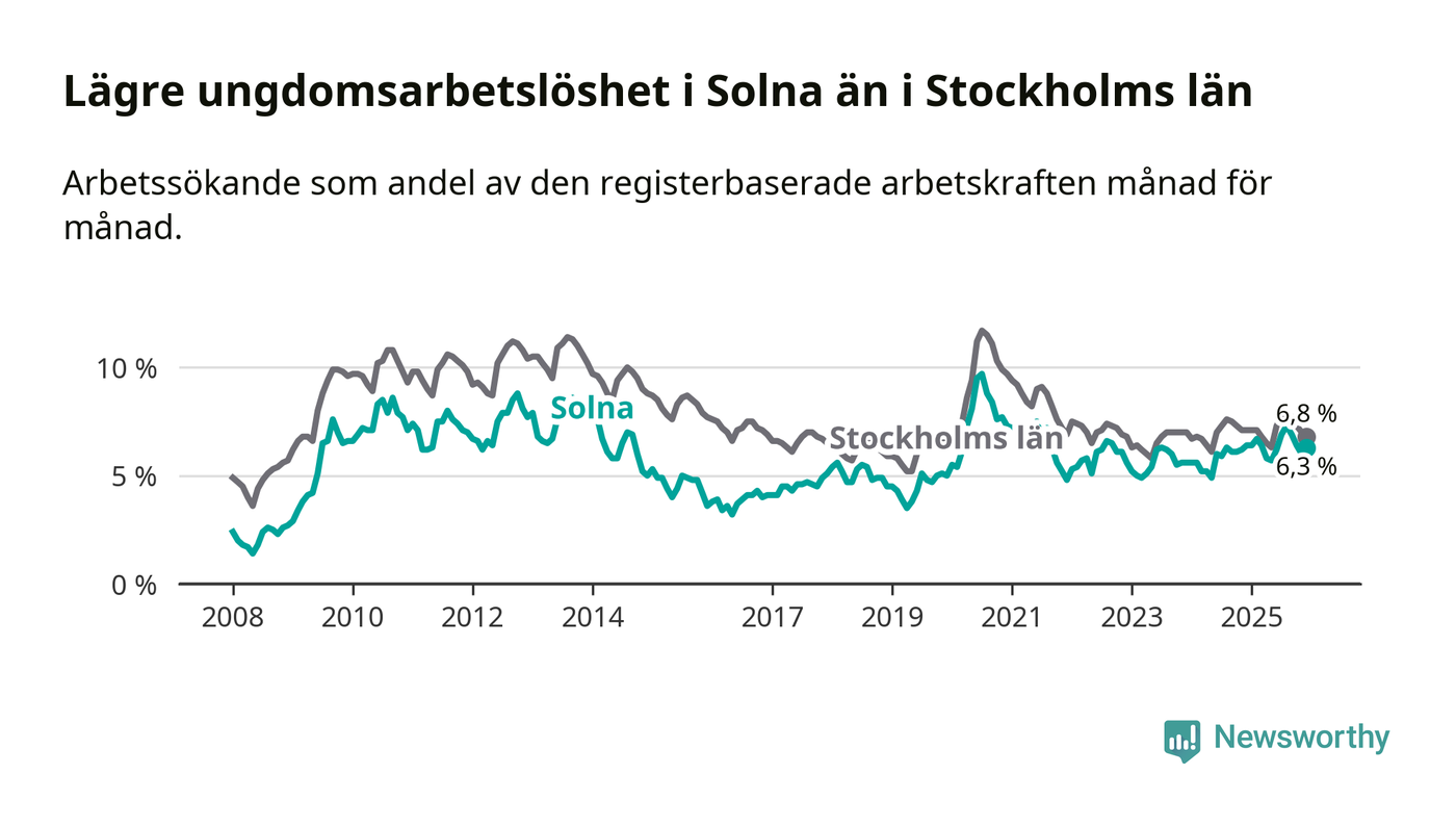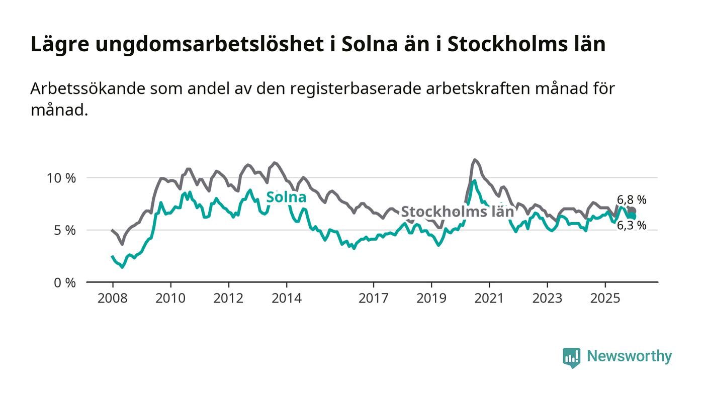 Graf: Arbetslöshet bland unga i Solna kommun och Stockholms län