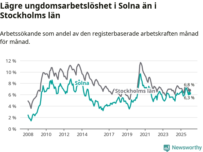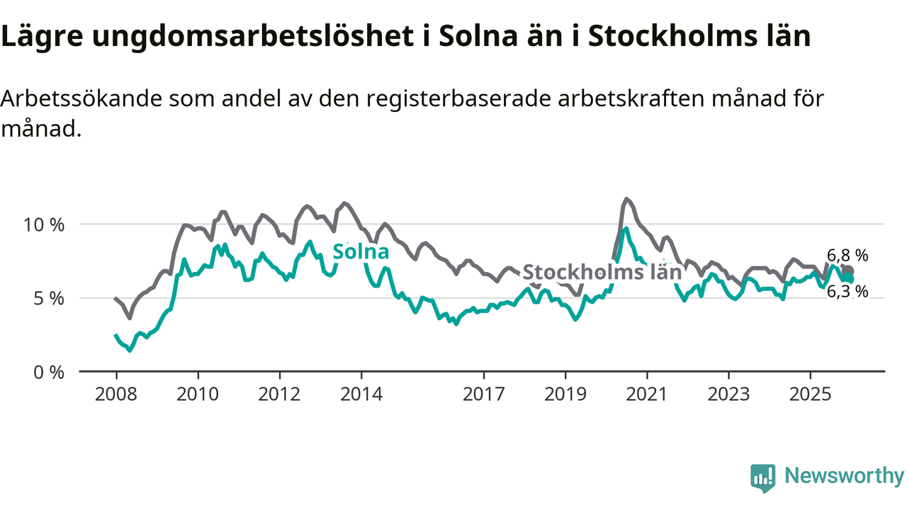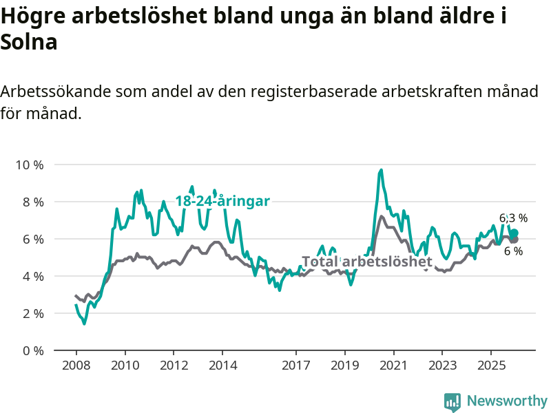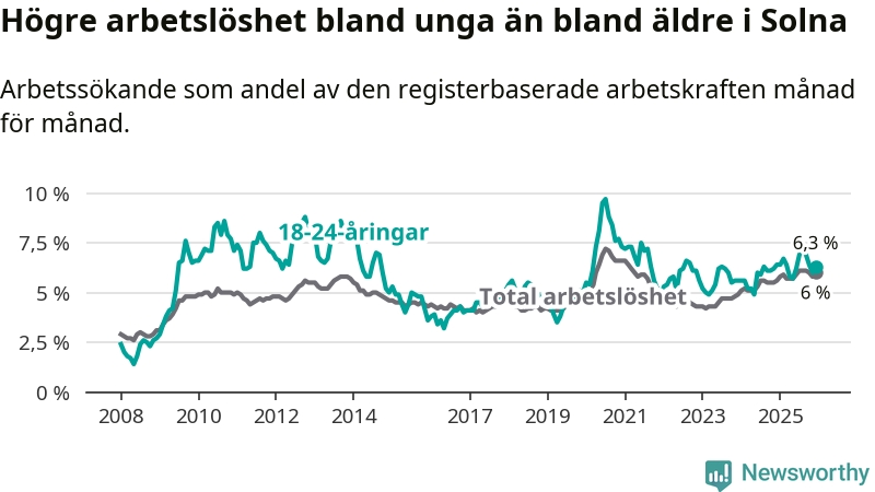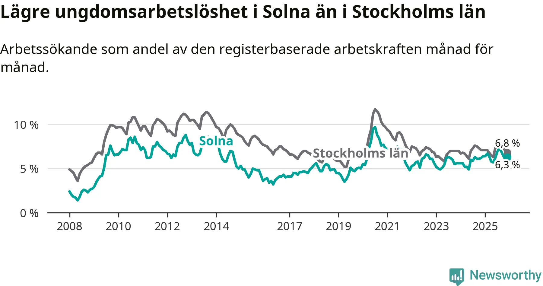 Graf: Arbetslöshet bland unga i Solna kommun och Stockholms län