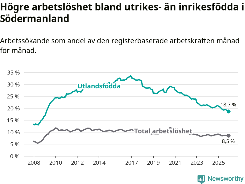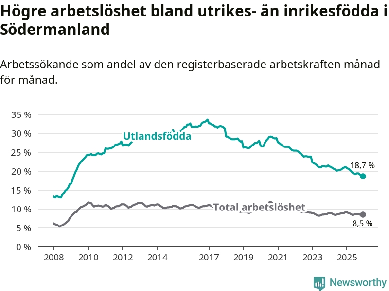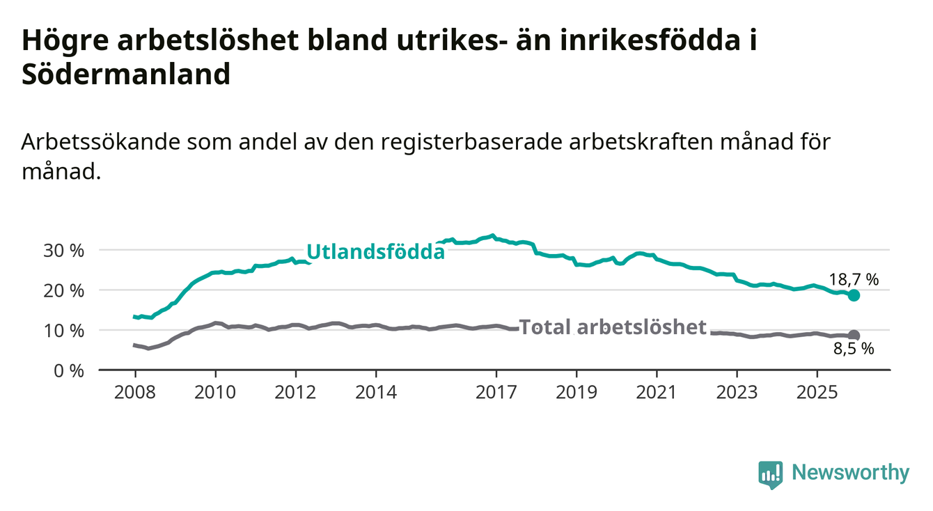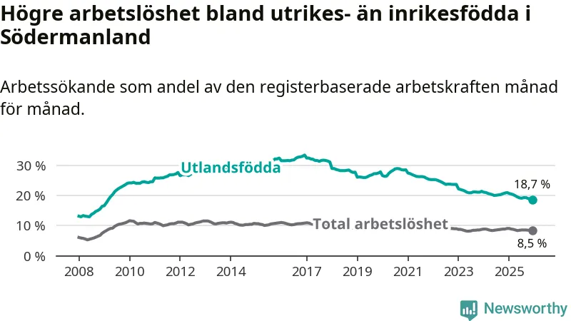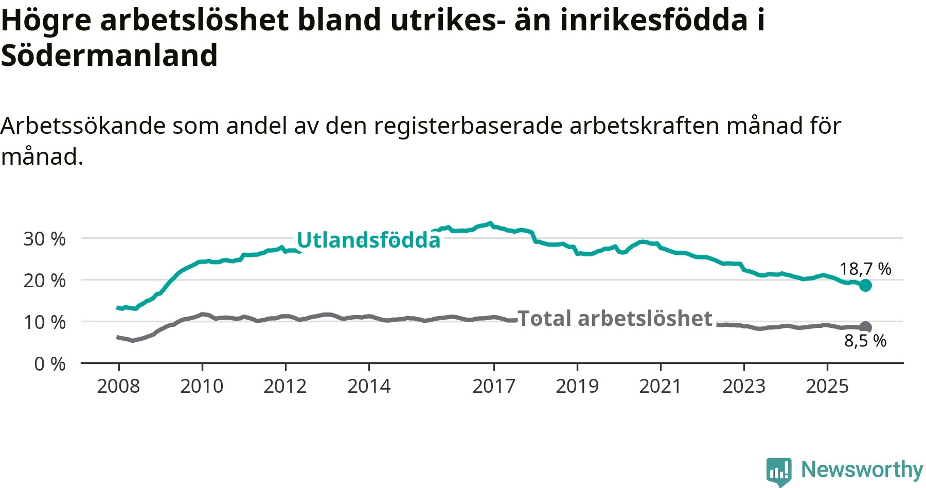 Arbetslöshet bland utlandsfödda i Södermanlands län