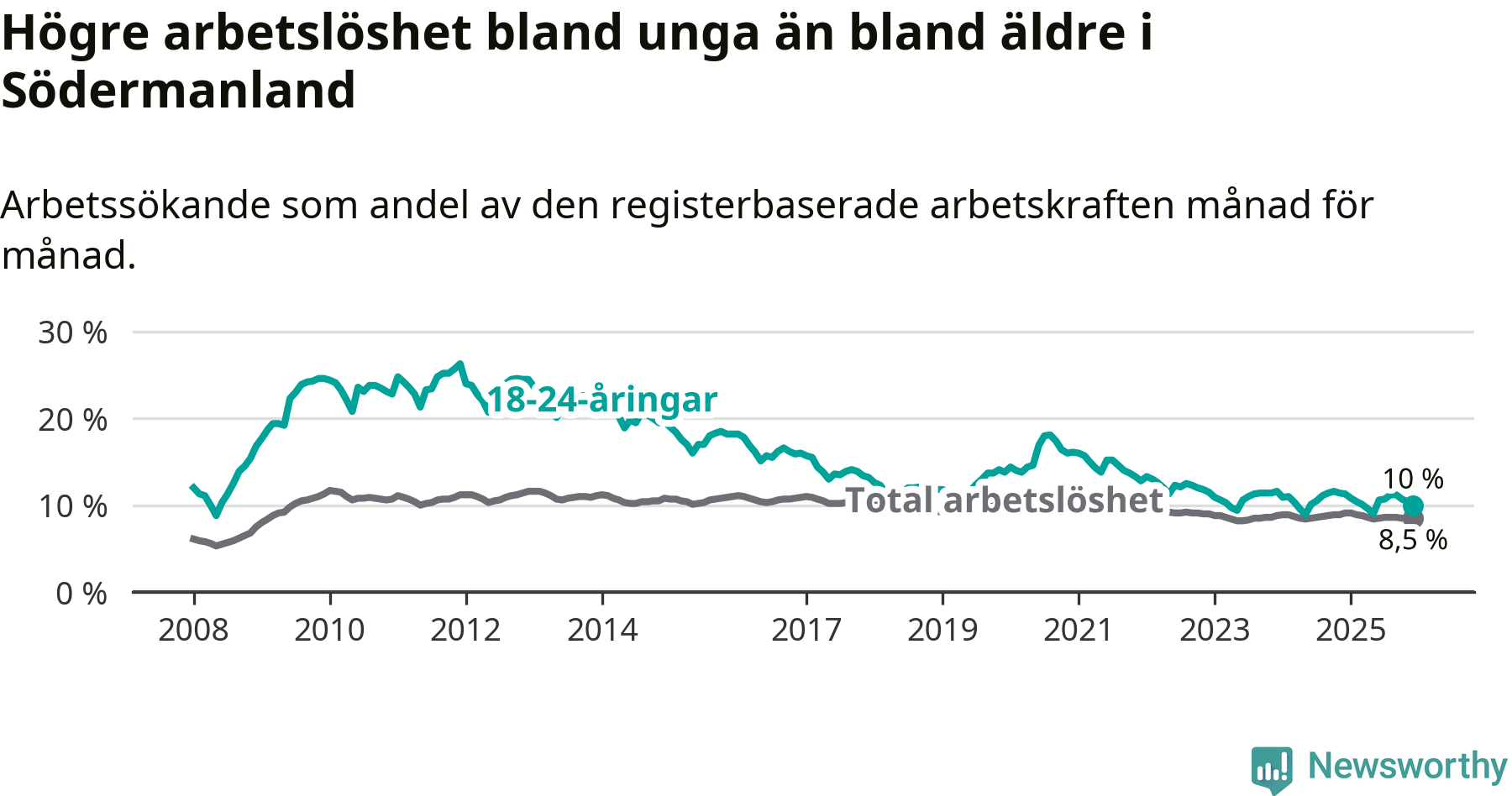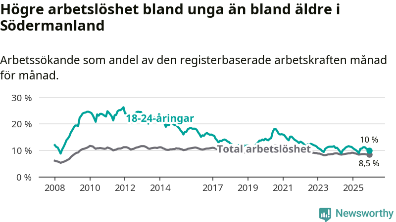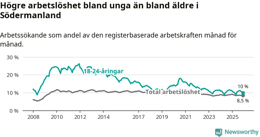 Arbetslöshet bland 18–24-åringar i Södermanlands län