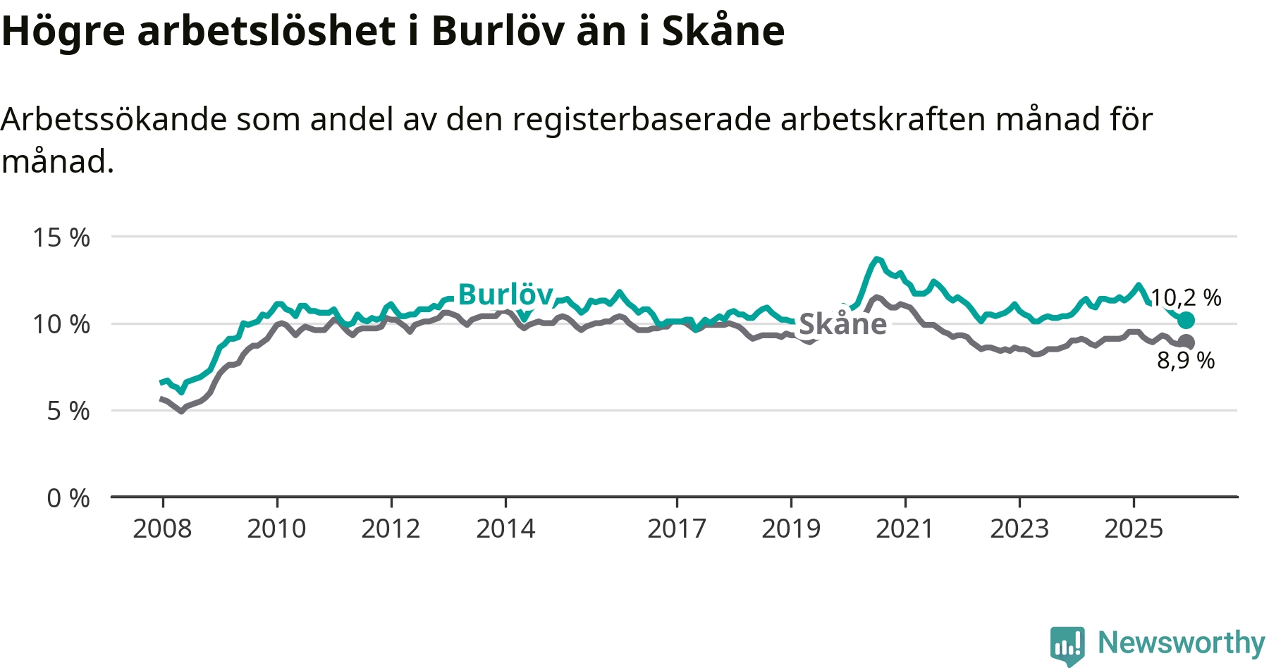 Graf: Arbetslöshet i Burlövs kommun och Skåne län