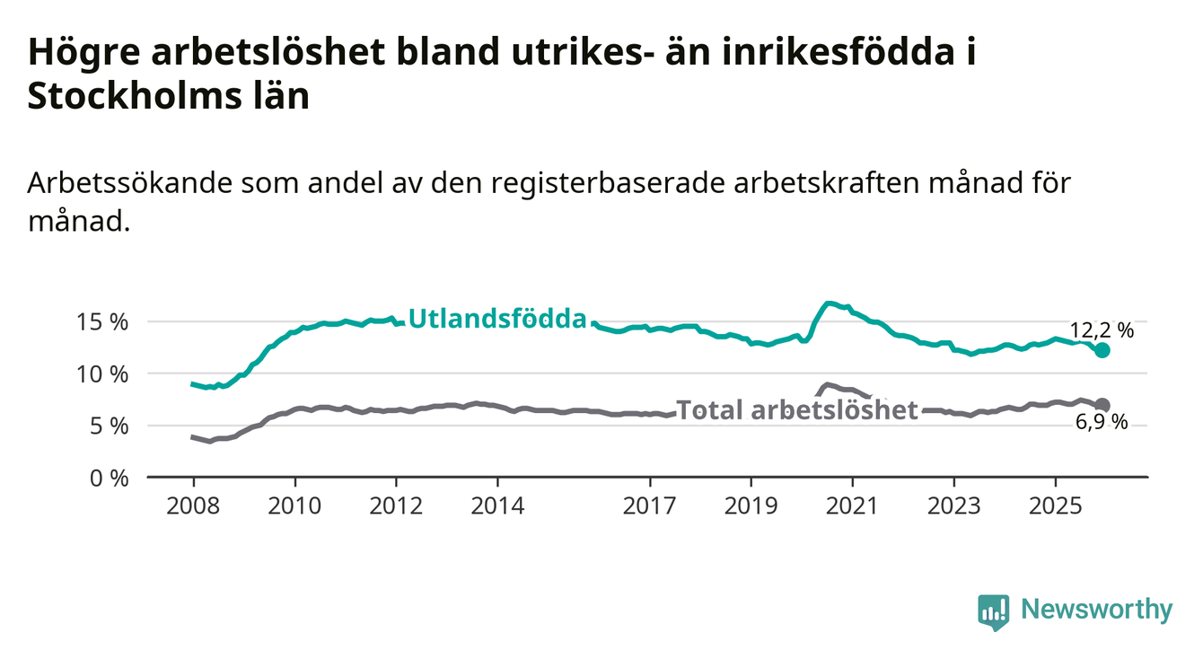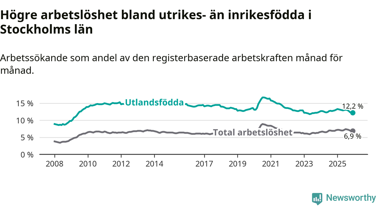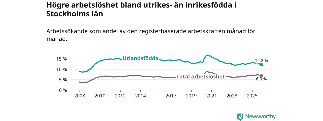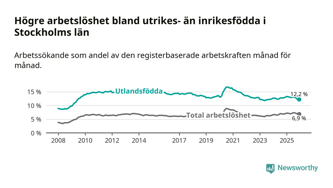Läs mer om arbetslösheten bland utlandsfödda längre ner i den här texten.