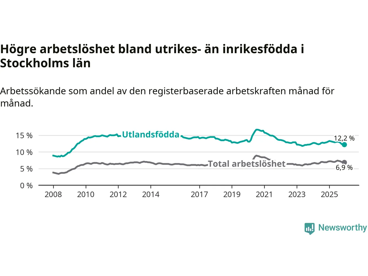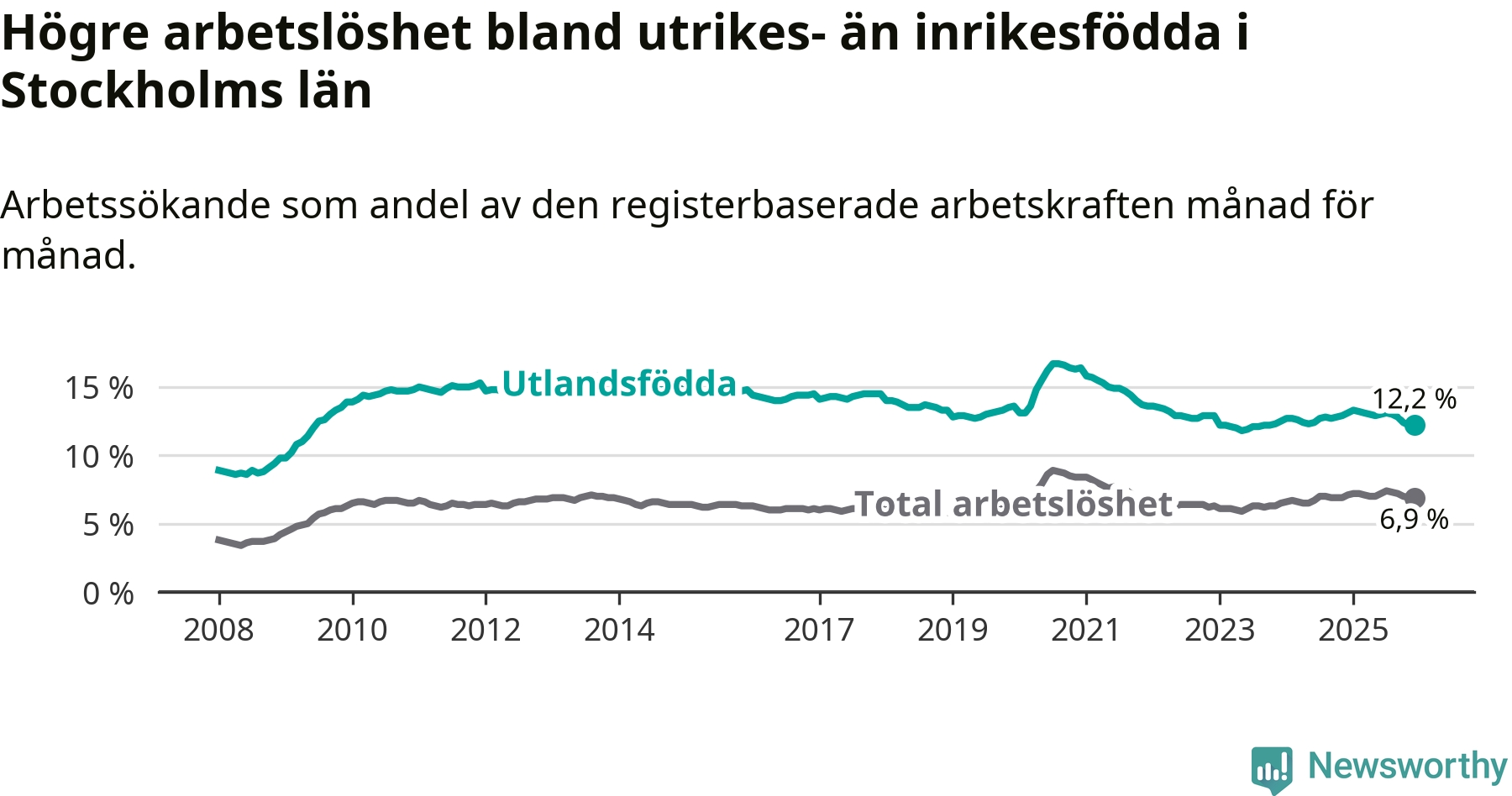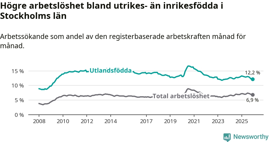 Läs mer om arbetslösheten bland utlandsfödda längre ner i den här texten.