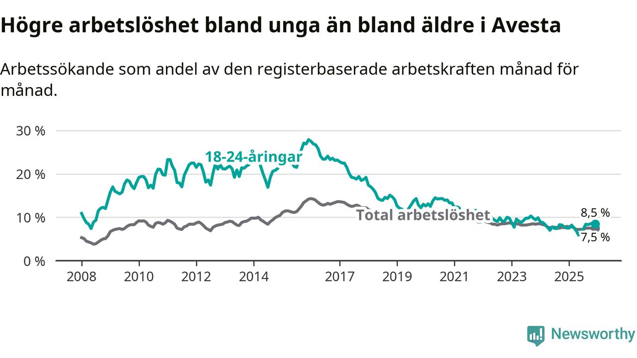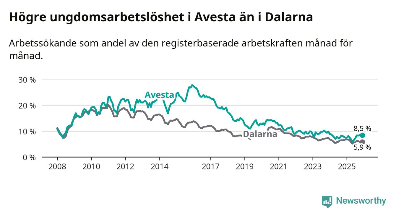 Graf: Arbetslöshet bland unga i Avesta kommun och Dalarnas län