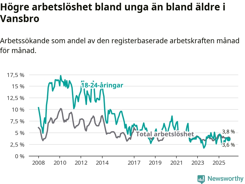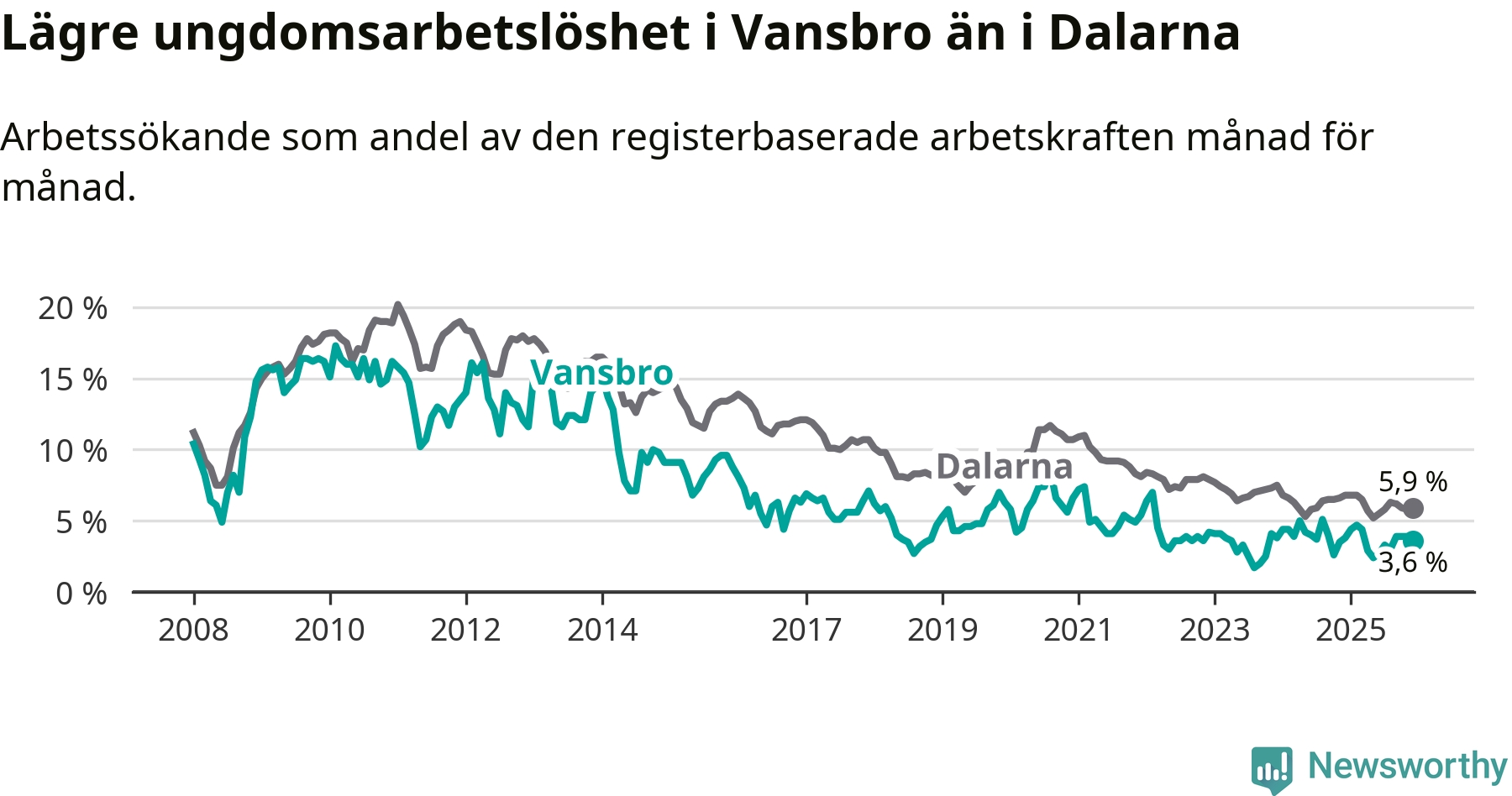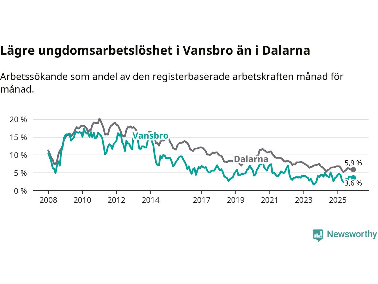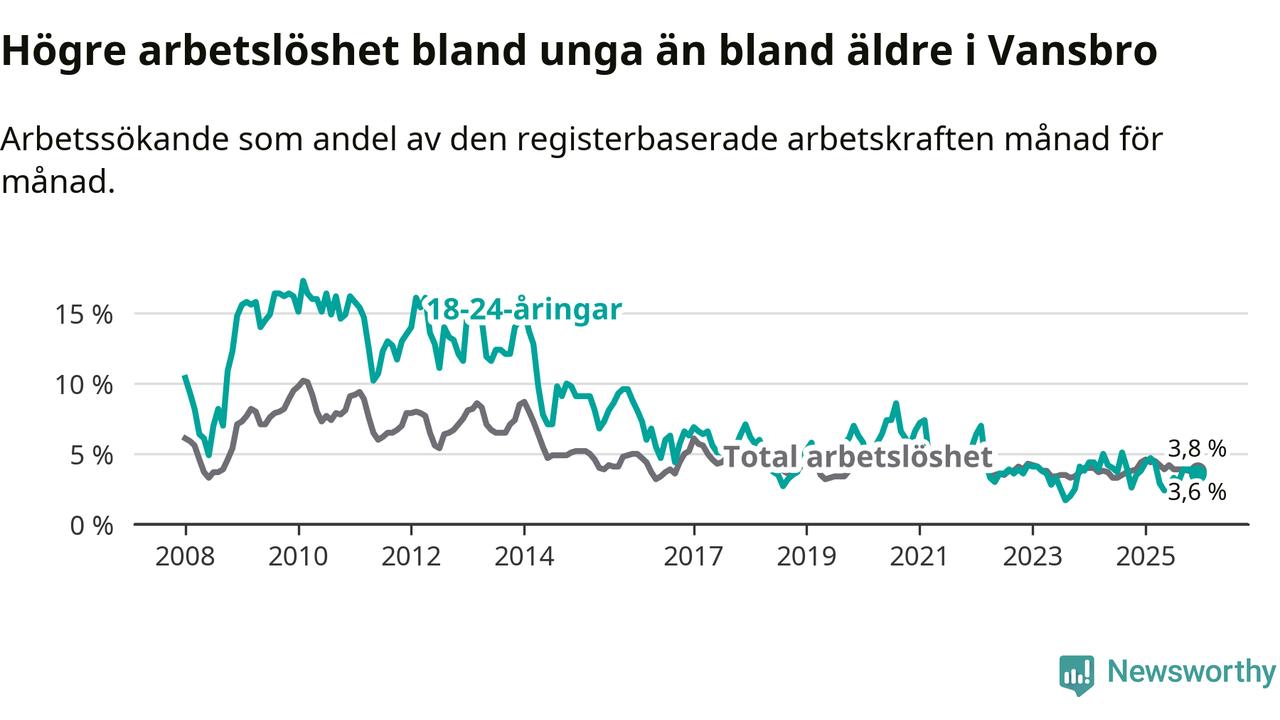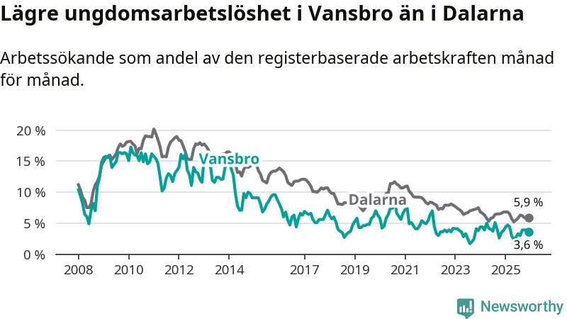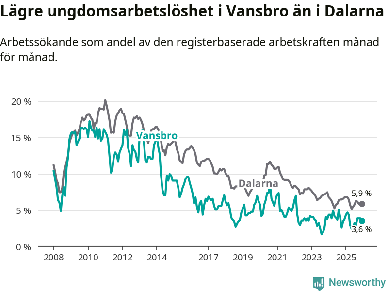Graf: Arbetslöshet bland unga i Vansbro kommun och Dalarnas län