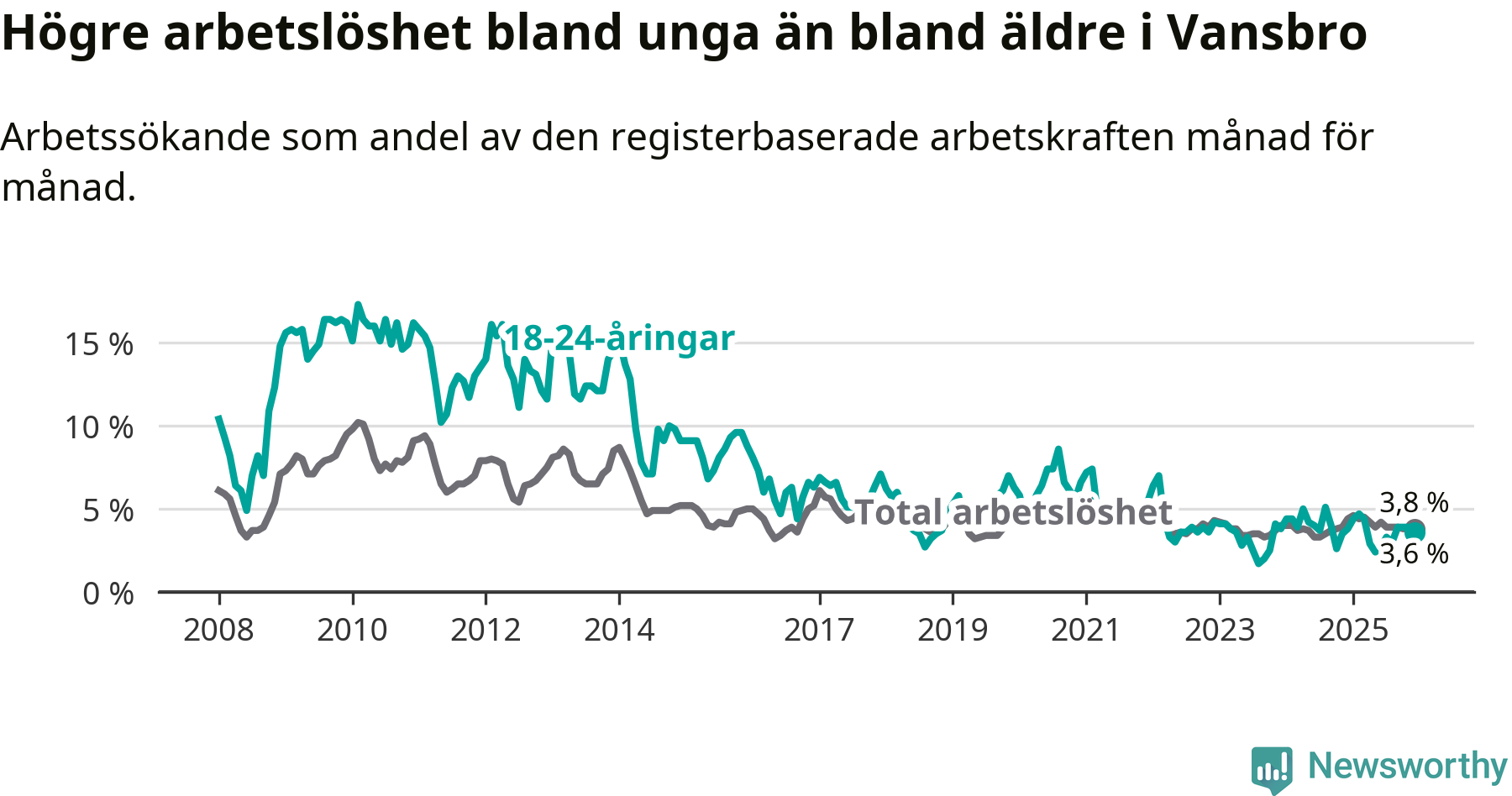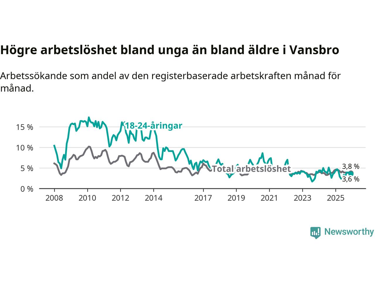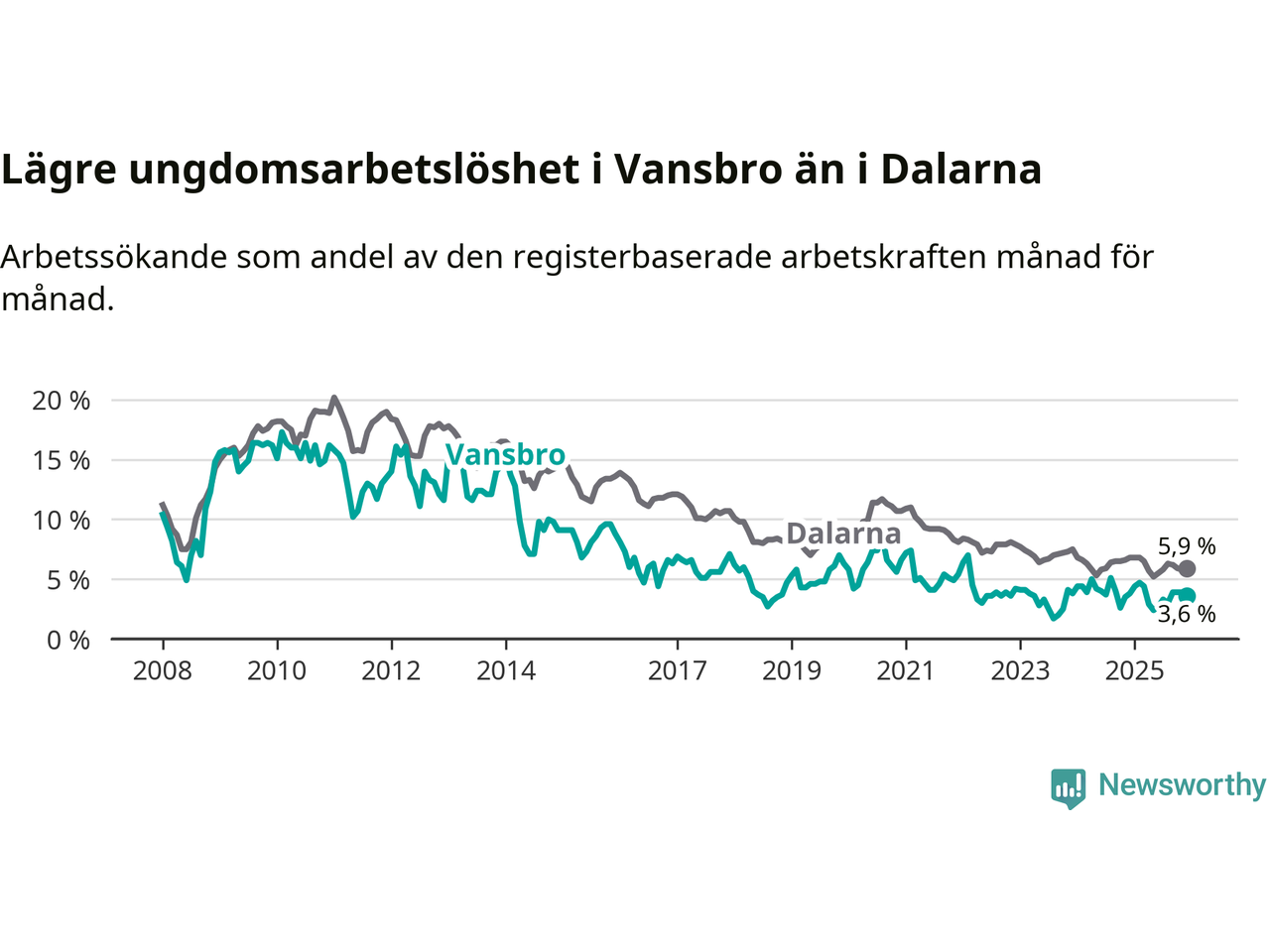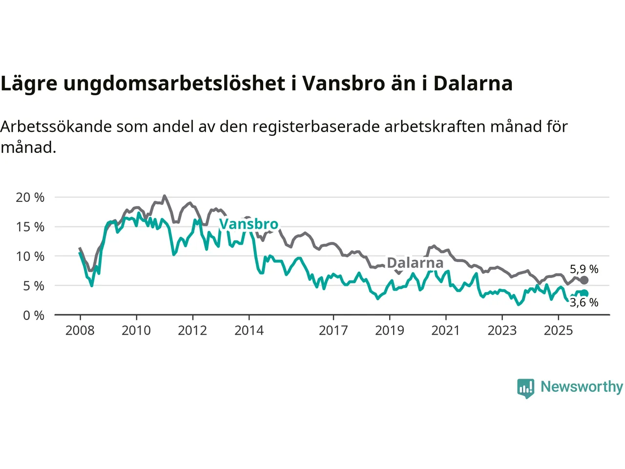 Graf: Arbetslöshet bland unga i Vansbro kommun och Dalarnas län