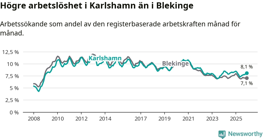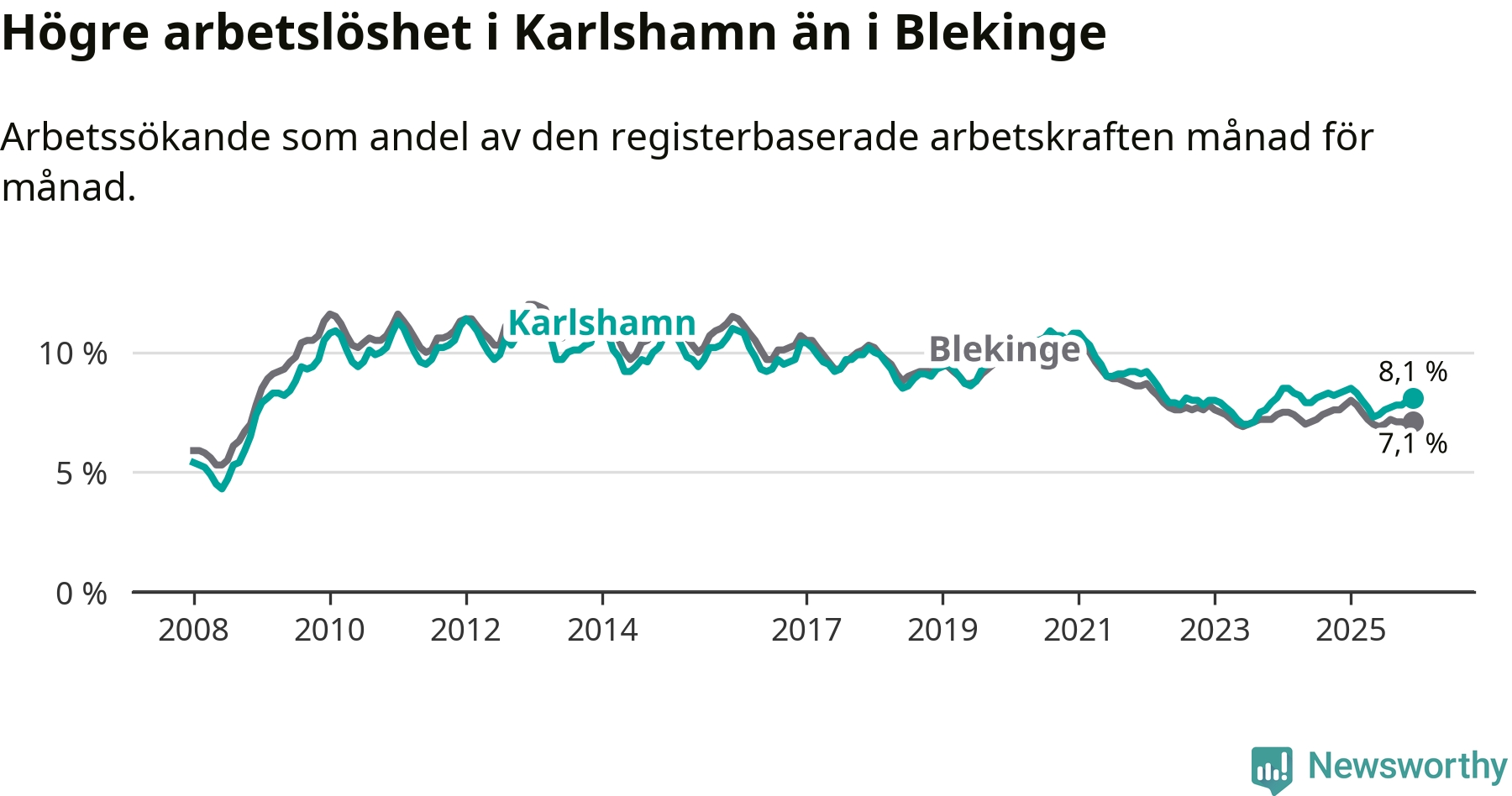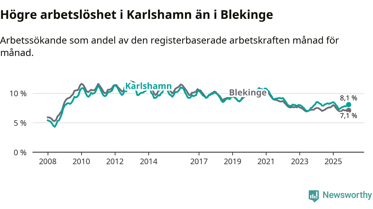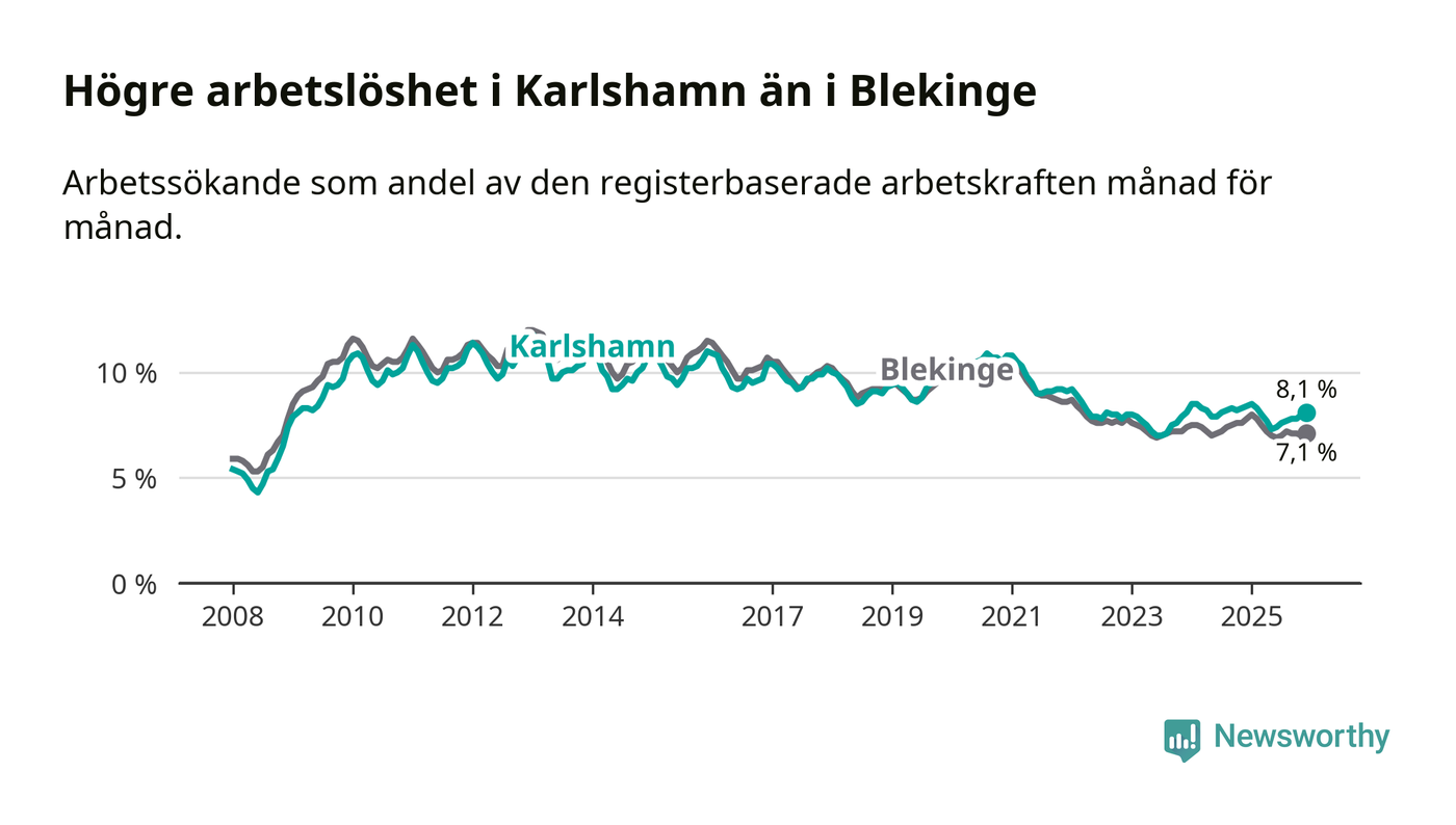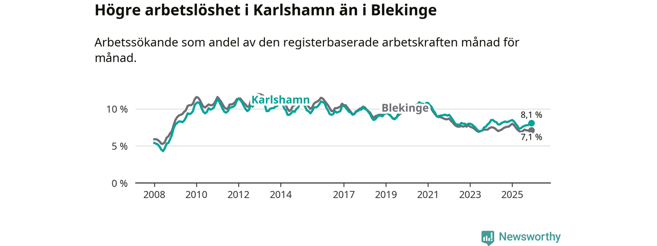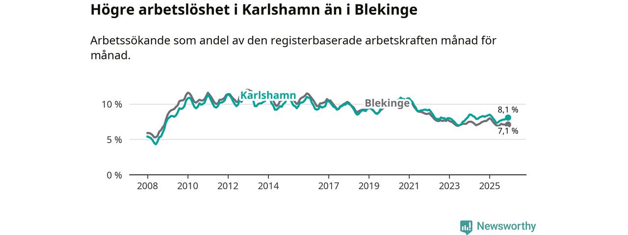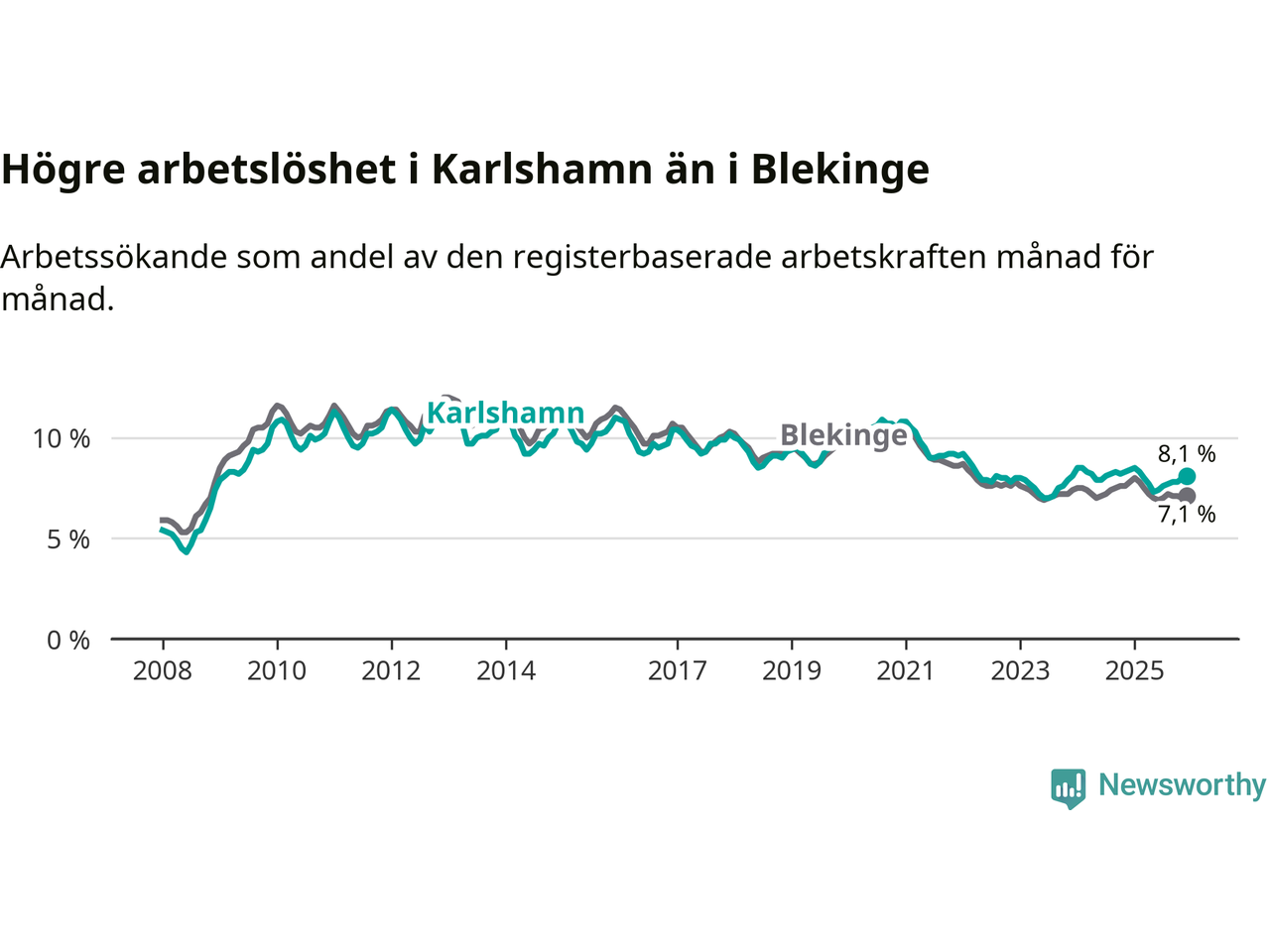 Graf: Arbetslöshet i Karlshamns kommun och Blekinge län