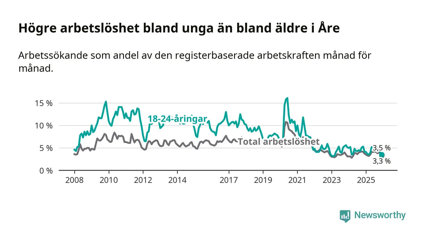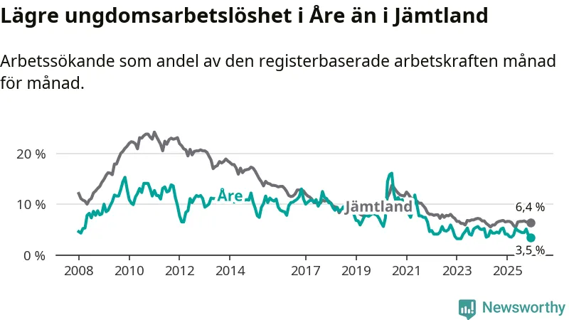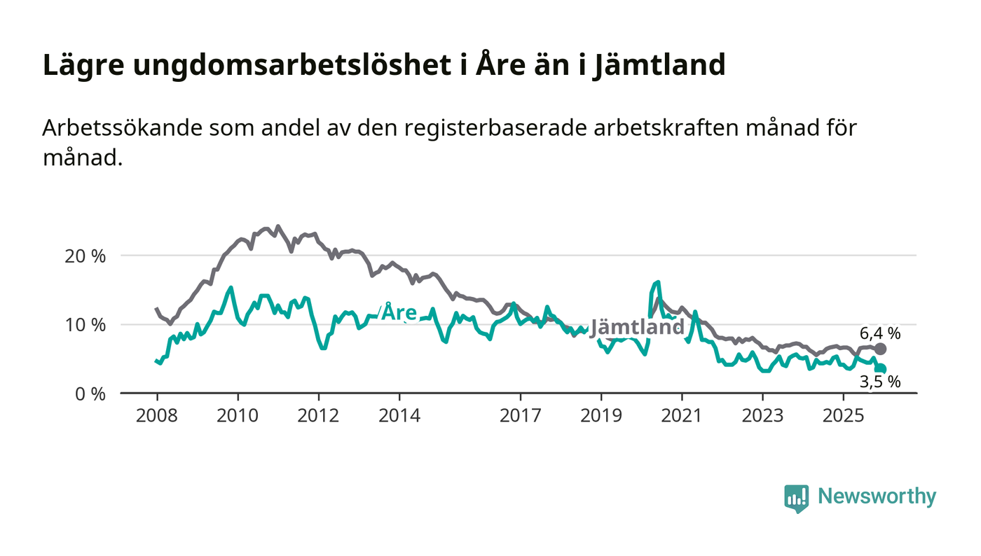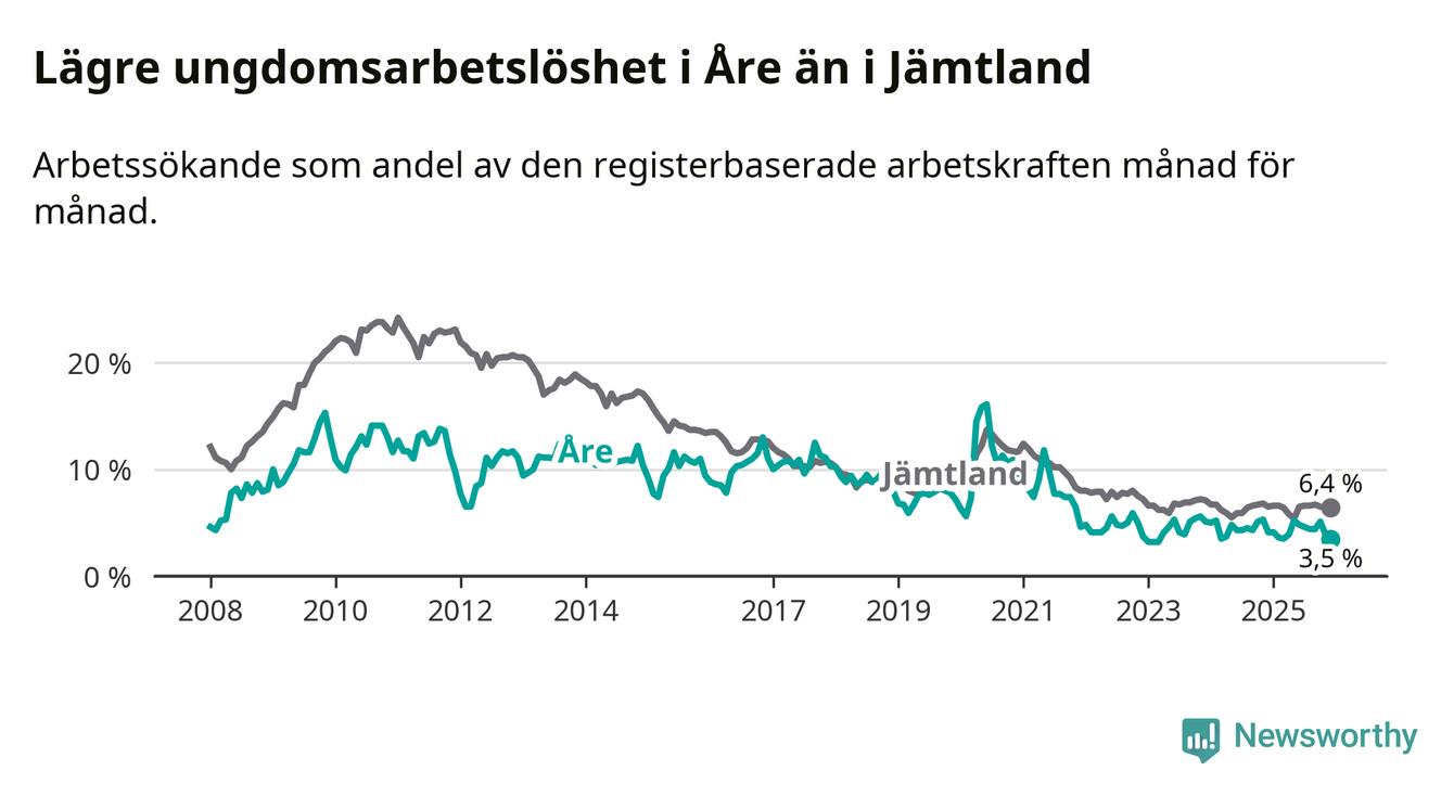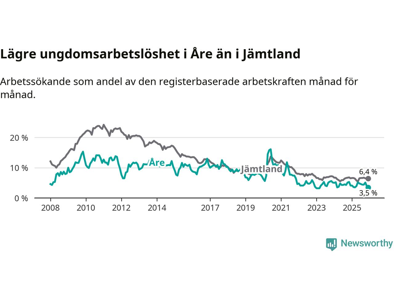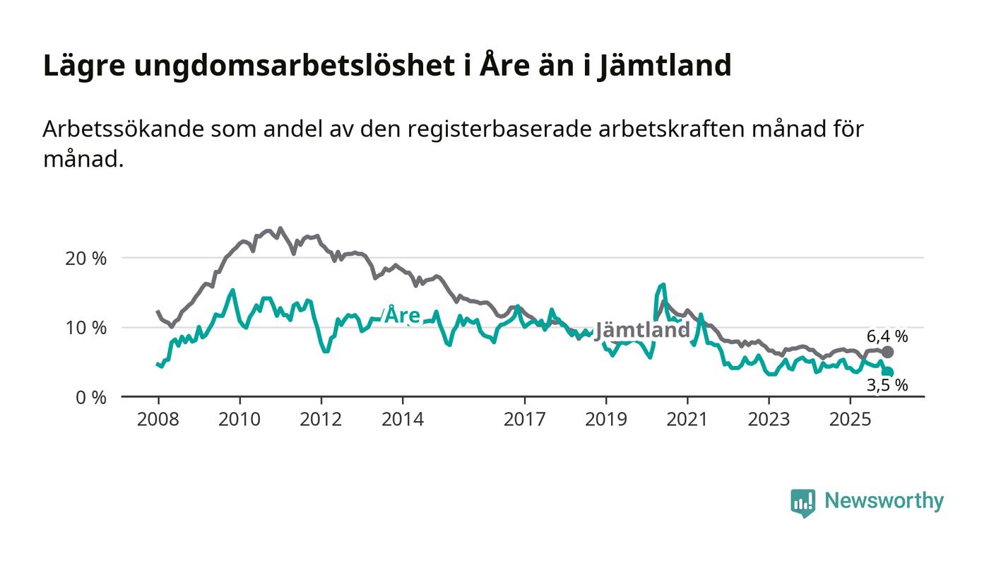 Graf: Arbetslöshet bland unga i Åre kommun och Jämtlands län