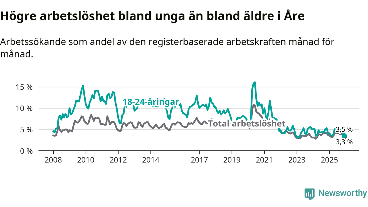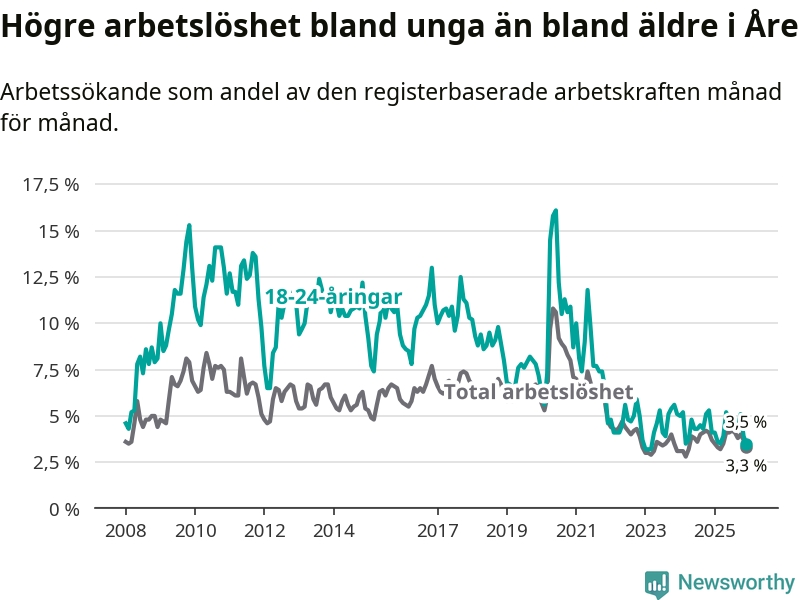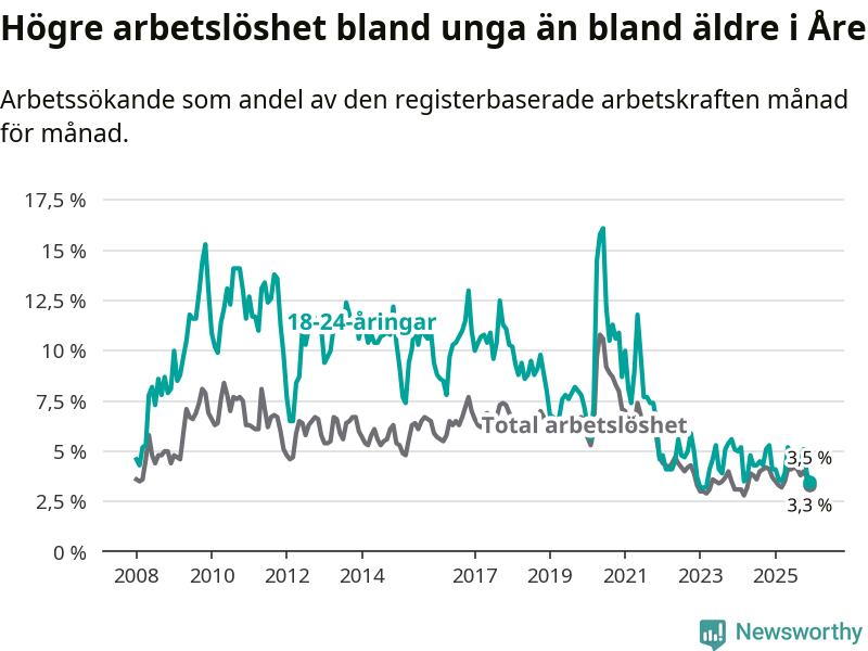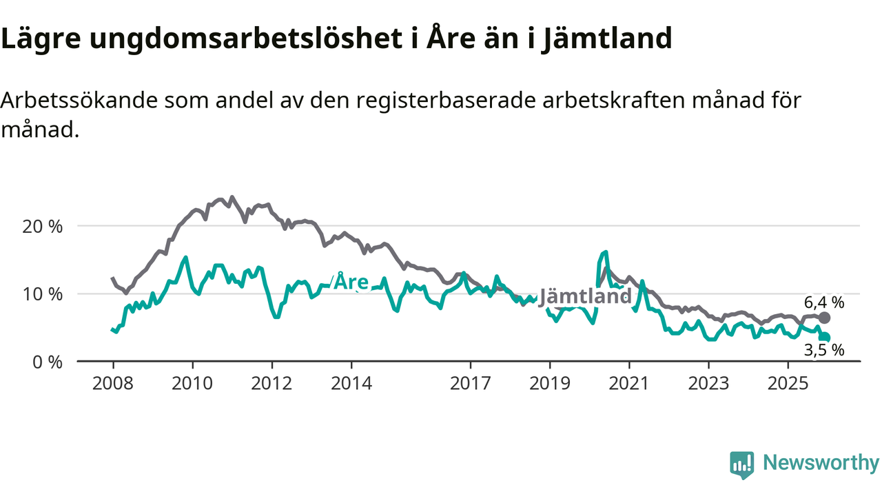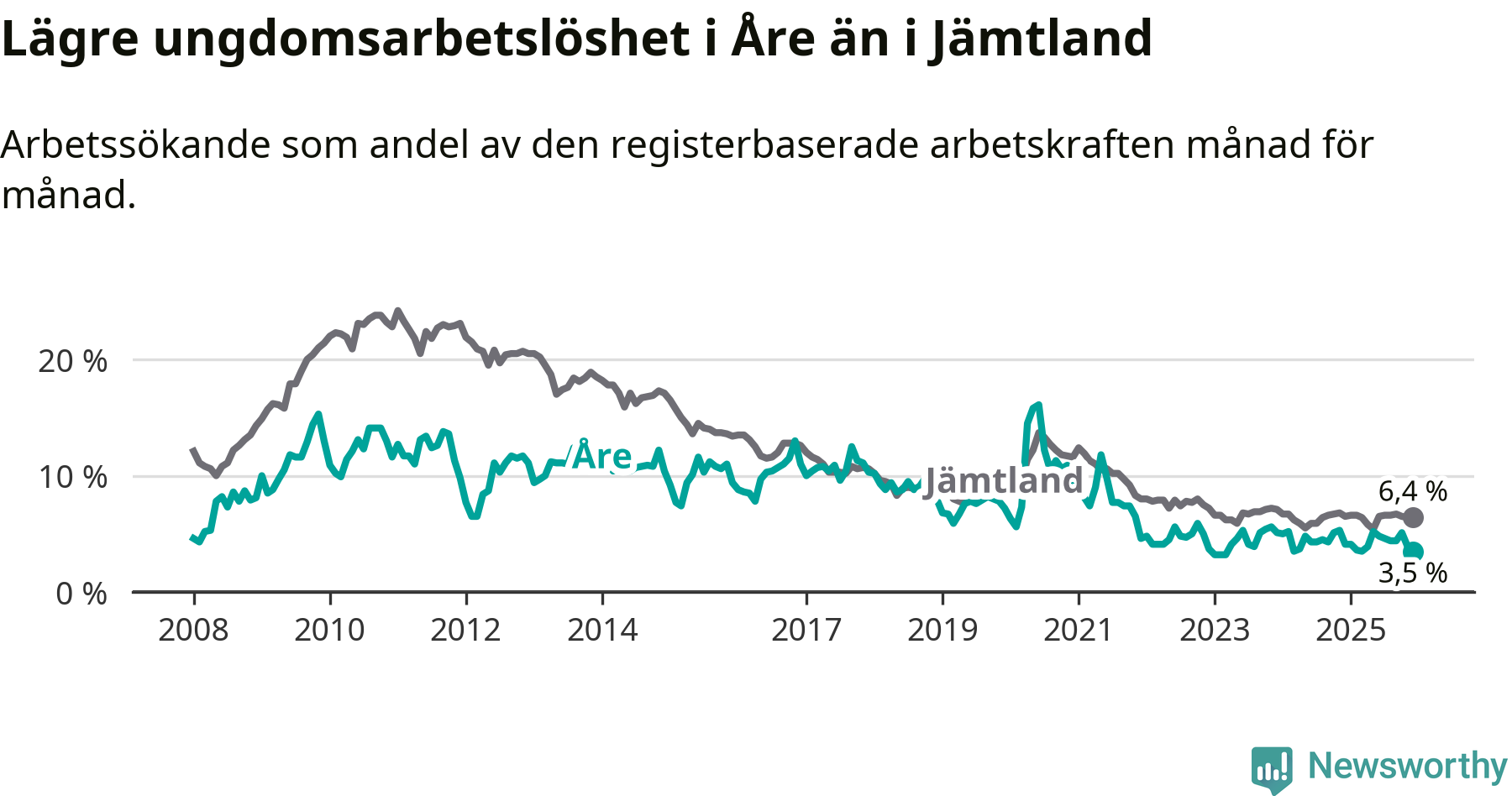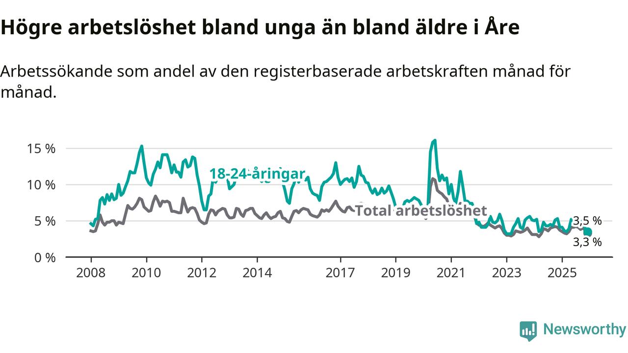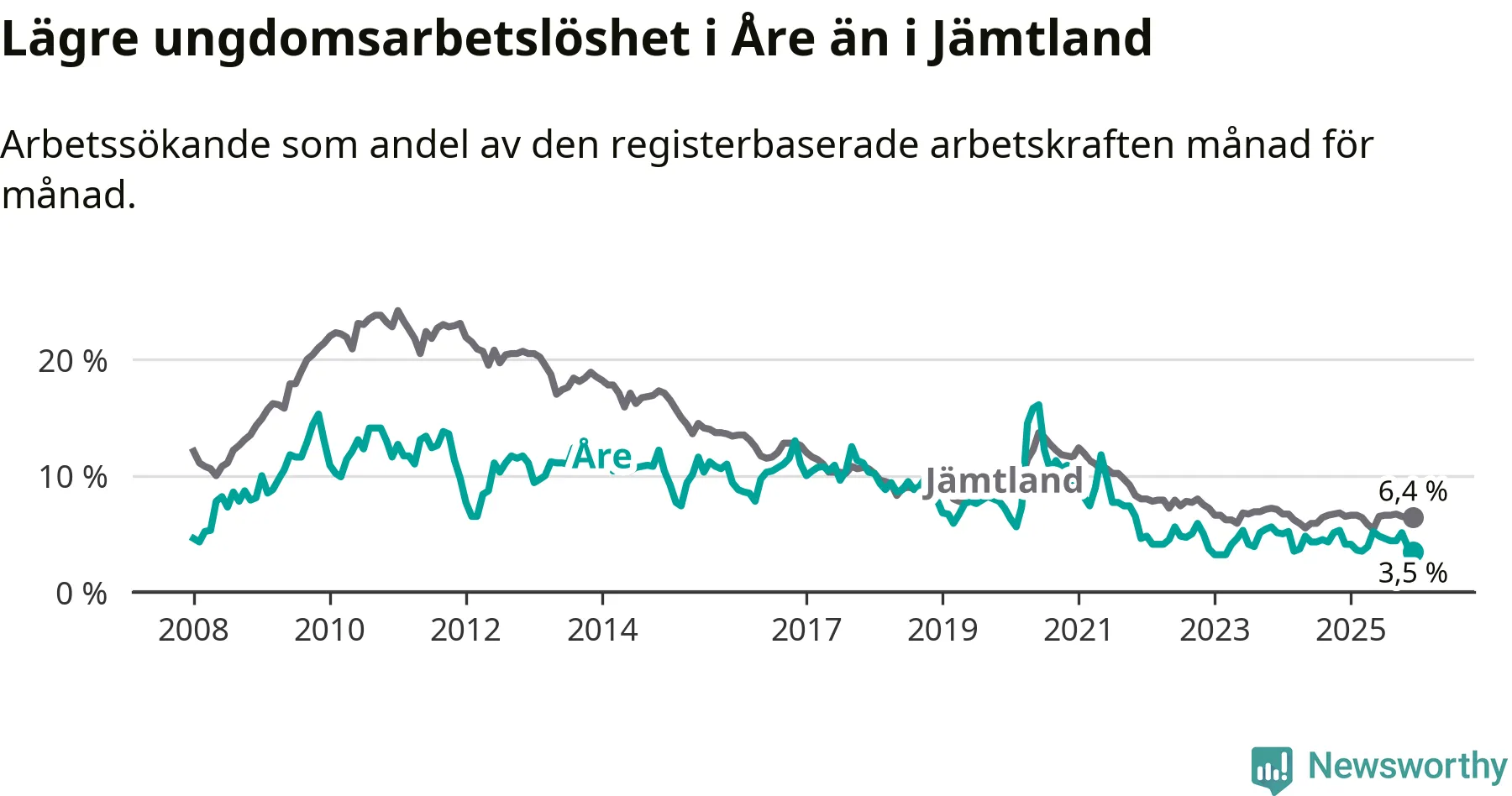 Graf: Arbetslöshet bland unga i Åre kommun och Jämtlands län