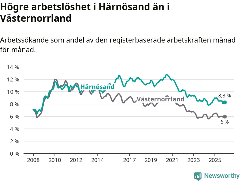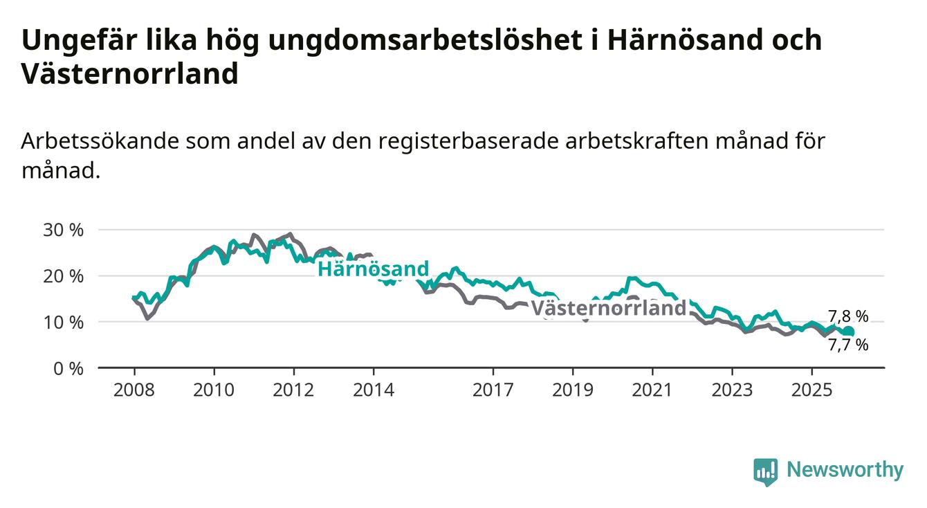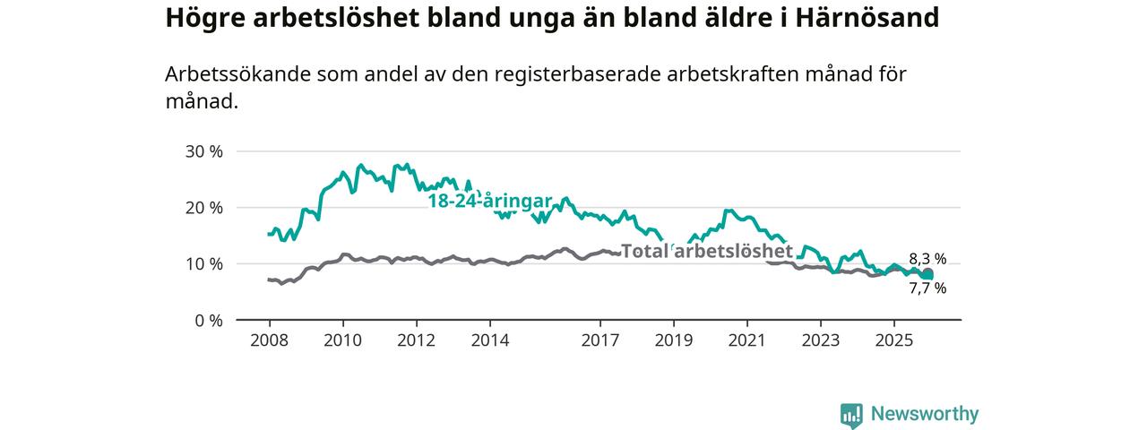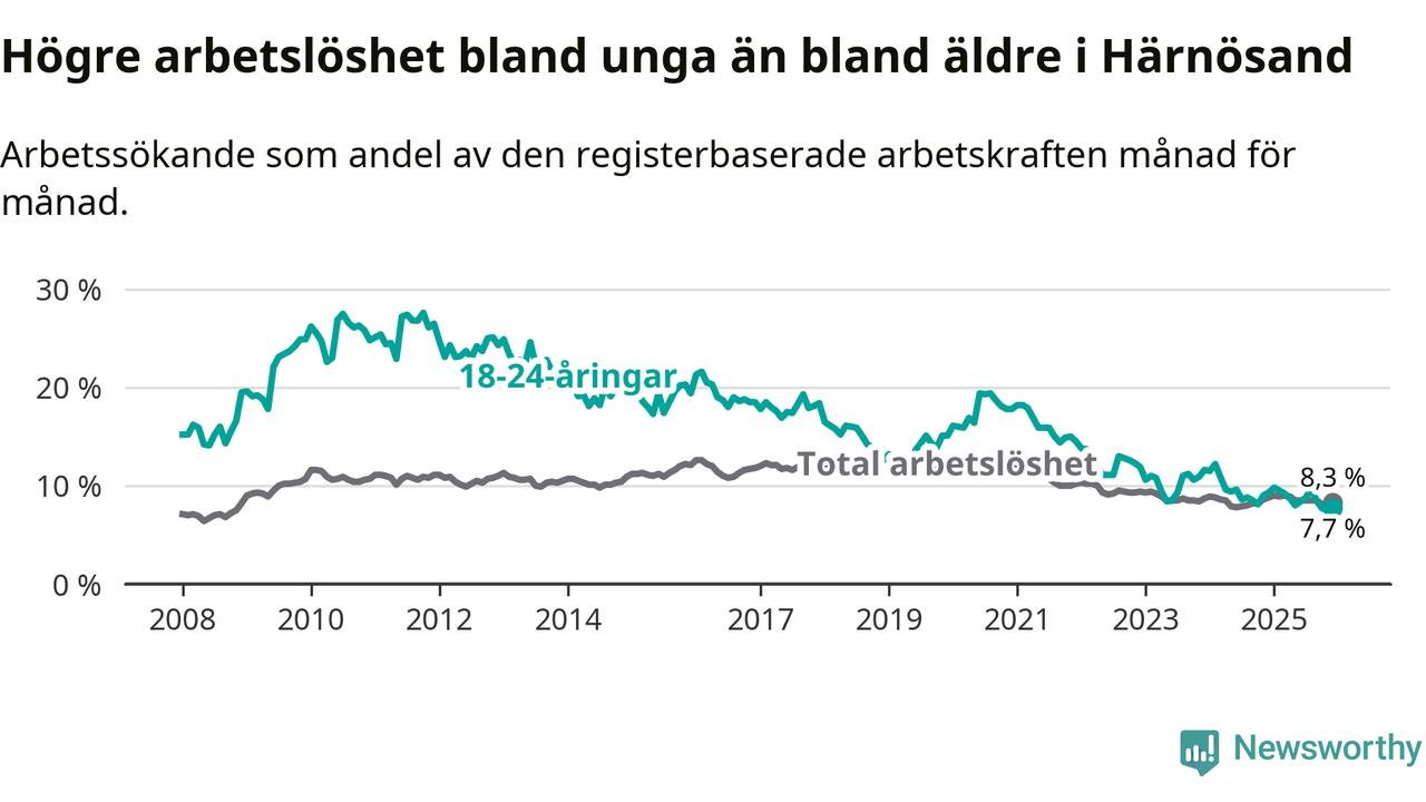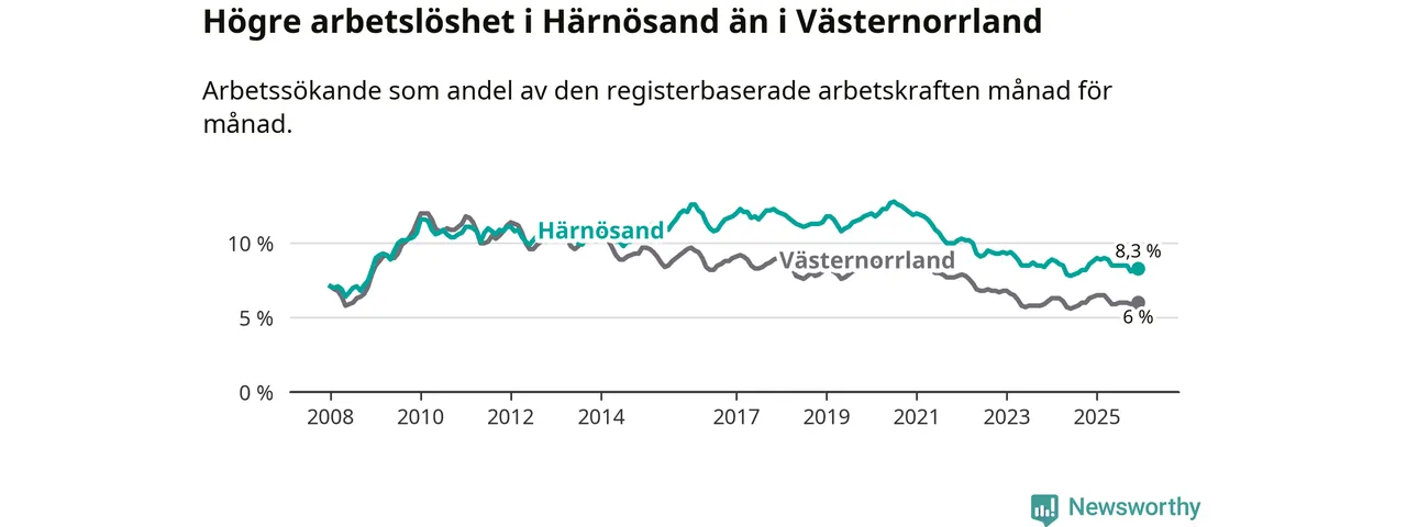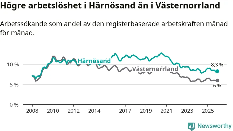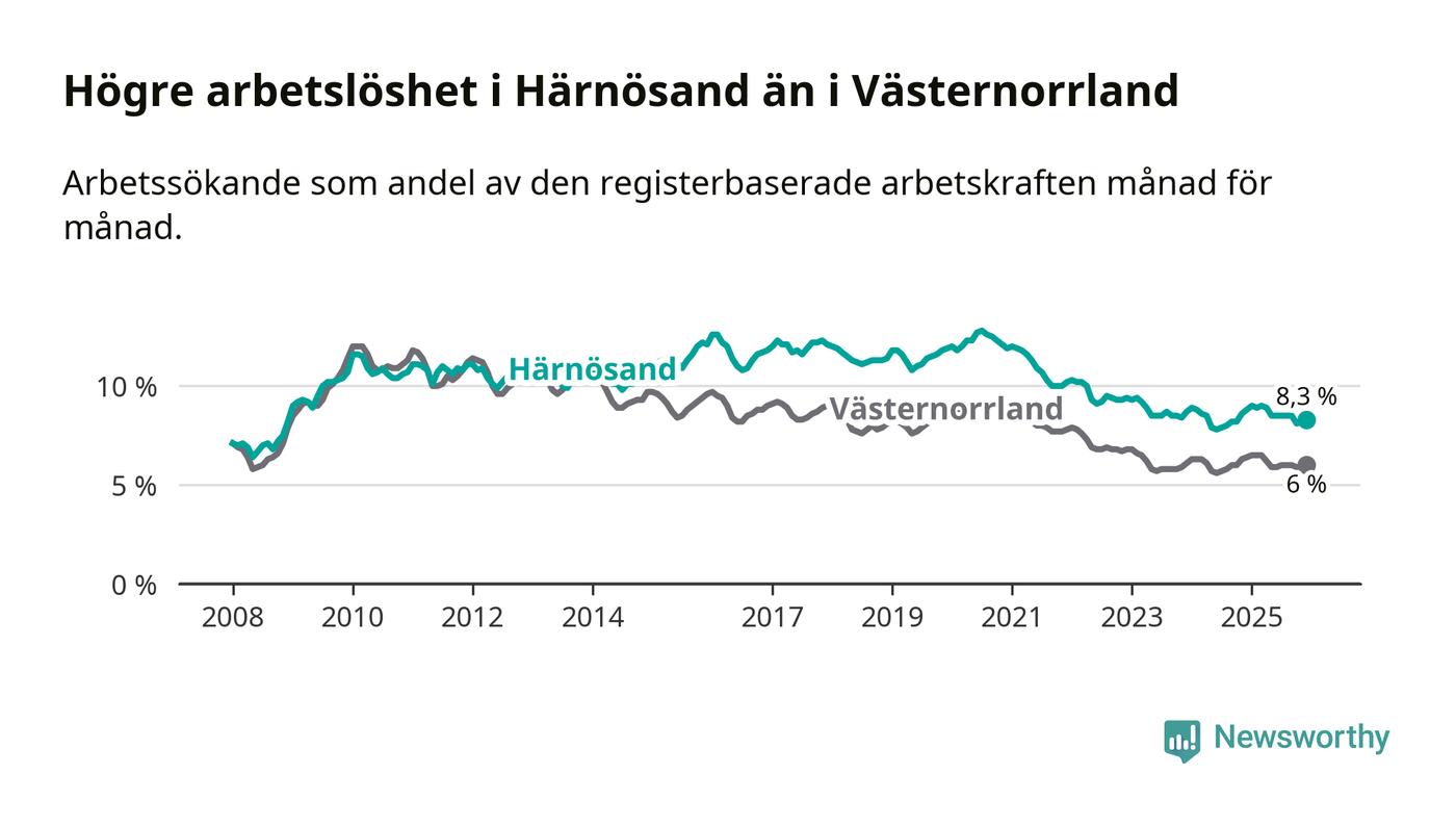 Även om arbetslösheten i Härnösand alltså minskar,