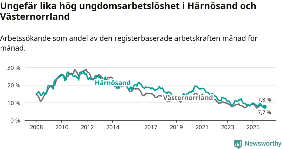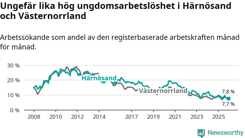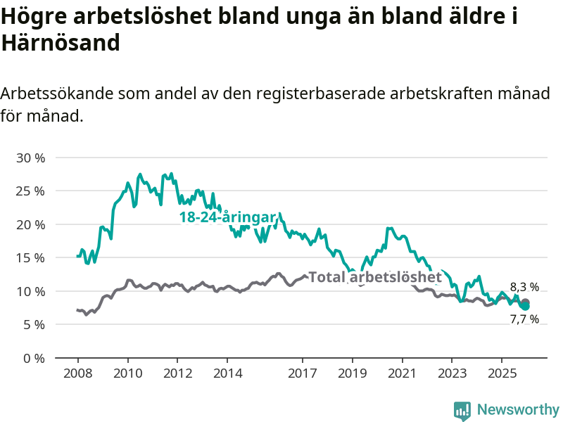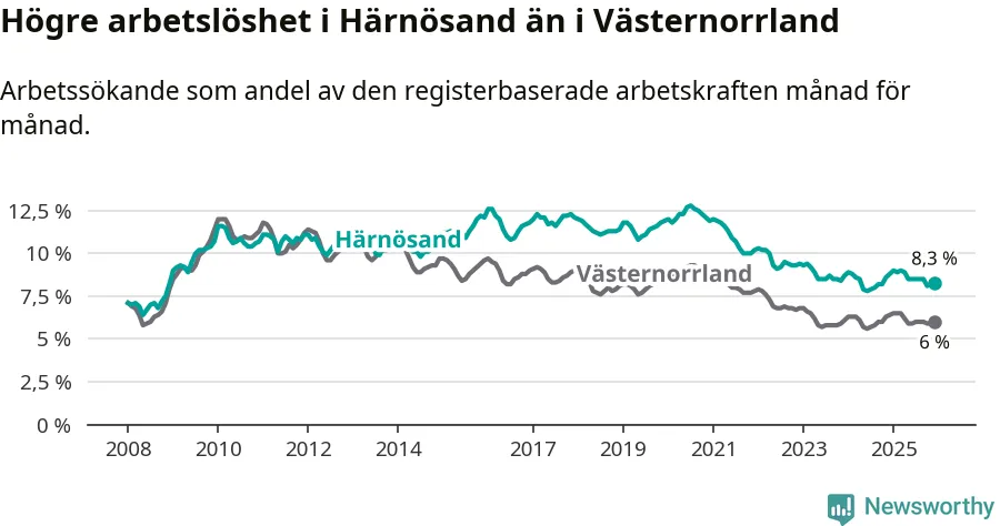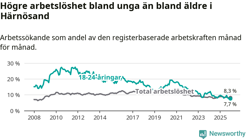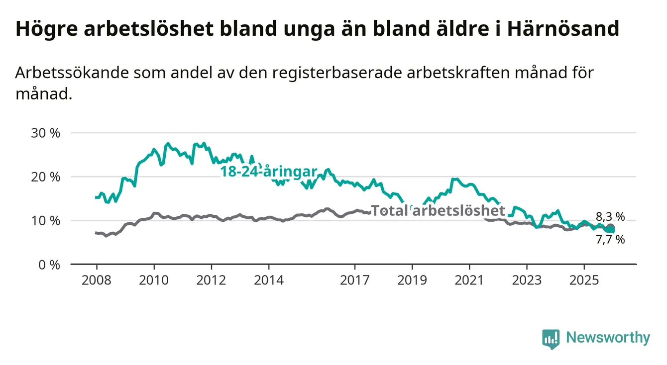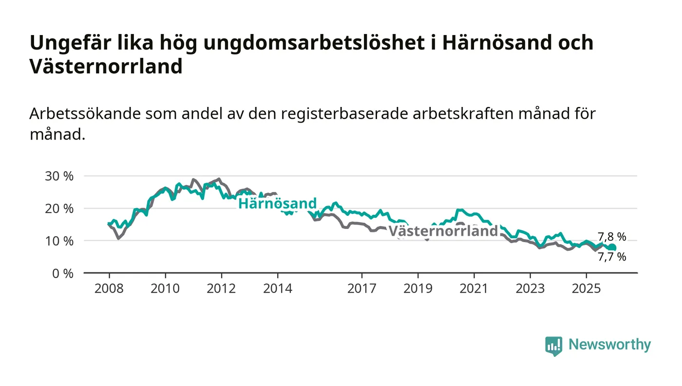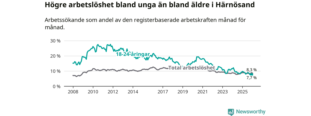 Även om arbetslösheten i Härnösand alltså minskar,