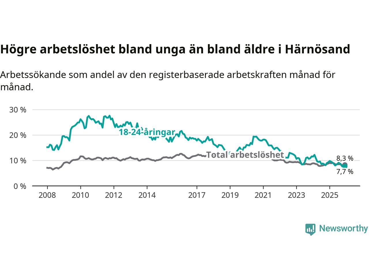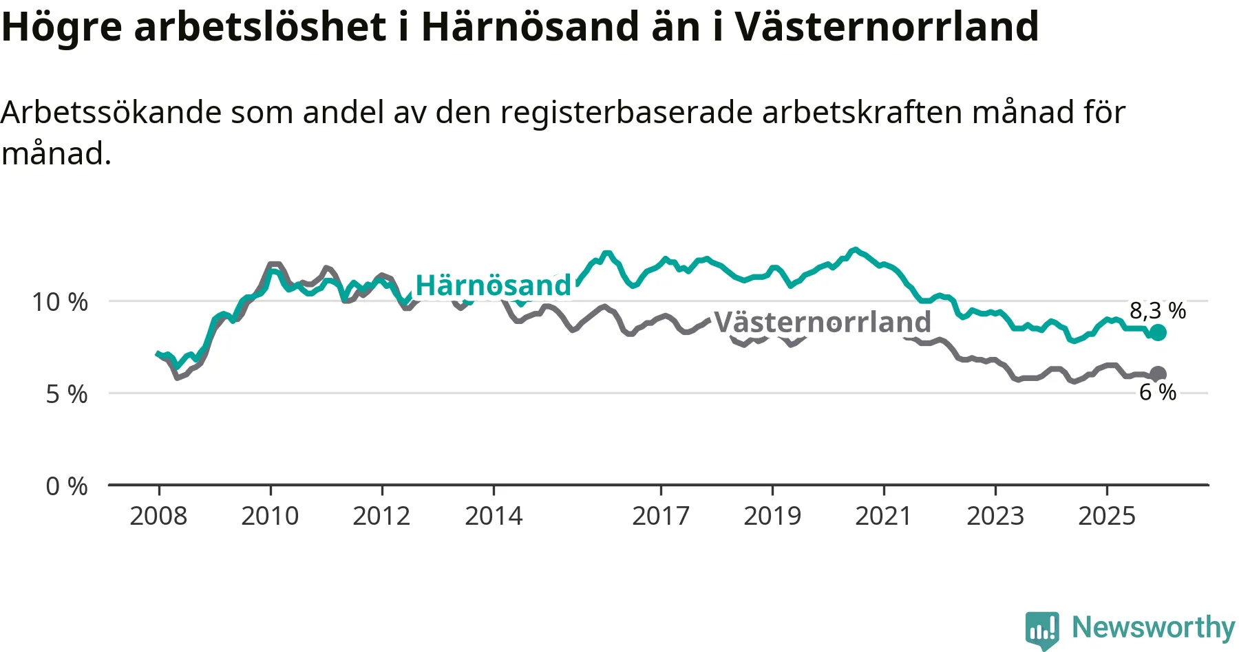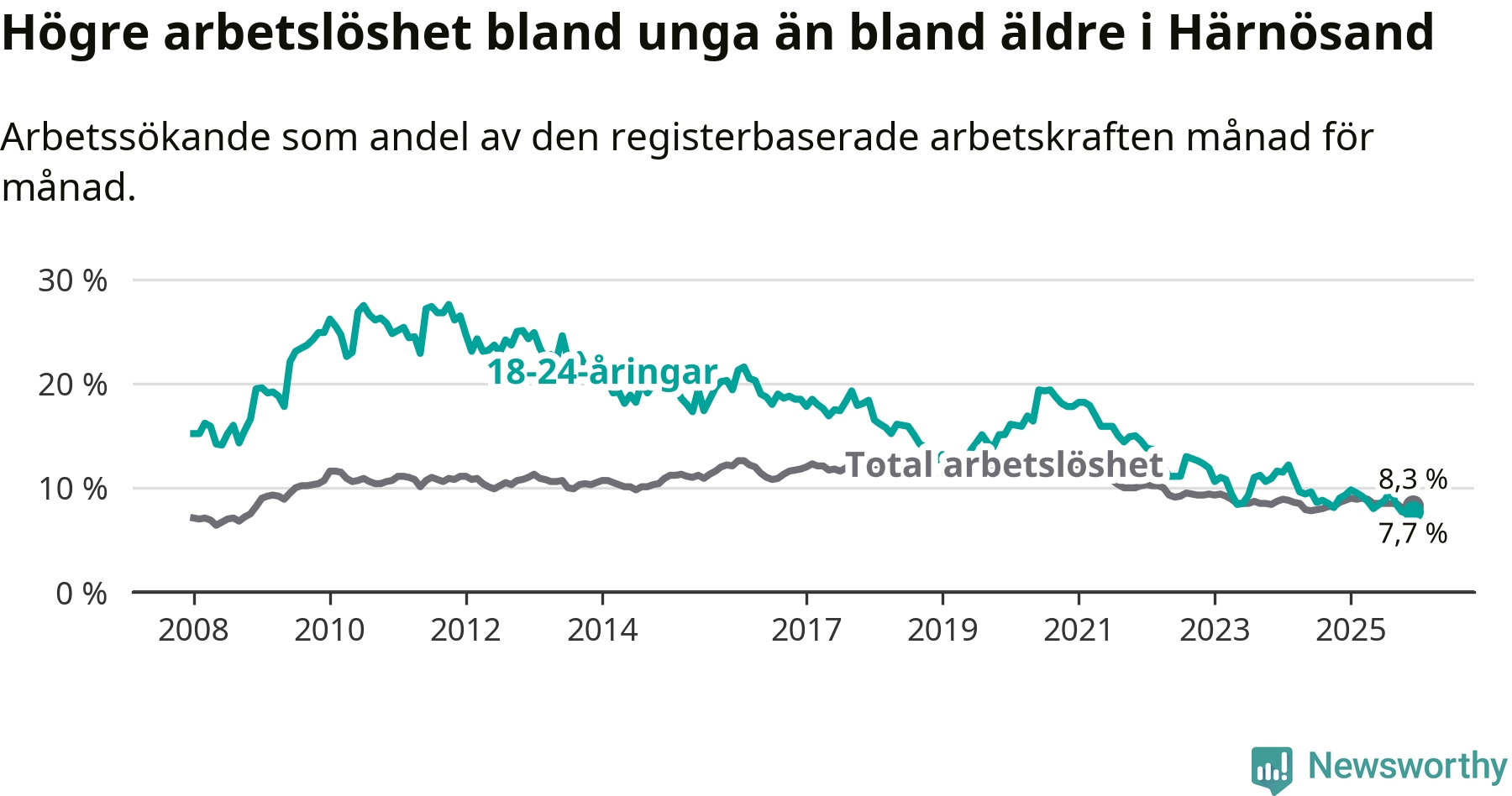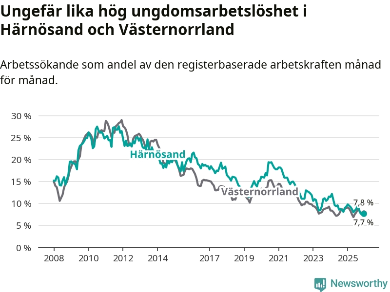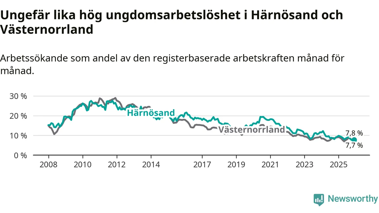 Även om arbetslösheten i Härnösand alltså minskar,