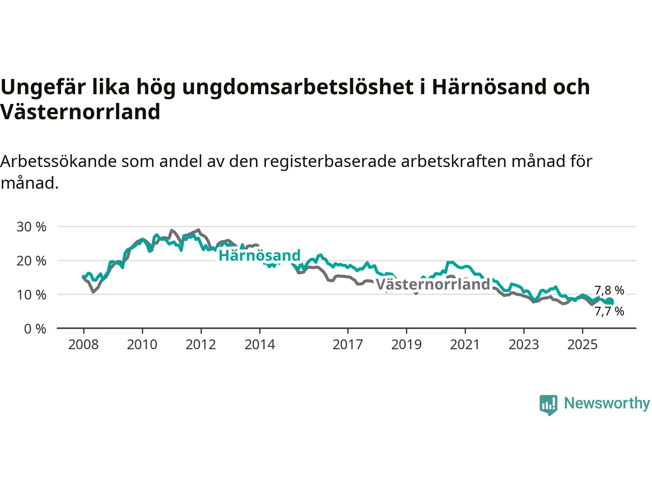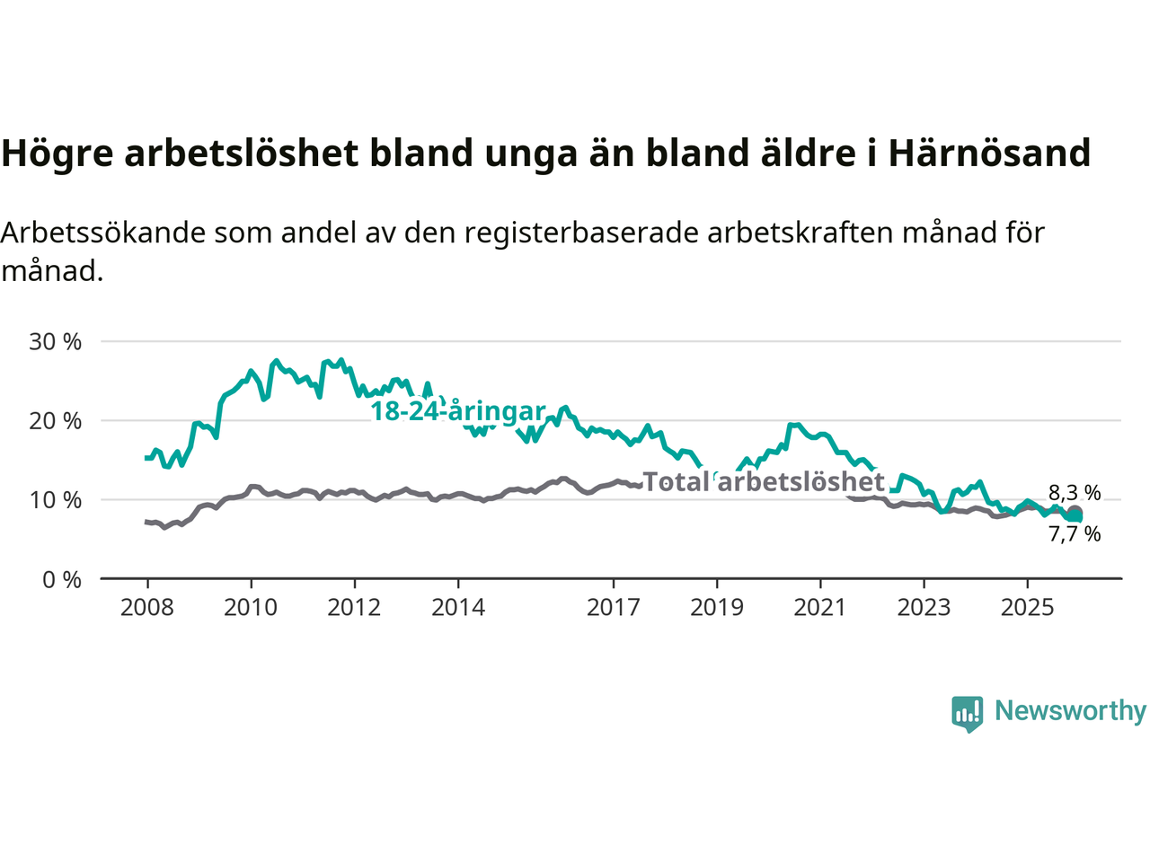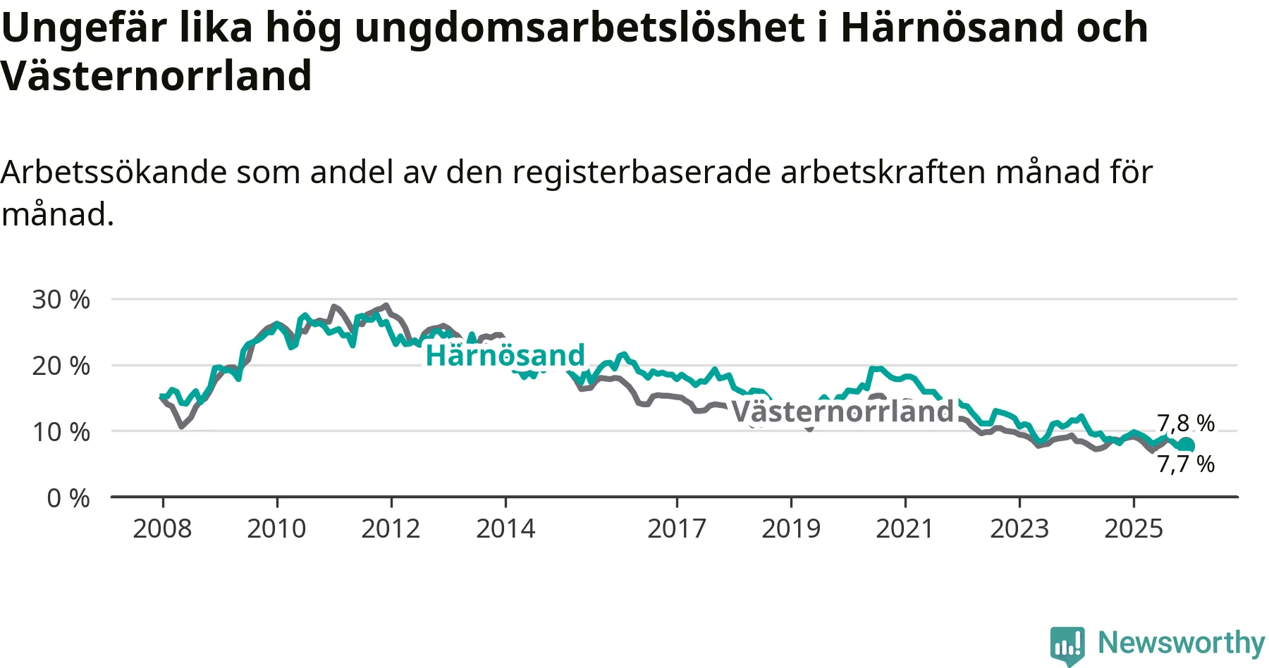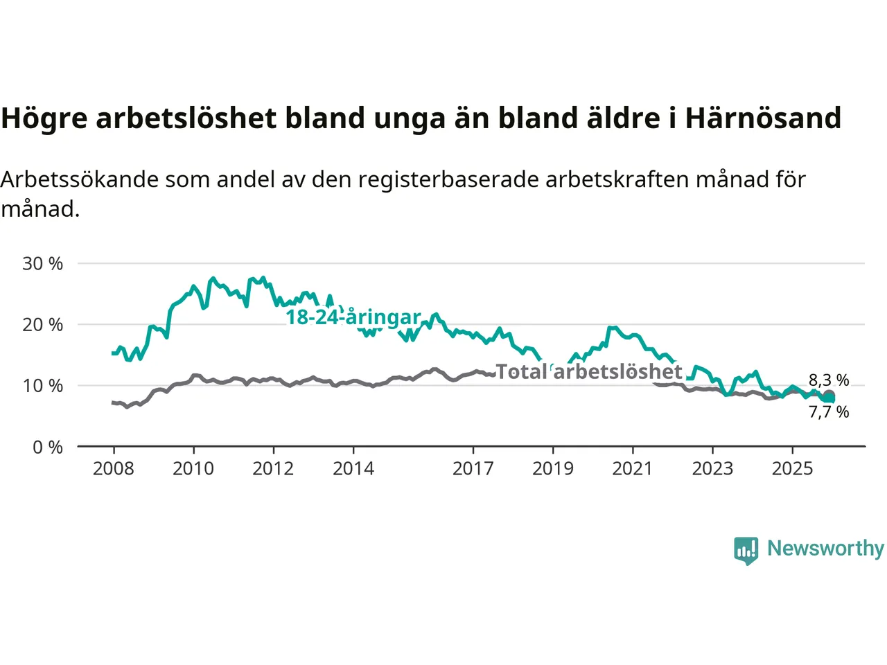 Även om arbetslösheten i Härnösand alltså minskar,