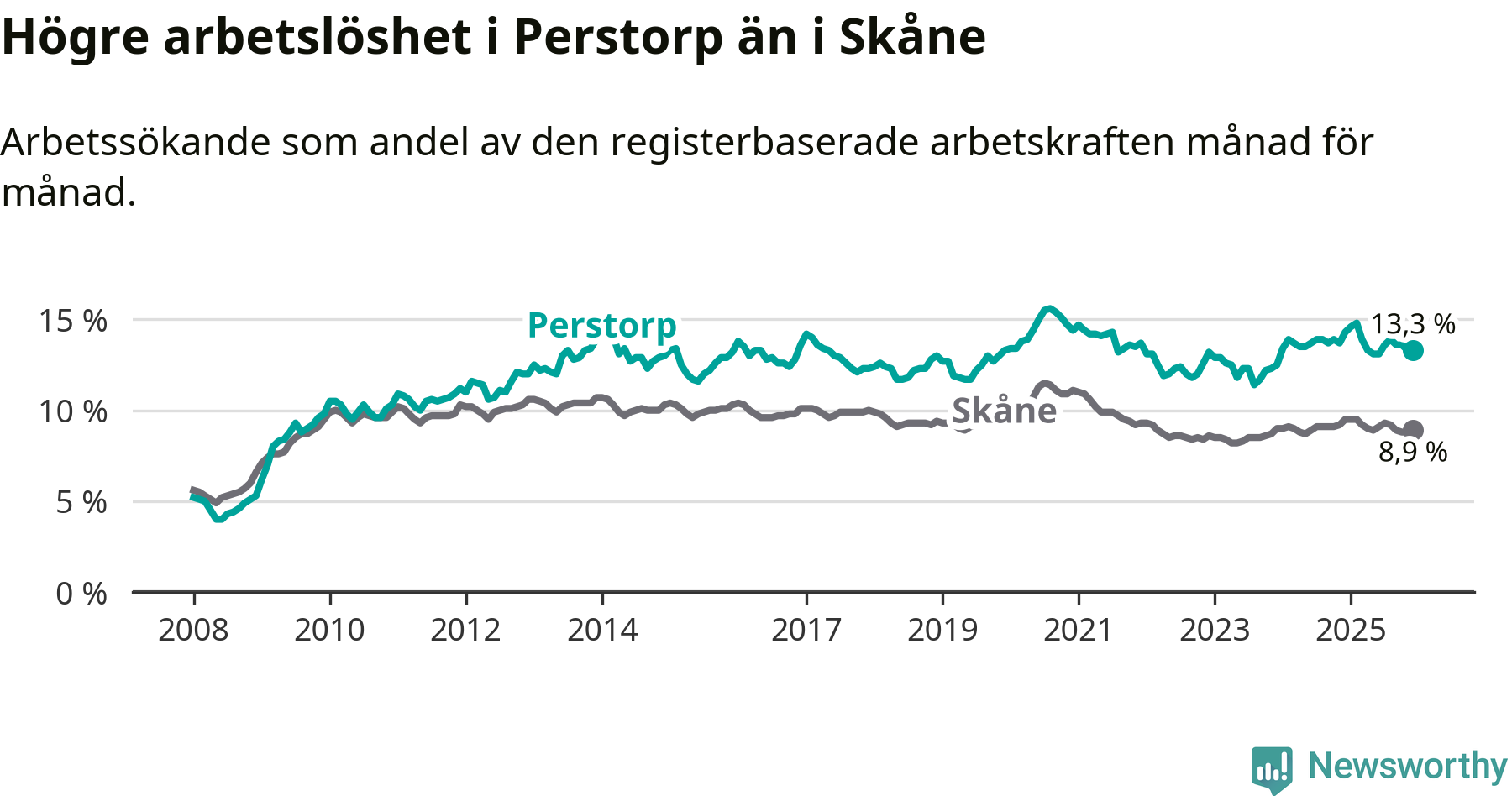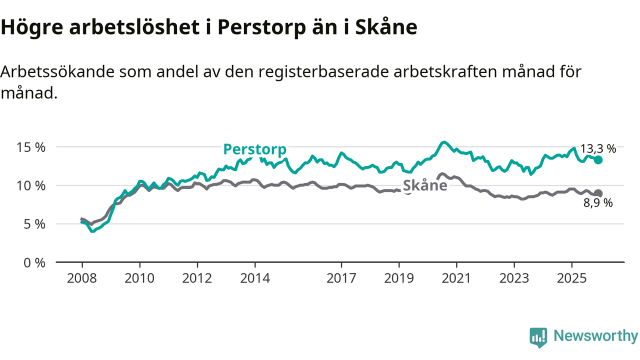 Graf: Arbetslöshet i Perstorps kommun och Skåne län