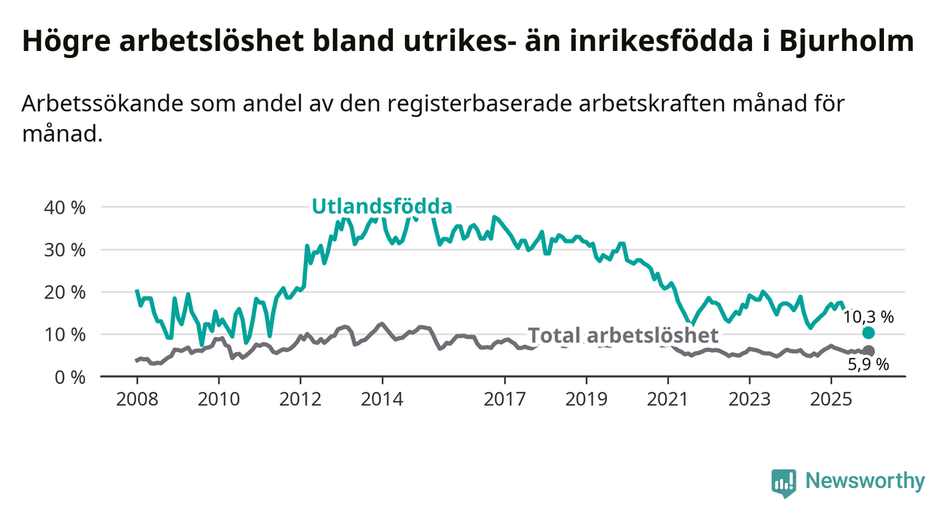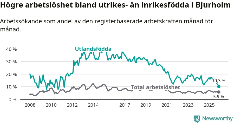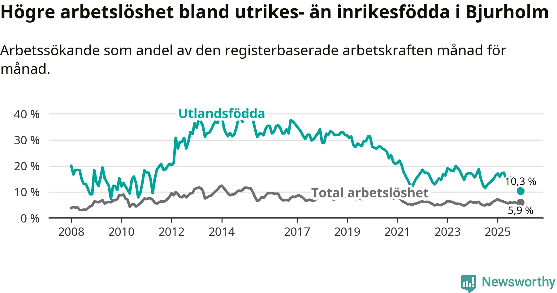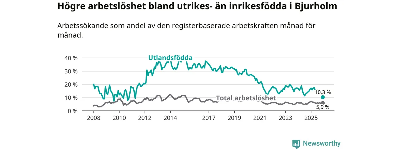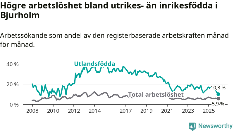 Läs mer om arbetslösheten bland utlandsfödda längre ner i den här texten.