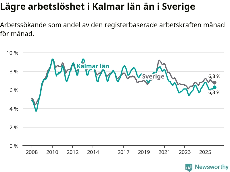 Graf: Arbetslöshet i Kalmar län och Sverige
