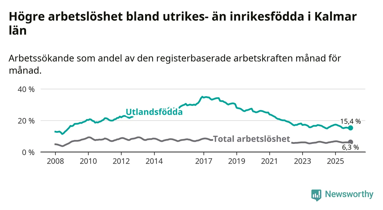 Arbetslöshet bland utlandsfödda i Kalmar län