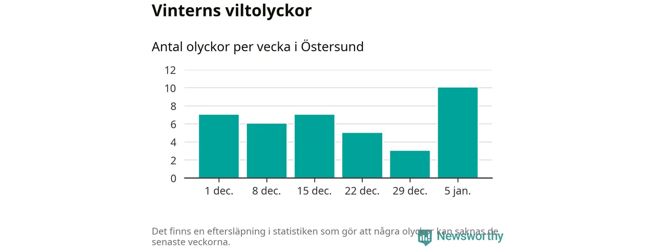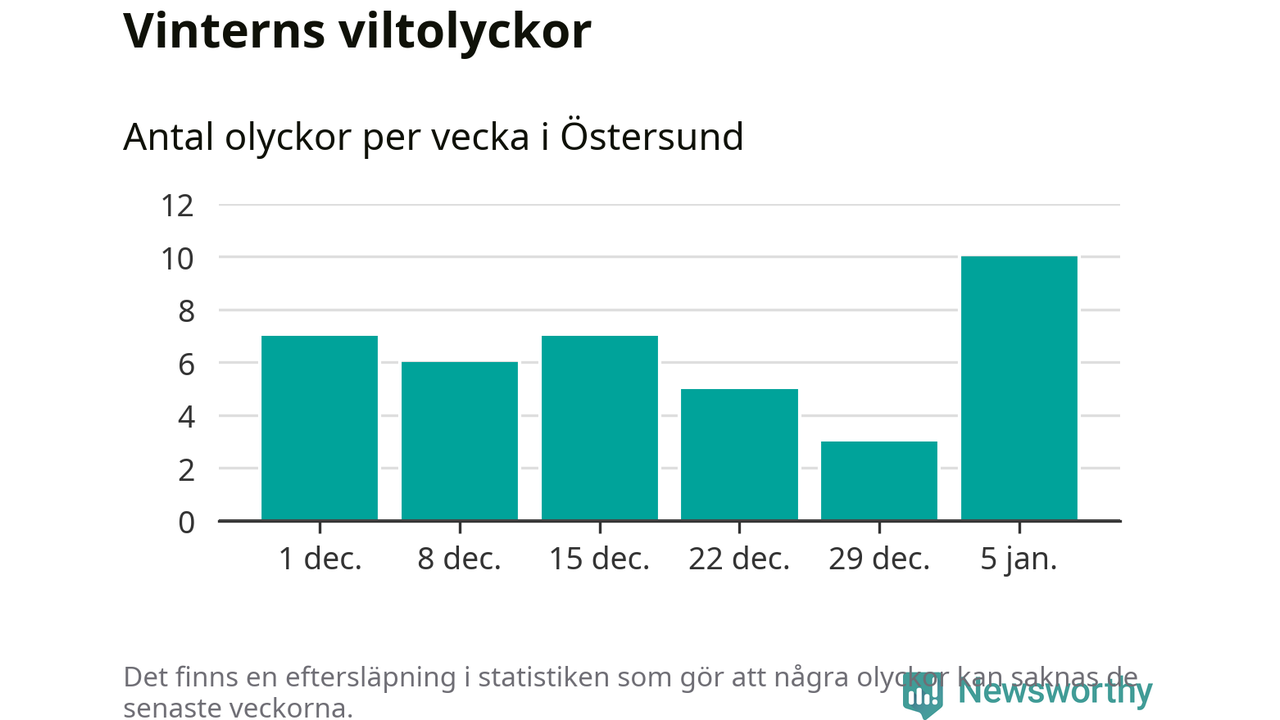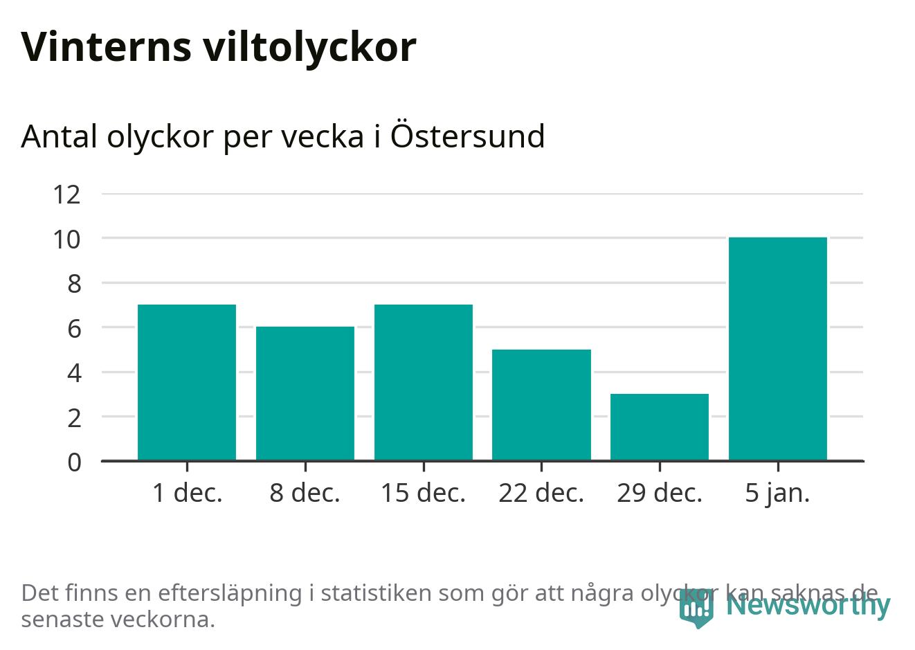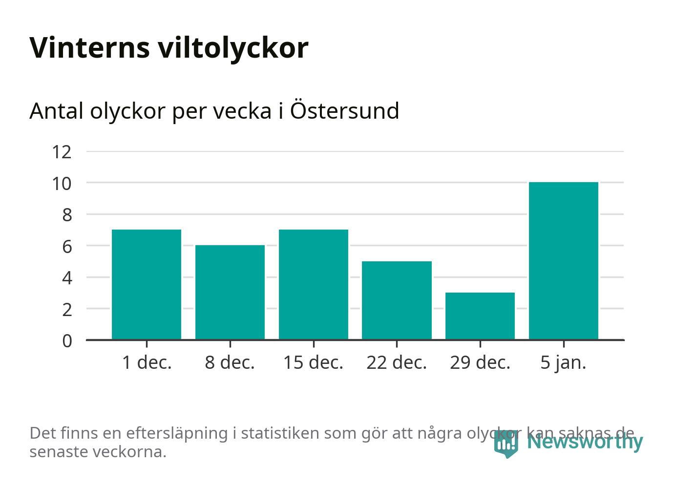 Under vecka 2 rapporterades tio viltolyckor in i Östersunds kommun. Det är det största antalet på en vecka den här vintern.