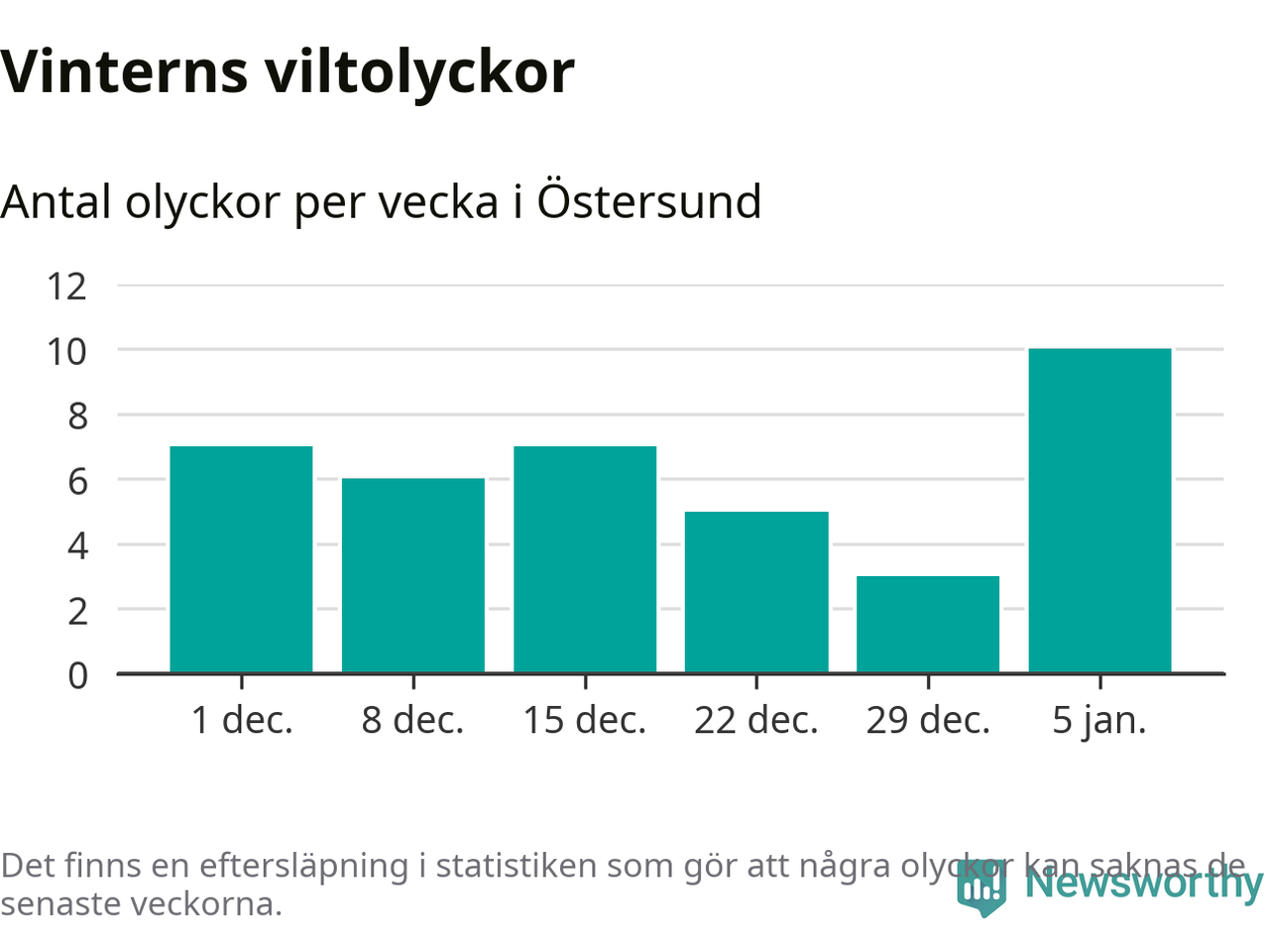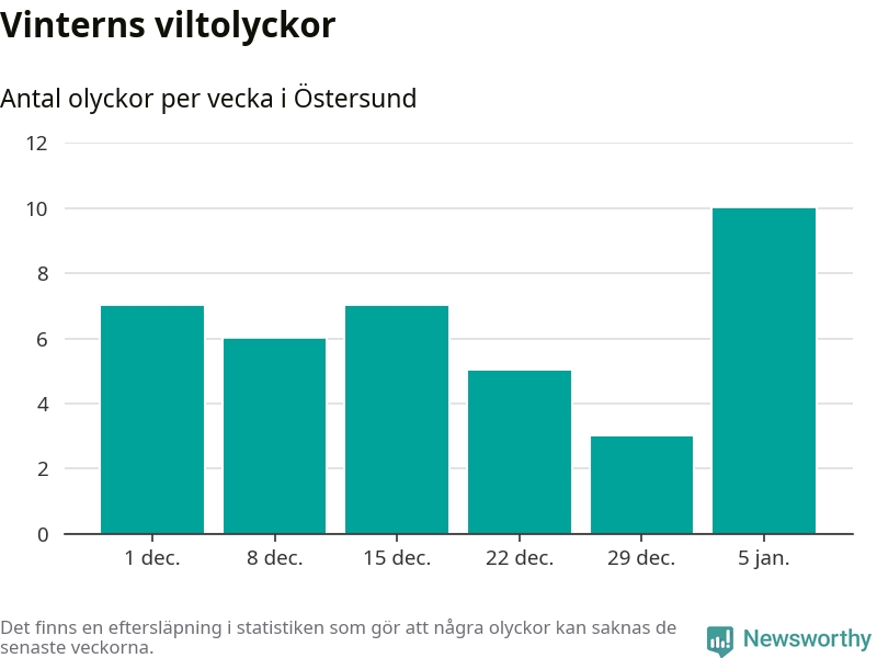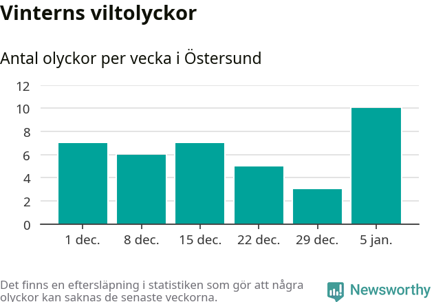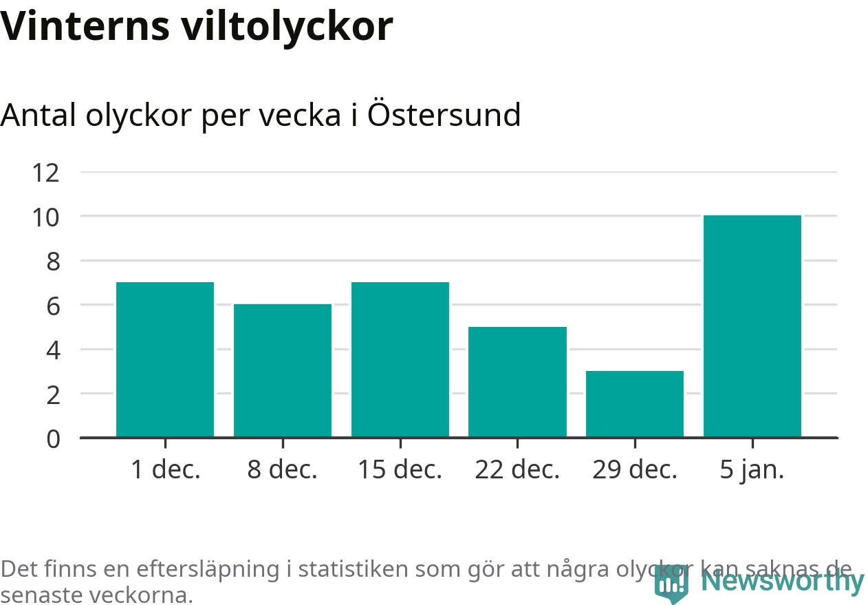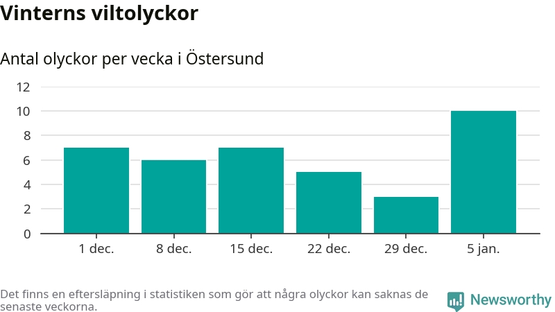 Under vecka 2 rapporterades tio viltolyckor in i Östersunds kommun. Det är det största antalet på en vecka den här vintern.