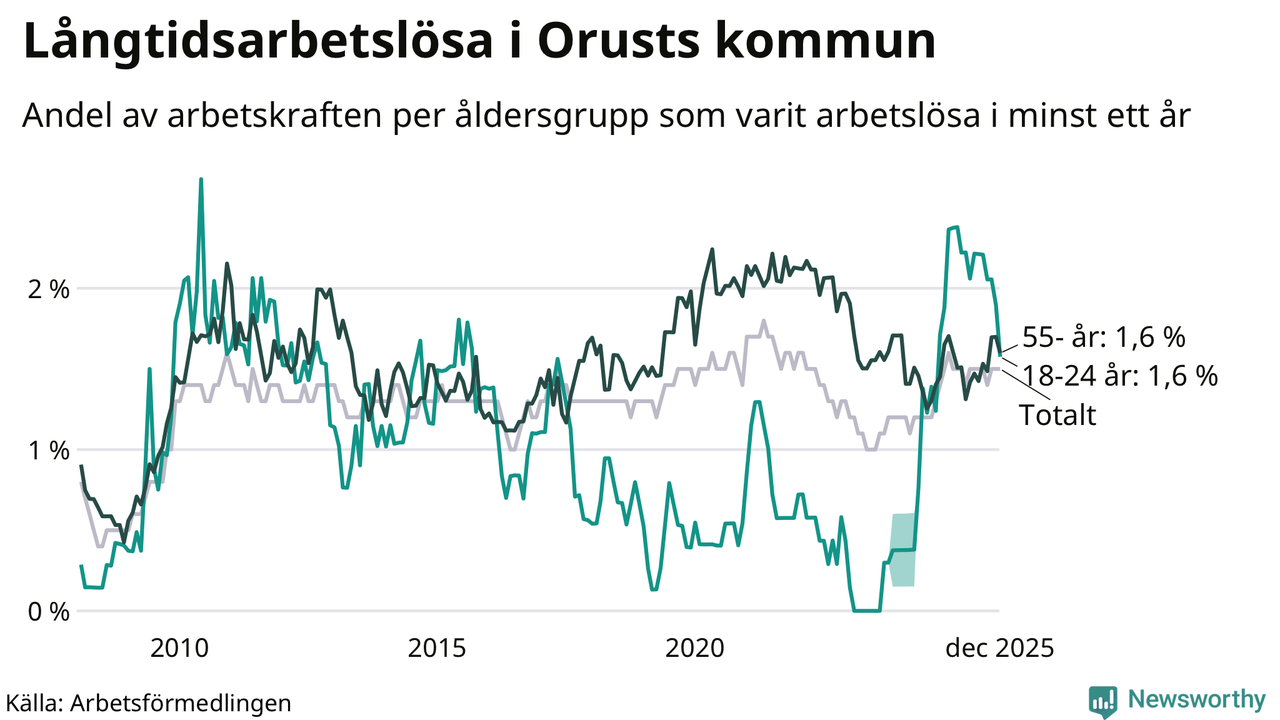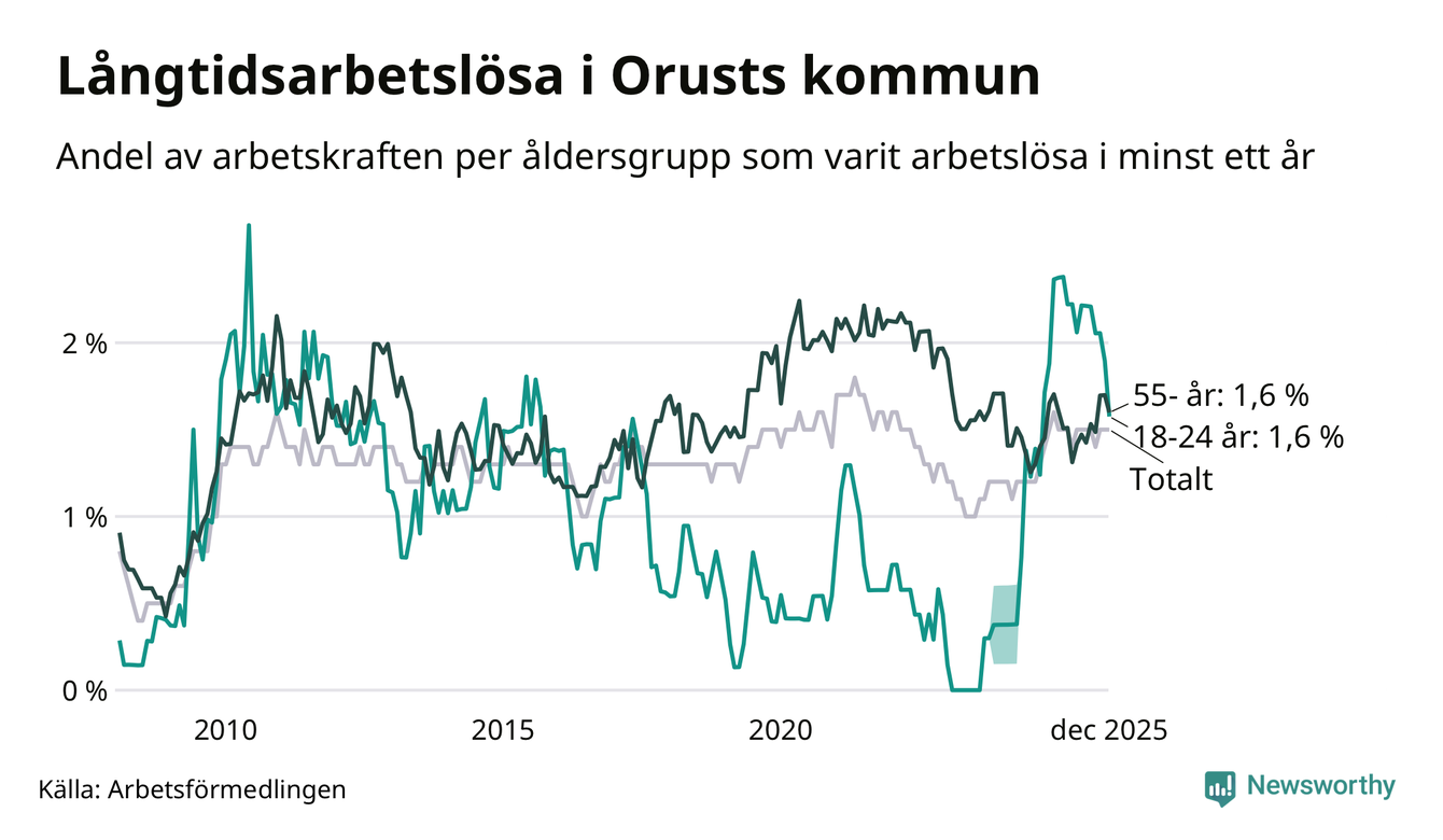 Långtidsarbetslöshet på Orust i december 2025