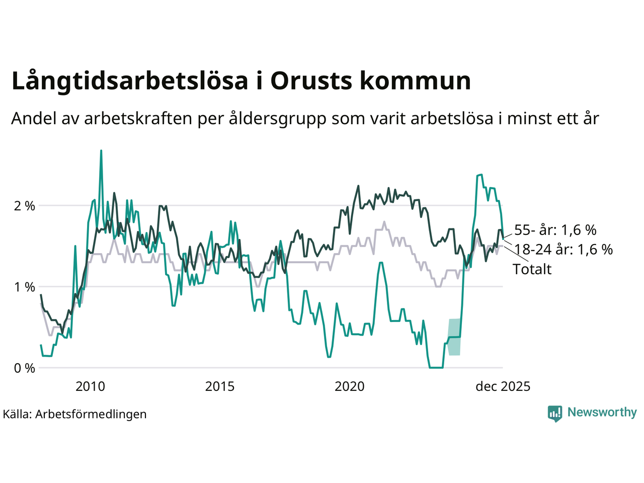 Andel arbetslösa i minst två år0,7 %1,3 %1,5 %