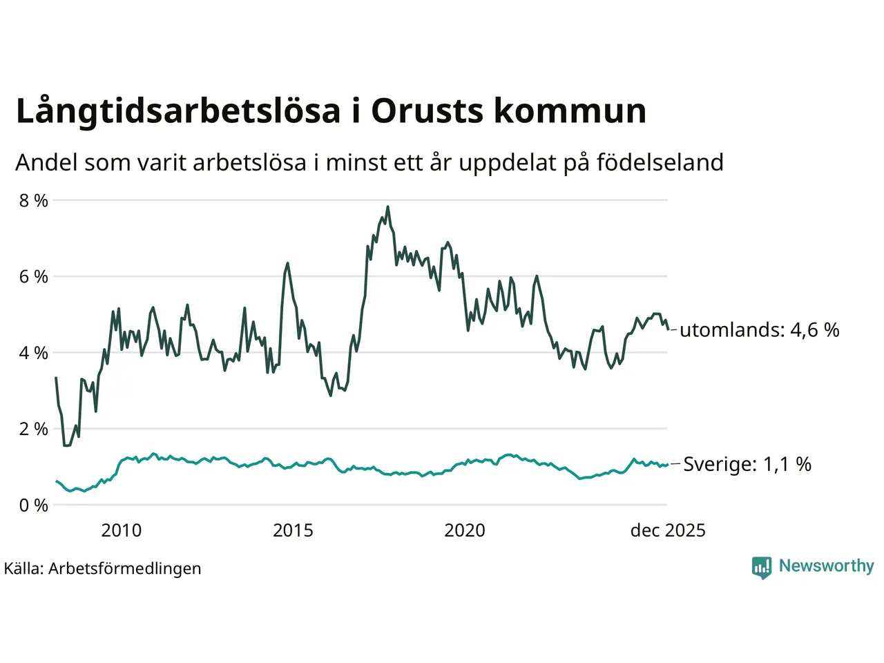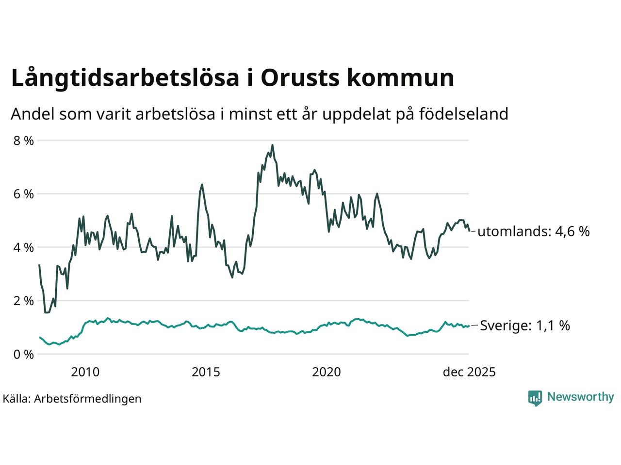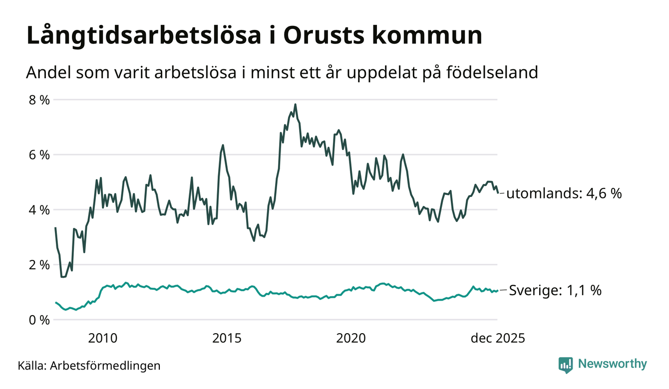 Graf: Andel arbetslösa uppdelat på födelseland på Orust