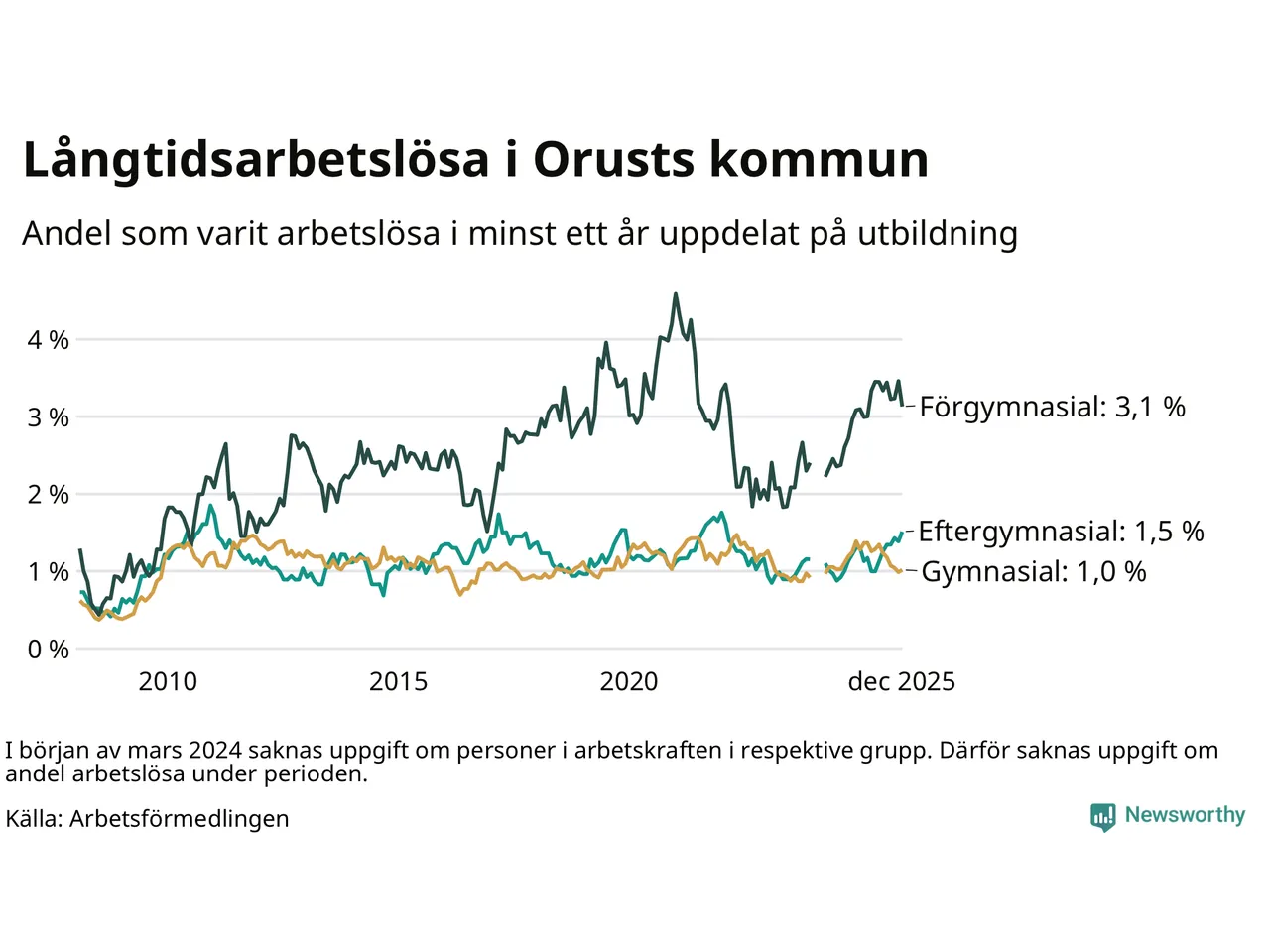 Andel arbetslösa i minst ett år1,5 %2,5 %2,9 %