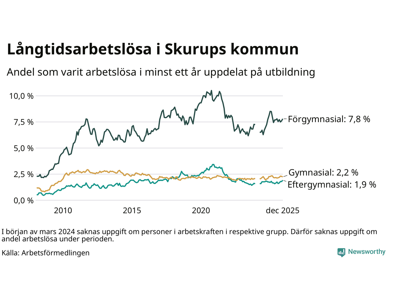 | Andel arbetslösa i minst ett år | 2,9 % | 4,0 % | 2,9 % |