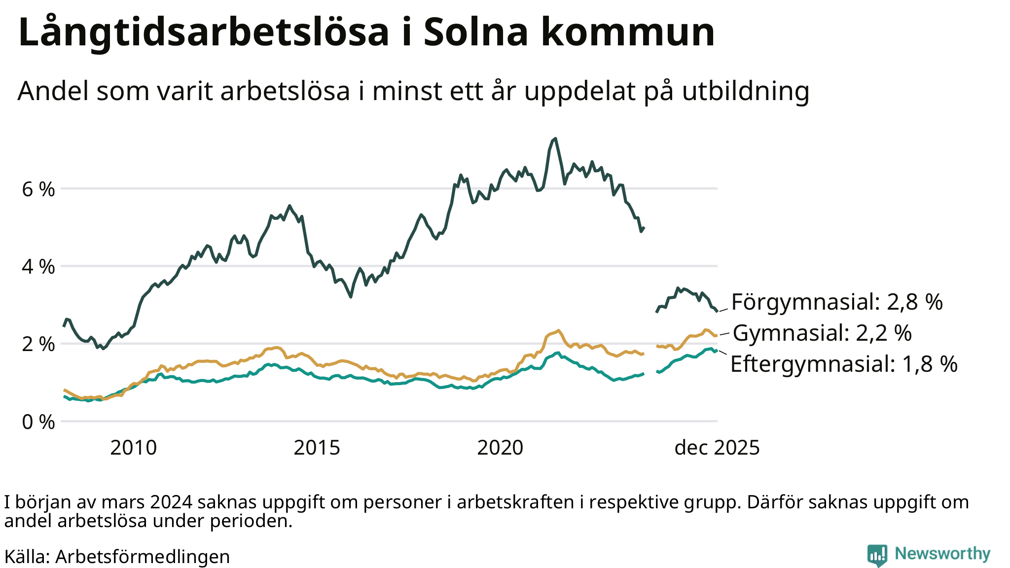 | Andel arbetslösa i minst ett år | 2,0 % | 2,9 % | 2,9 % |
