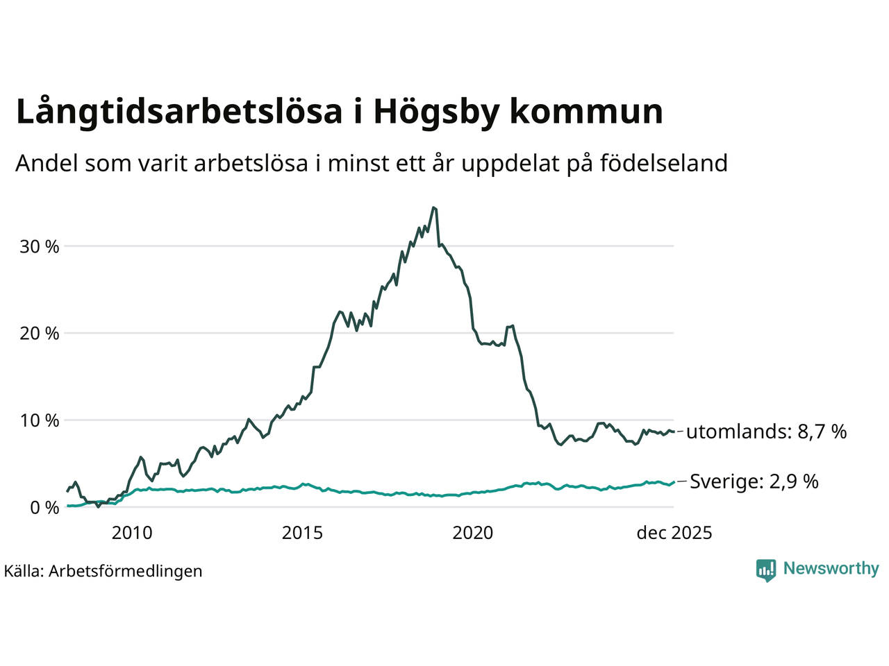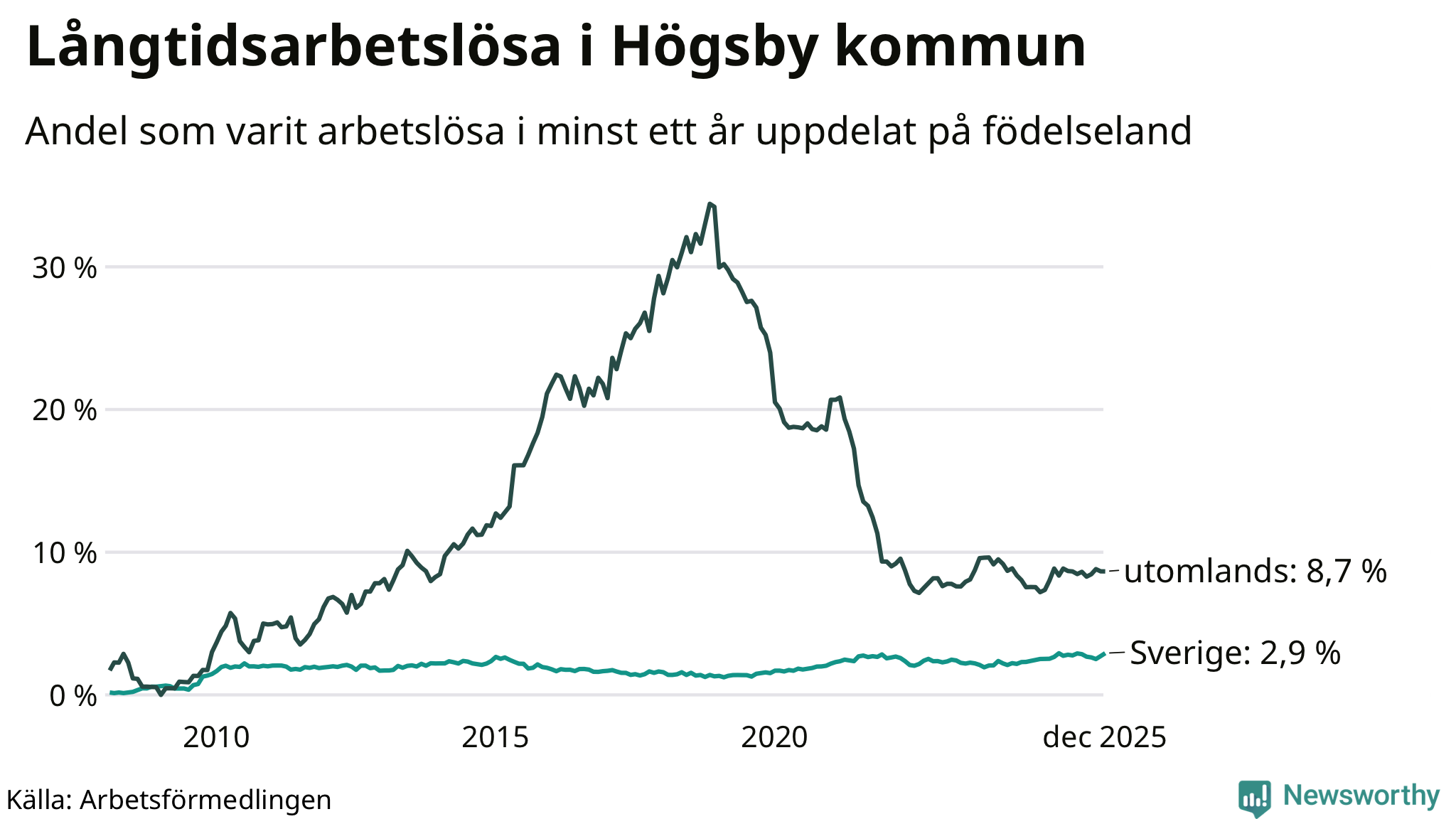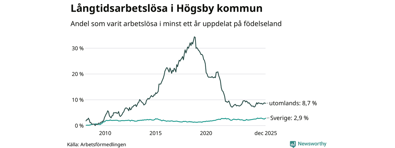 Långtidsarbetslöshet i Högsby i december 2025