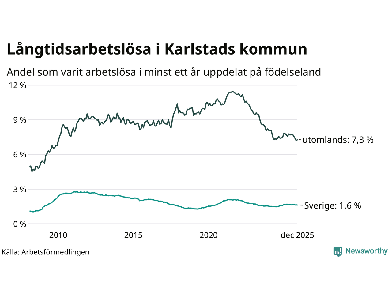 Långtidsarbetslöshet i Karlstad i december 2025