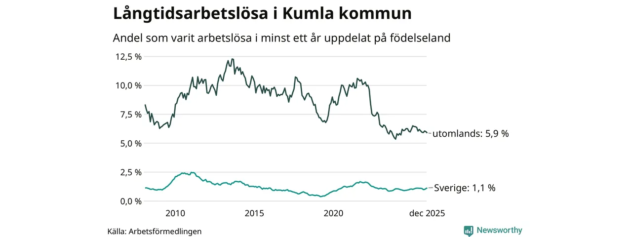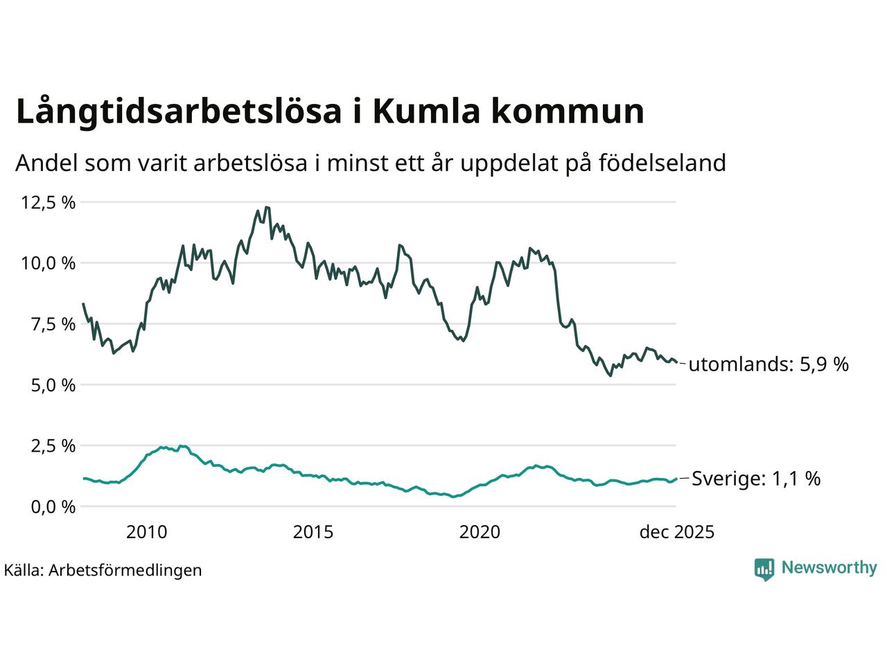 Graf: Andel arbetslösa uppdelat på födelseland i Kumla