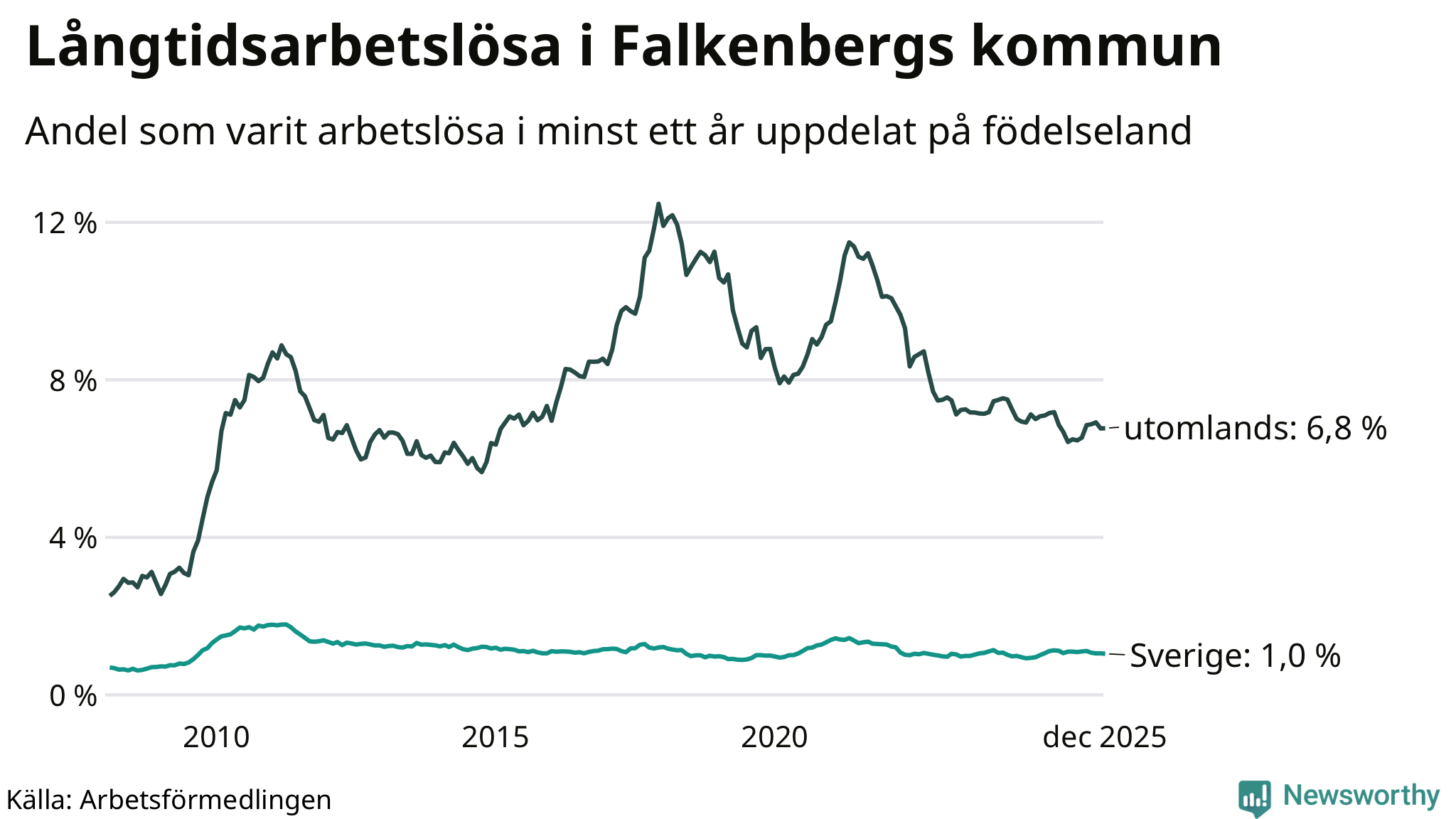 Långtidsarbetslöshet i Falkenberg i december 2025