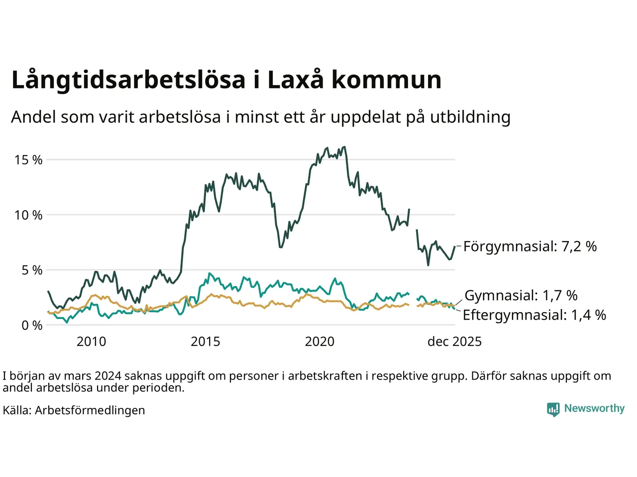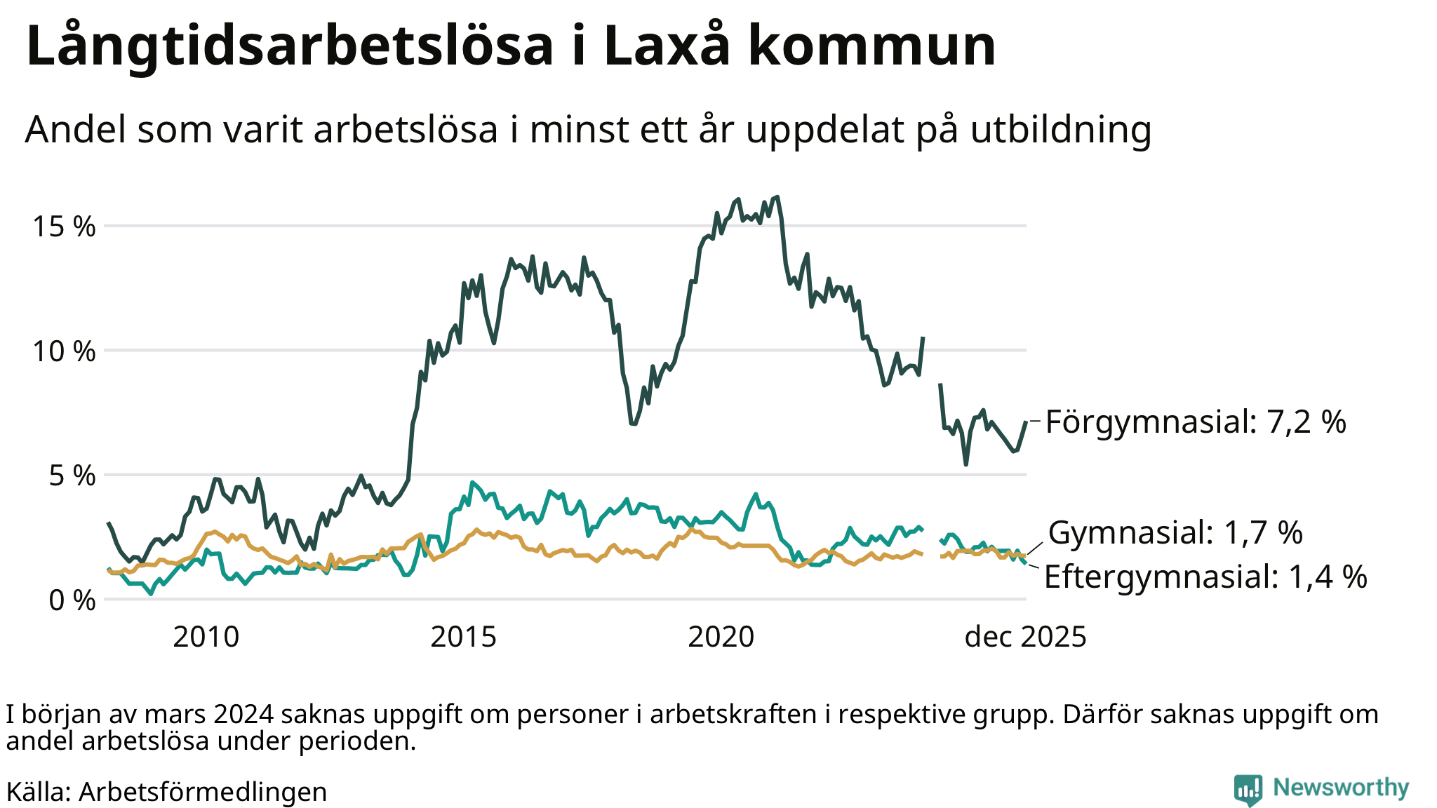 | Andel arbetslösa i minst två år | 1,0 % | 1,6 % | 1,5 % |