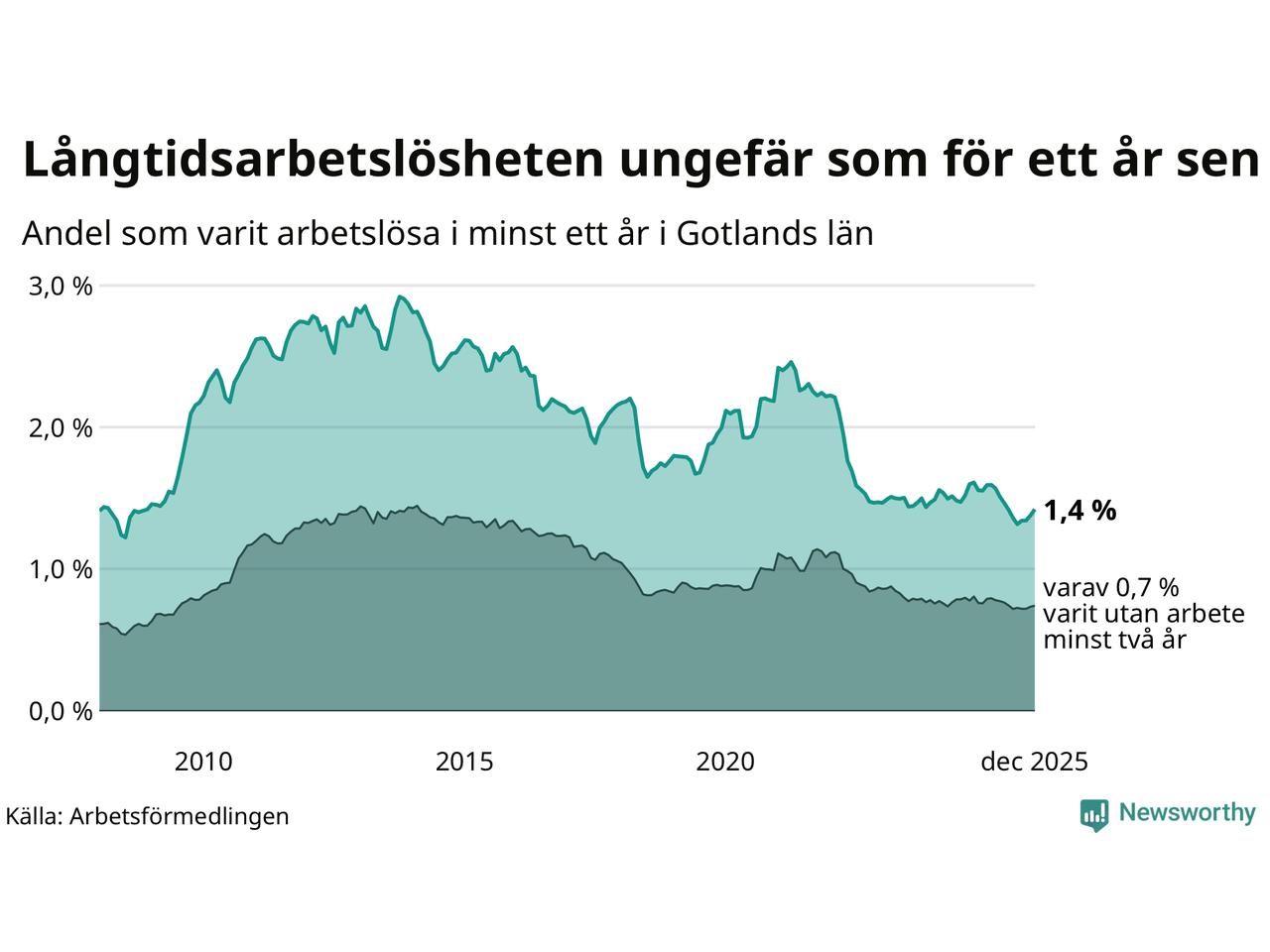 | Andel arbetslösa i minst ett år | 1,4 % | 2,9 % |
