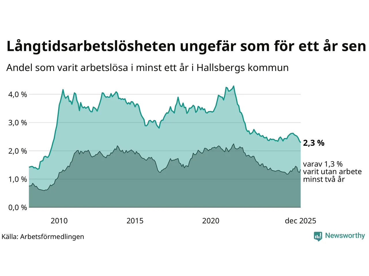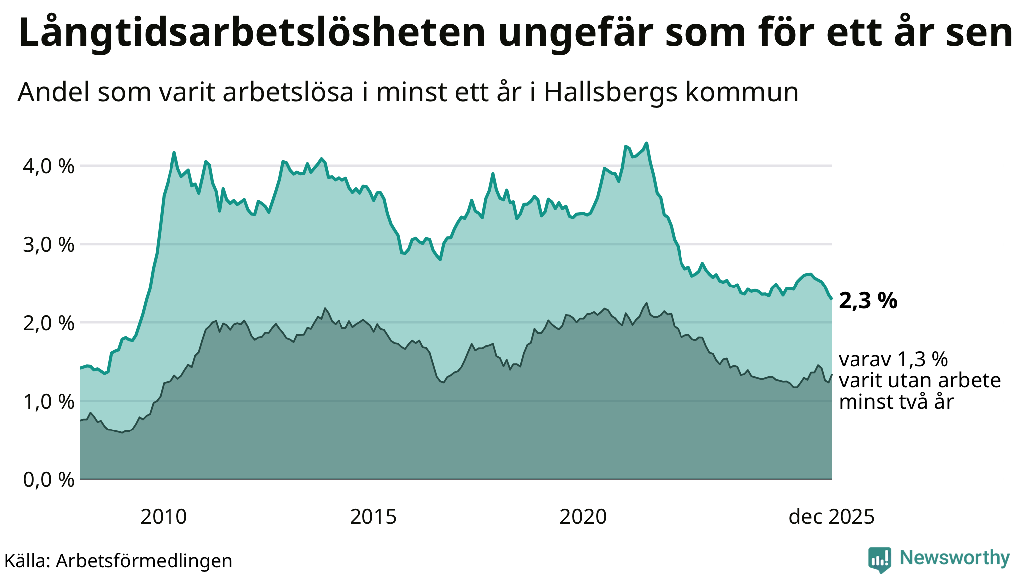 | Andel arbetslösa i minst två år | 1,3 % | 1,6 % | 1,5 % |