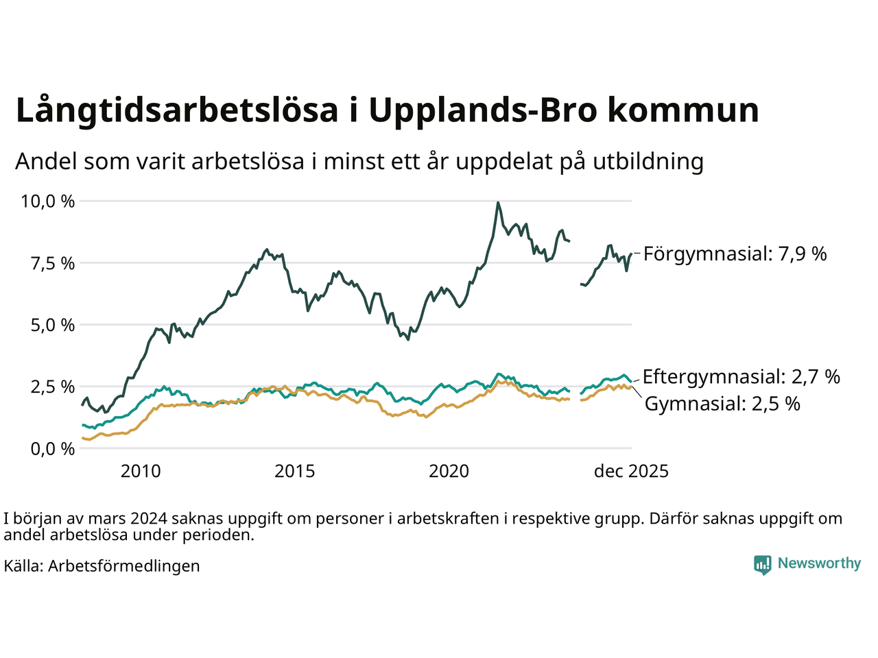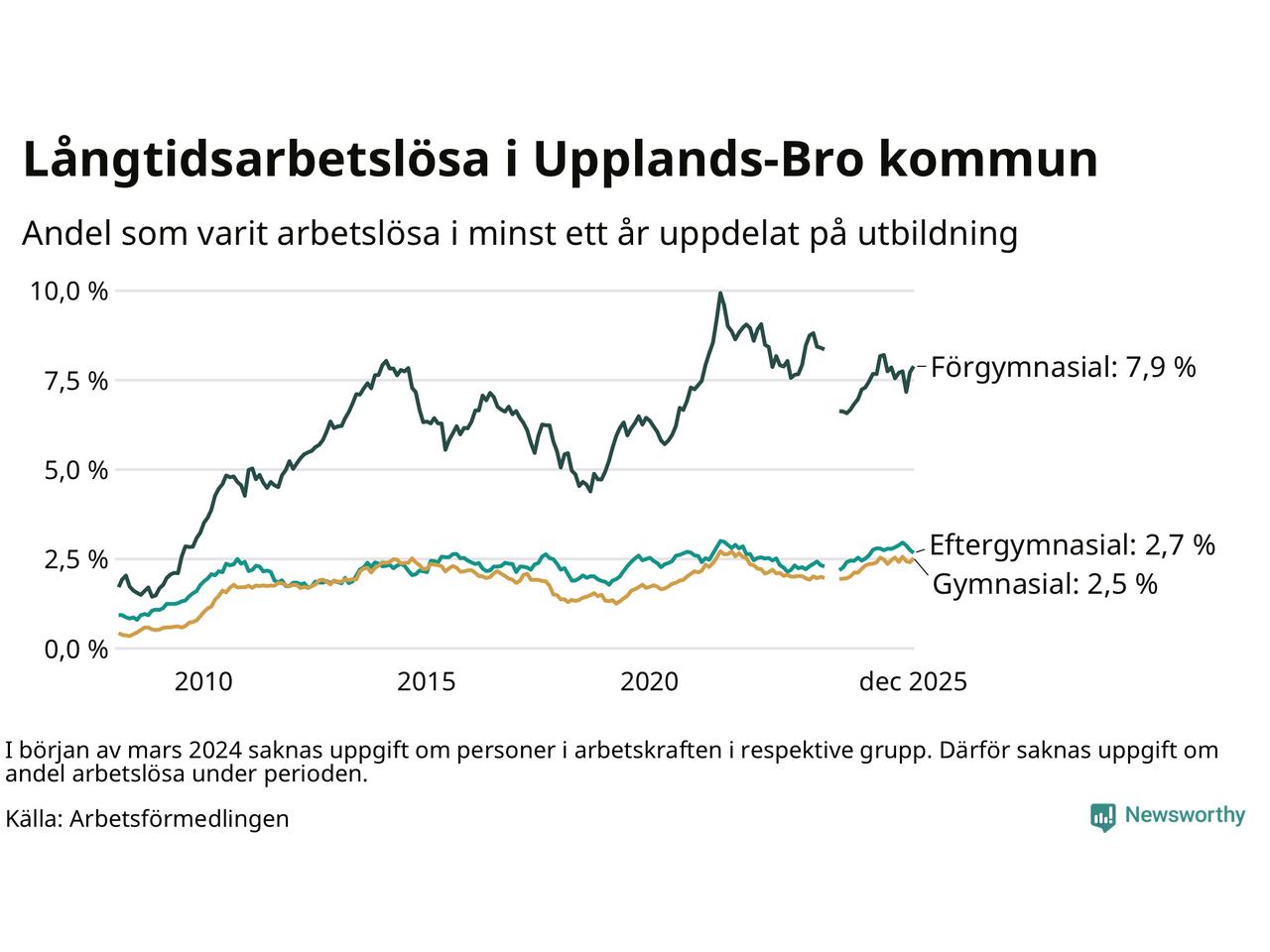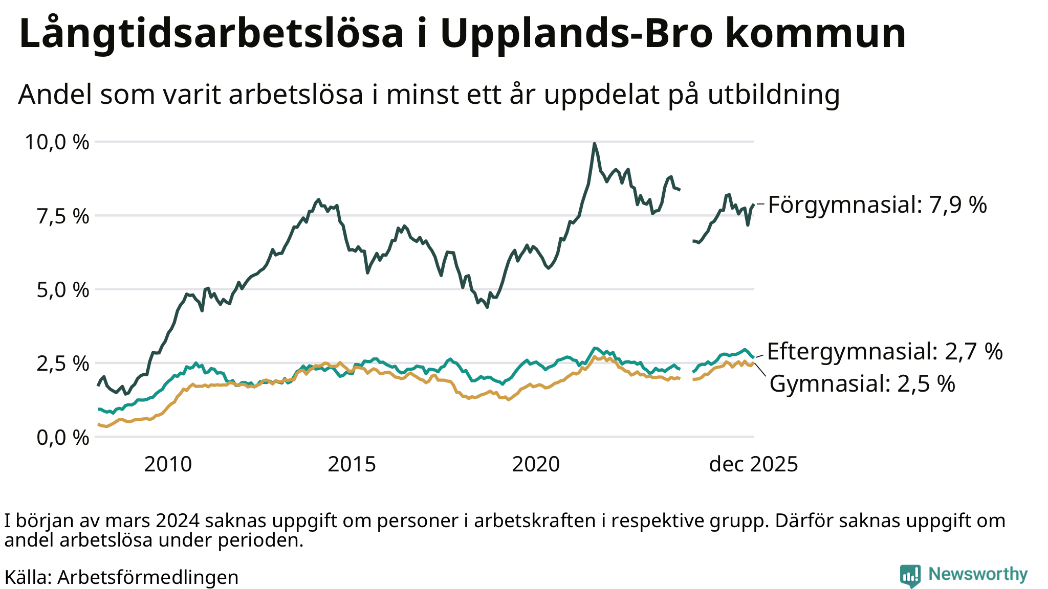 | Bland dem med eftergymnasial utbildning | 2,7 % | 2,1 % | 1,9 % |