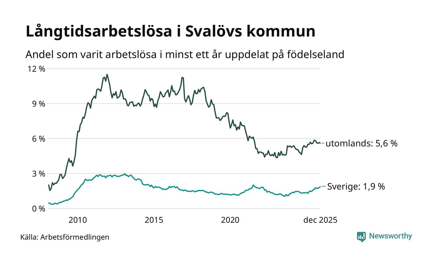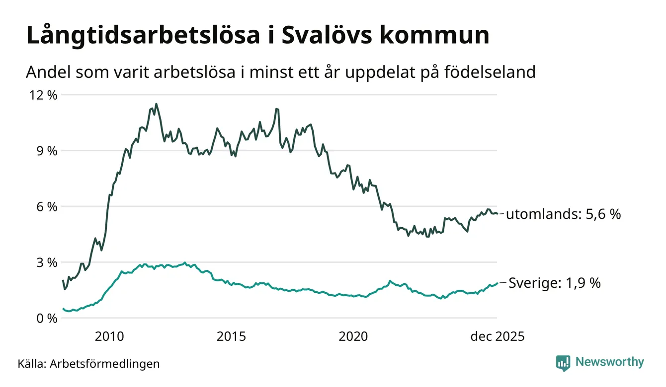 Långtidsarbetslöshet i Svalöv i december 2025