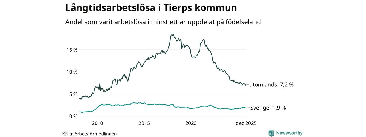 Graf: Andel arbetslösa uppdelat på födelseland i Tierp
