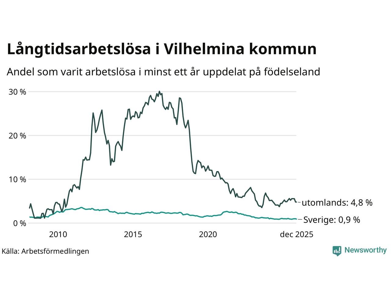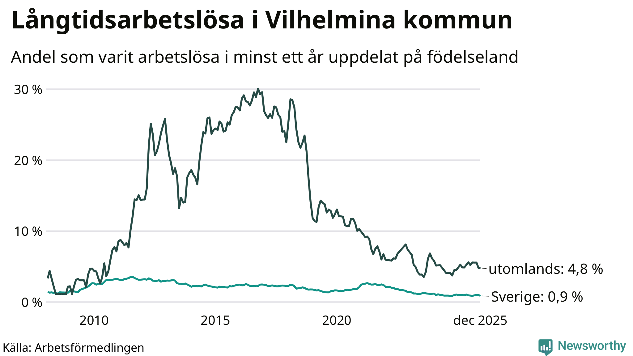 Långtidsarbetslöshet i Vilhelmina i december 2025